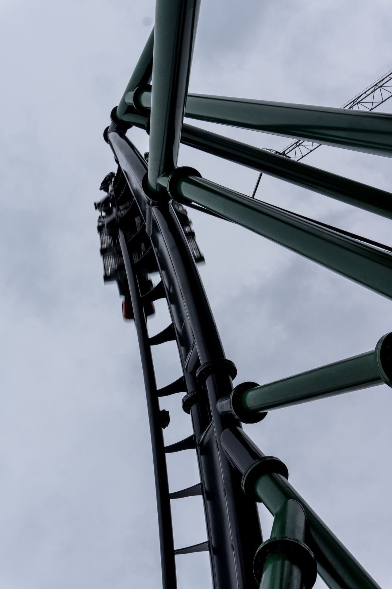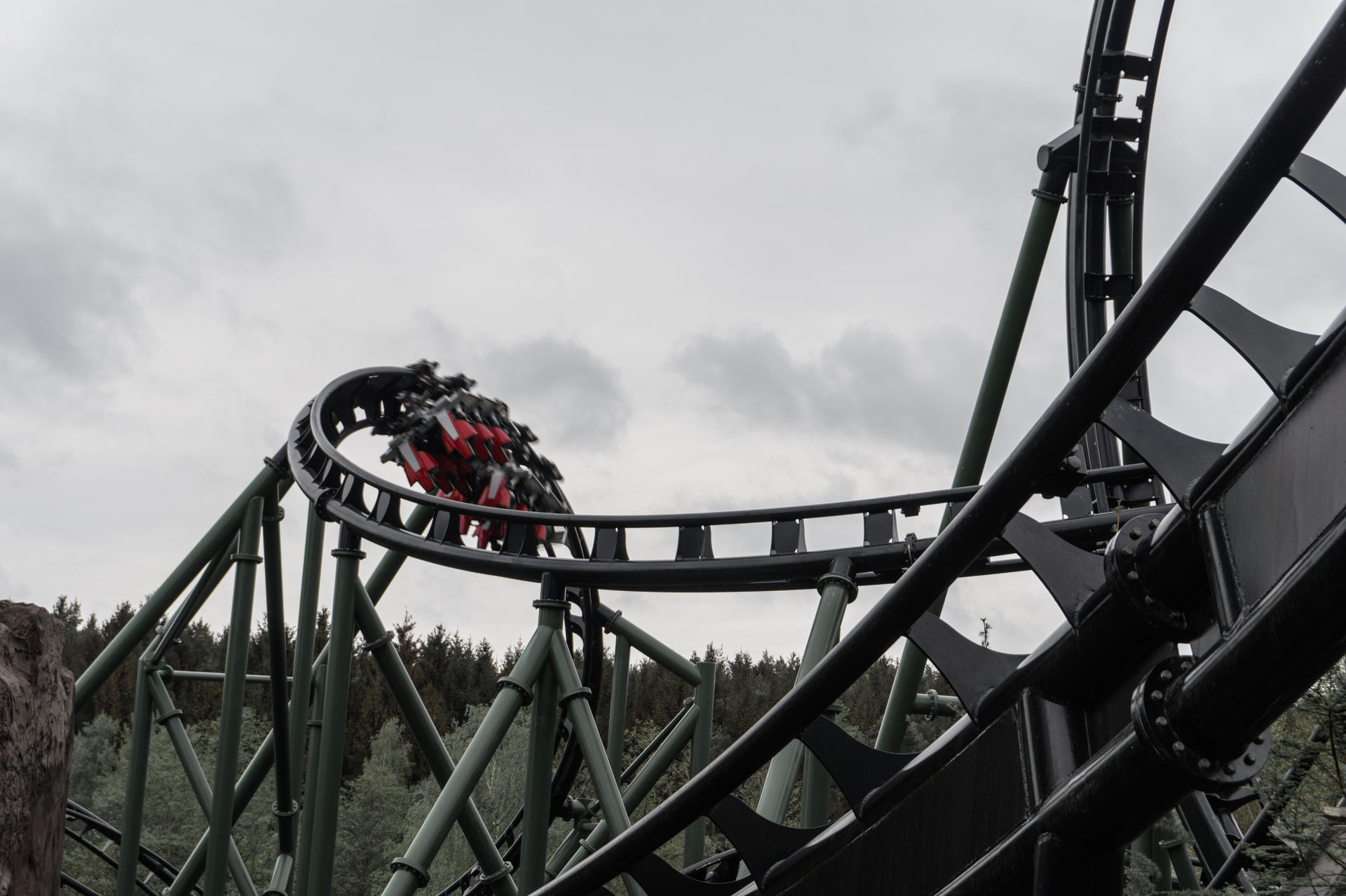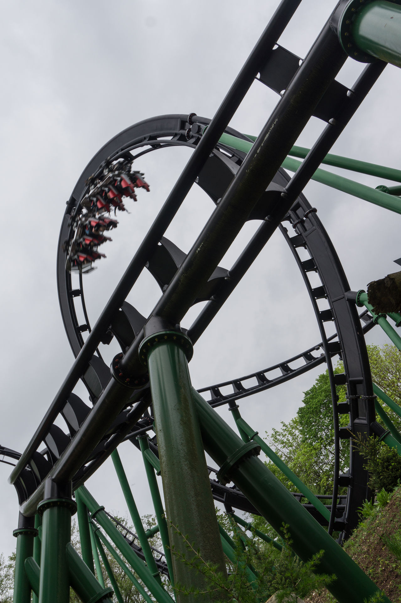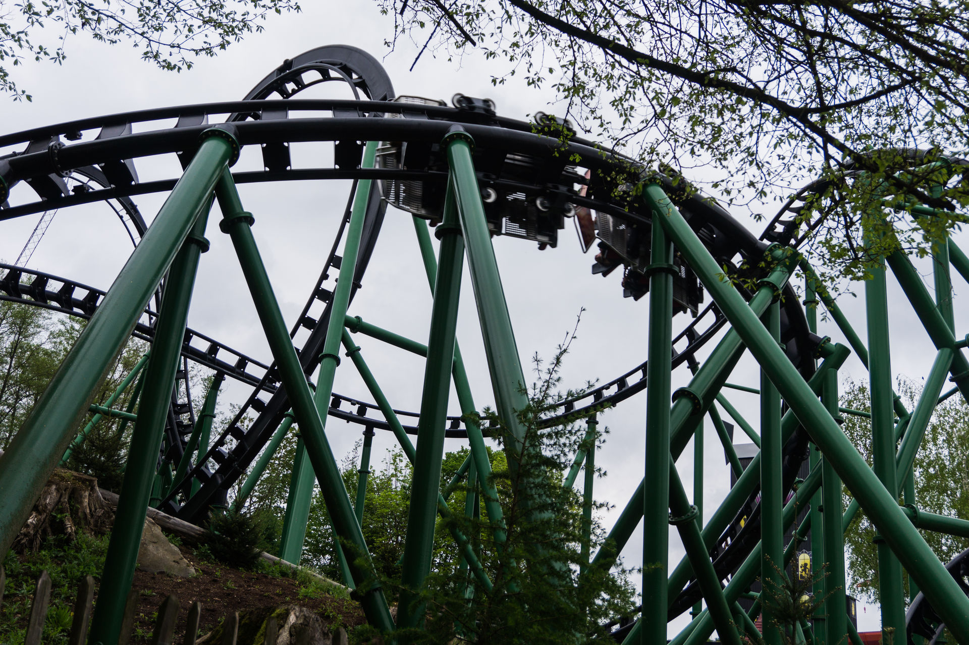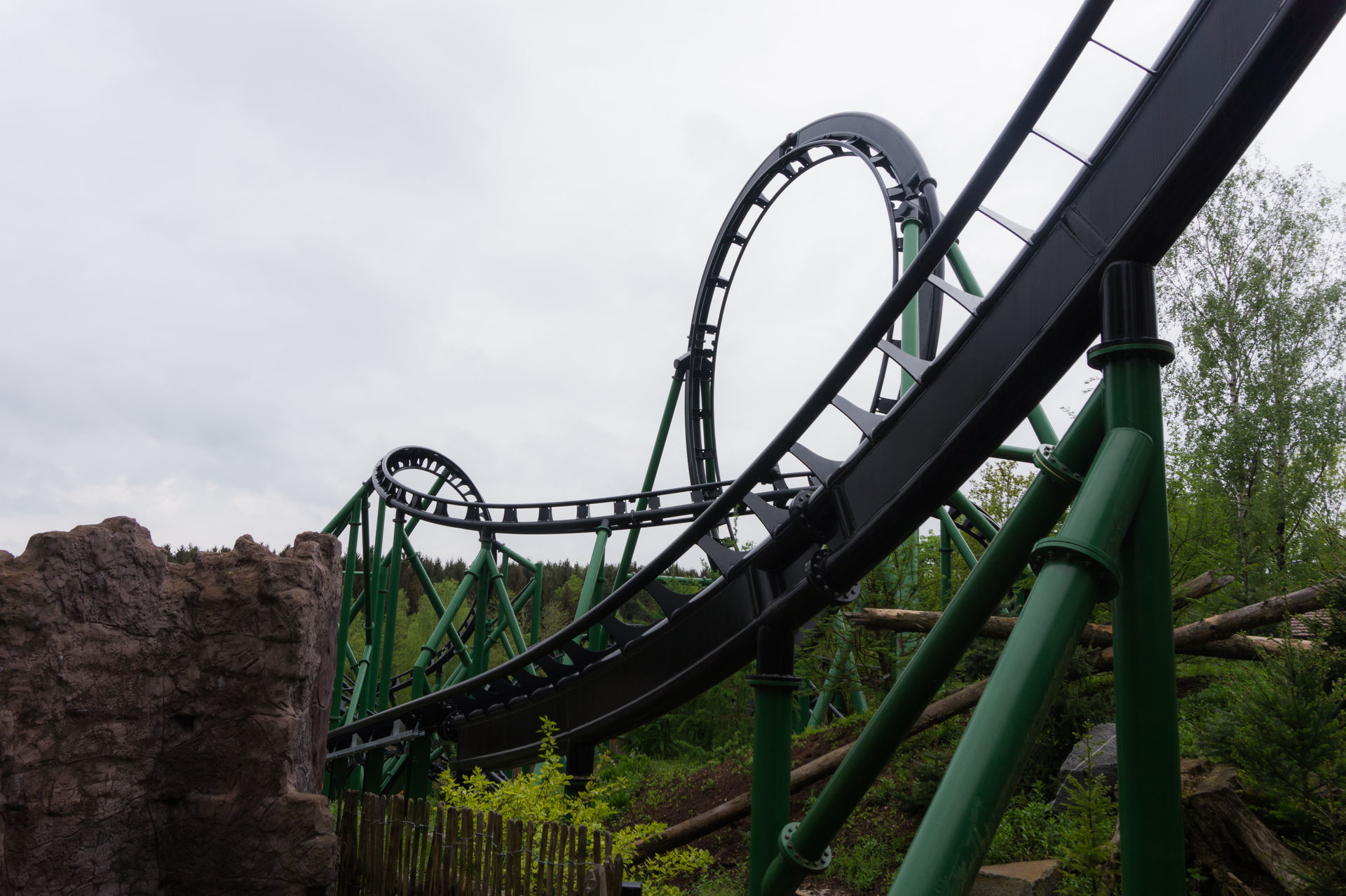 Looping fahren sollte, es oftmals jedoch nicht mehr tut. Anschließend wird eine wahnsinnig intensive Bayernkurve mit anschließend ebenso intensiver Herzlinienrolle vollzogen. Etwas gemächlicher folgt eine Steilkurve woraufhin die letzte