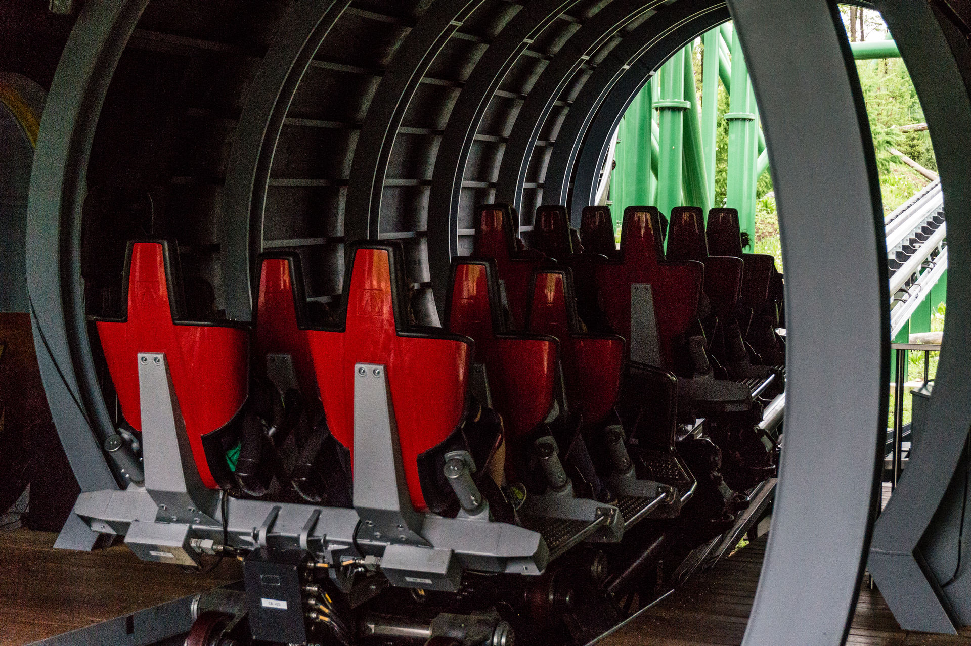 Maurer Söhne, die aber durch ihr ausgeprägtes Gewackel der Wagen durchaus und berechtigterweise berüchtigt ist, dieses ist gerade im vorderen Wagen des Verbunds ausgeprägter als im hinteren Wagen. Als angehende Maschinenbauingenieure fielen Jan und mir sofort mehrere Verbesserungsmöglichkeiten ein, die aber leider höhere Reibung zur Folge hätten und somit eine bei weitem nicht so knackige Fahrweise. Bei der Intensität der Anlage wird trotz der kraftvollen Fahrweise meiner Meinung nach aber grob übertrieben, denn der oftmals als Kernmerkmal beworbene Greyout während der Fahrt blieb uns trotz einigen direkt aufeinander folgenden Fahrten konsequent aus.