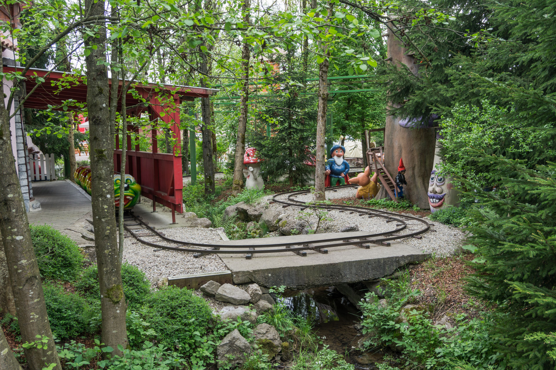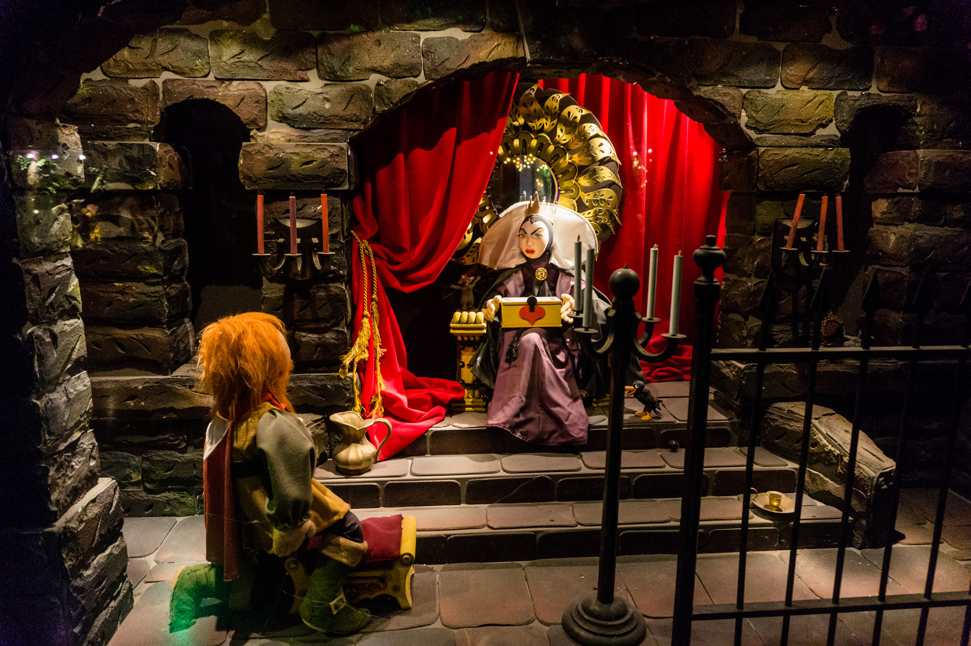 Betritt man den Park wird man sogleich von einer Animatronik begrüßt. Im gleichen Raum befindet sich eine liebevoll gestaltete Ausstellung, welche die Geschichte von Schneewittchen mit Plüschfiguren nachstellt.