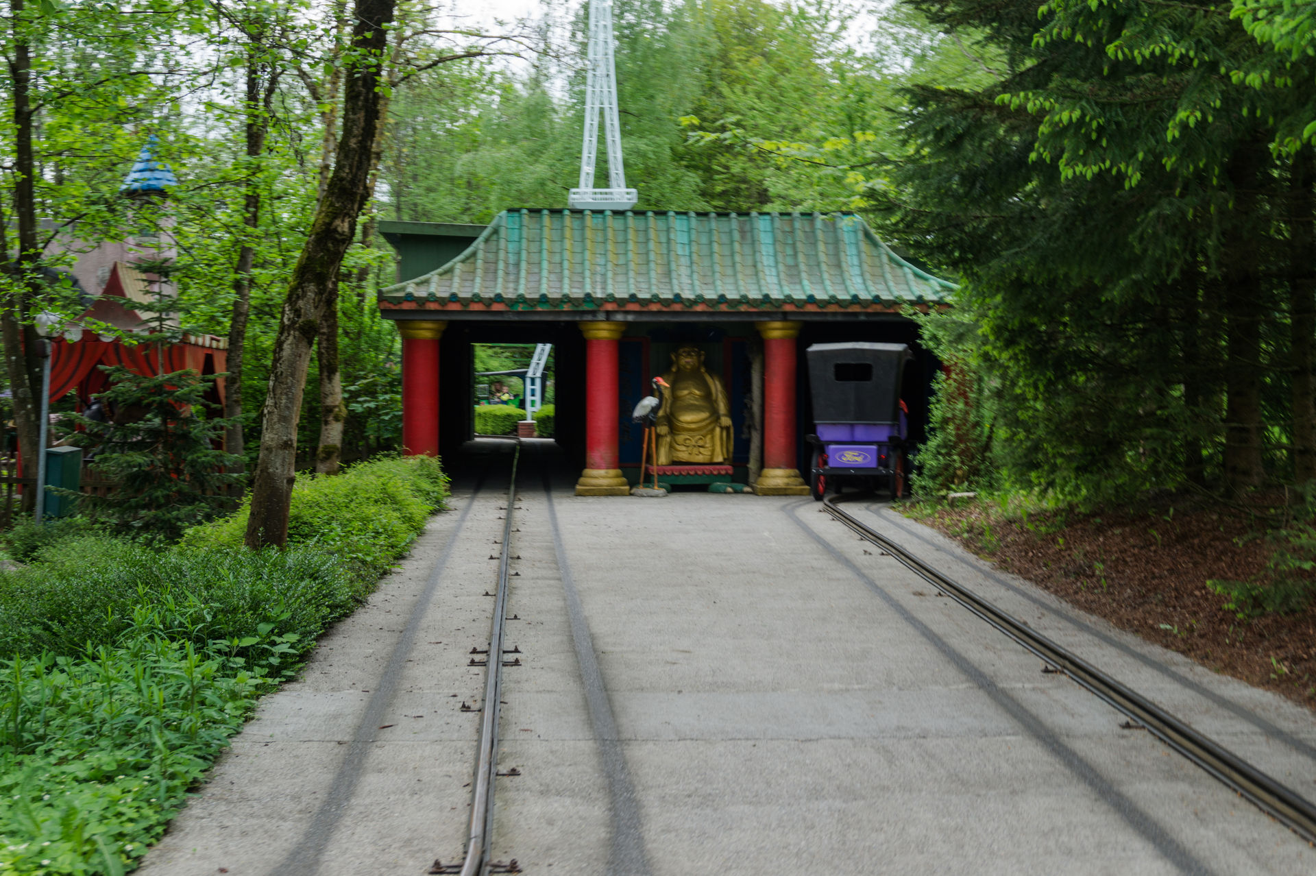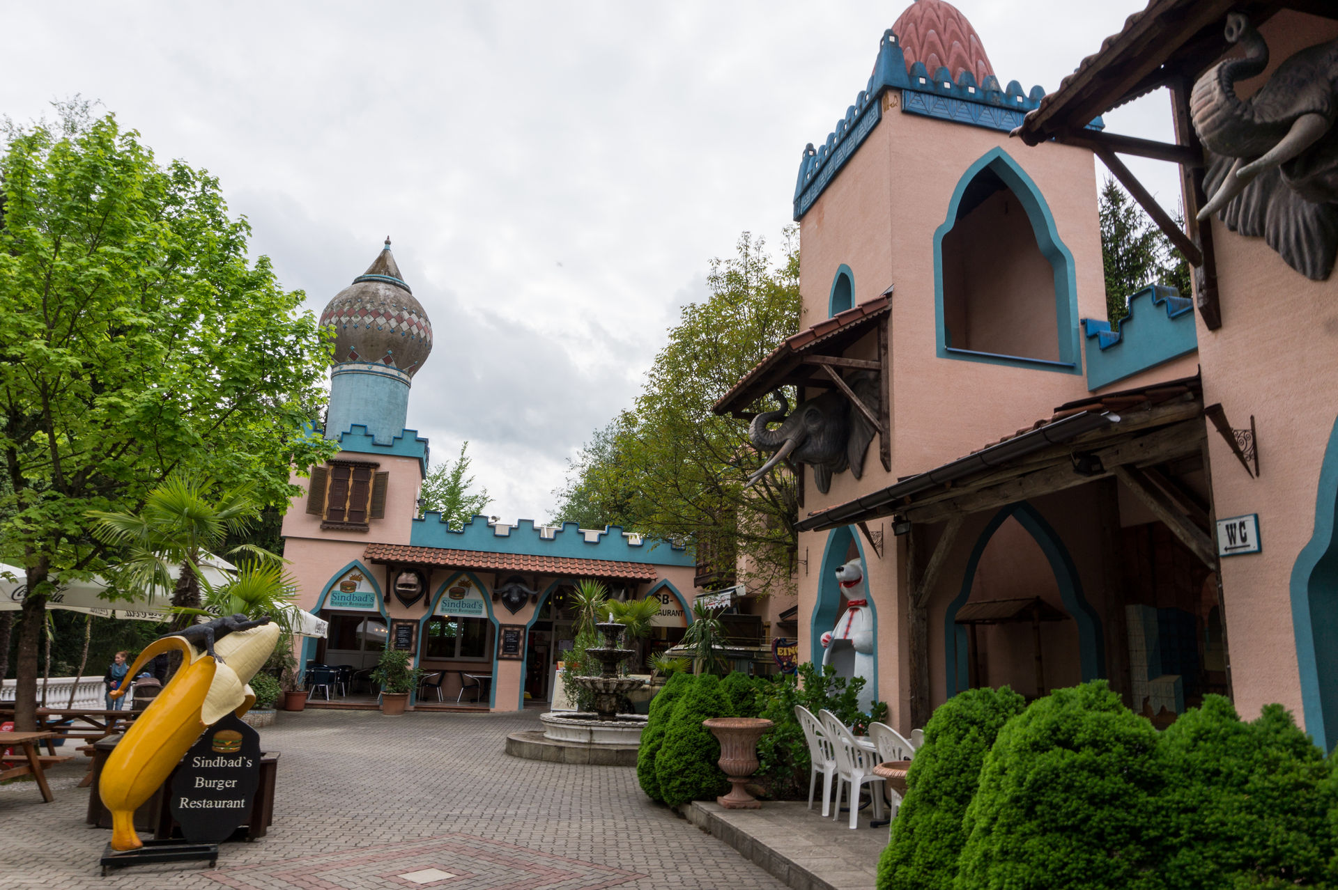 Von hier aus kann man entweder direkt in den Westernbereich des Parks gehen oder die große Runde um den See in Angriff nehmen. Entlang einiger Kinderfahrgeschäfte, einer Oldtimerbahn, sowie einer Einschienentretbahn ohne Tretfunktion, innerhalb eines Märchenwaldes geht es in Richtung einen großzügig ausgelegten orientalischen Themenbereich. Hier befindet sich die Themenfahrt Sindbads Abenteuerreise, sowie ein 4D Kino. Trotz der angeschlagenen durchgängigen Öffnungszeit war weit und breit kein Mitarbeiter auffindbar, weshalb eine Fahrt in der Themenfahrt leider ausblieb.