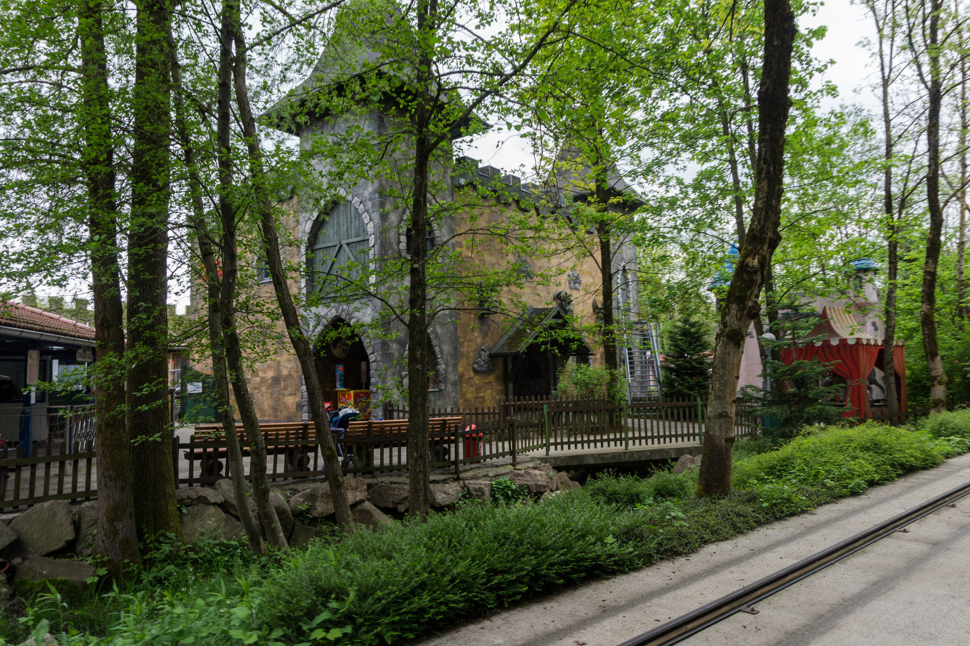 Durch eine Tür gelang man in den Vorhof des Schloß Drakulas, eine der Hauptattraktionen des Parks, wo in regelmäßigen Abständen eine Führung stattfindet. Auf Grund der nicht vorhandenen Fülle innerhalb des Parks und den abwechselnden Öffnungszeiten der Fahrgeschäfte haben wir auf einem Besuch jedoch verzichten müssen.
