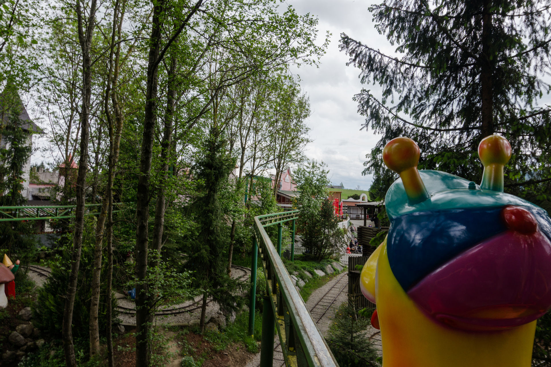 Über besagter Rennbahn windet sich das Highlight des Parks, die Achterbahn Wild Train, welche nicht nur durch ihre Stützkonstruktion sehr exotisch daher kommt, sondern auch durch den russischen Hersteller