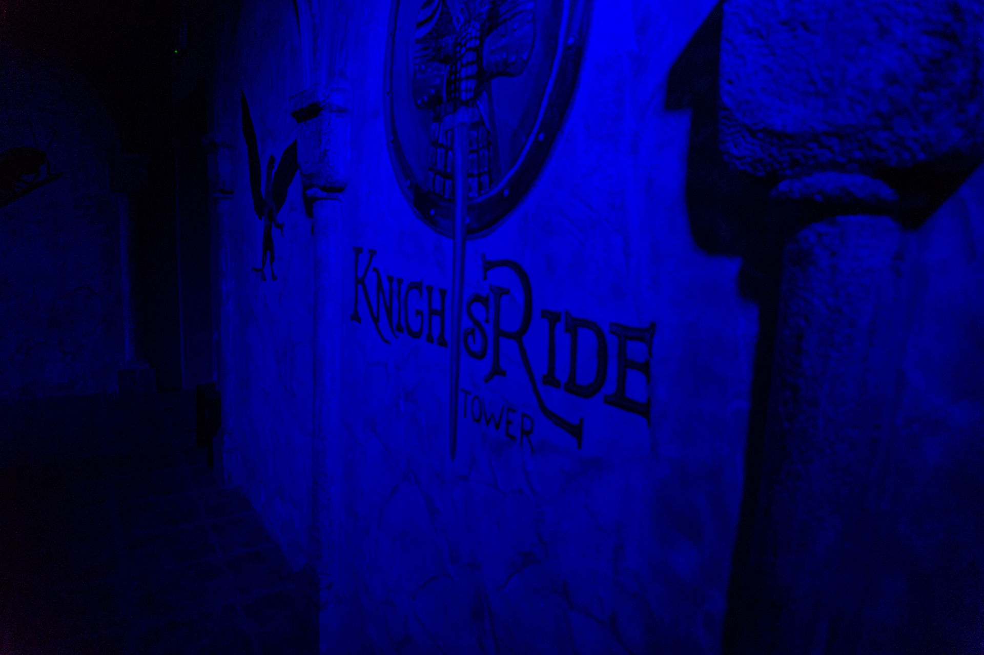Entlang des schicken Westernbereichs des Parks führt der Weg geradewegs auf ein, von außen unscheinbar wirkendes, Gebäude zu. Innerhalb dessen befindet sich mit dem KnightsRide-Tower ein kleiner Freifallturm der Firma abc Rides. Die Warteschlange dessen ist bereits wunderbar gestaltet und lässt die Erwartungen in die Höhe wachsen, so kennt man doch bereits vergleichbare Anlagen aus den Dungeons der Merlin Entertainments Group und Freizeitparks derselben Gruppe.