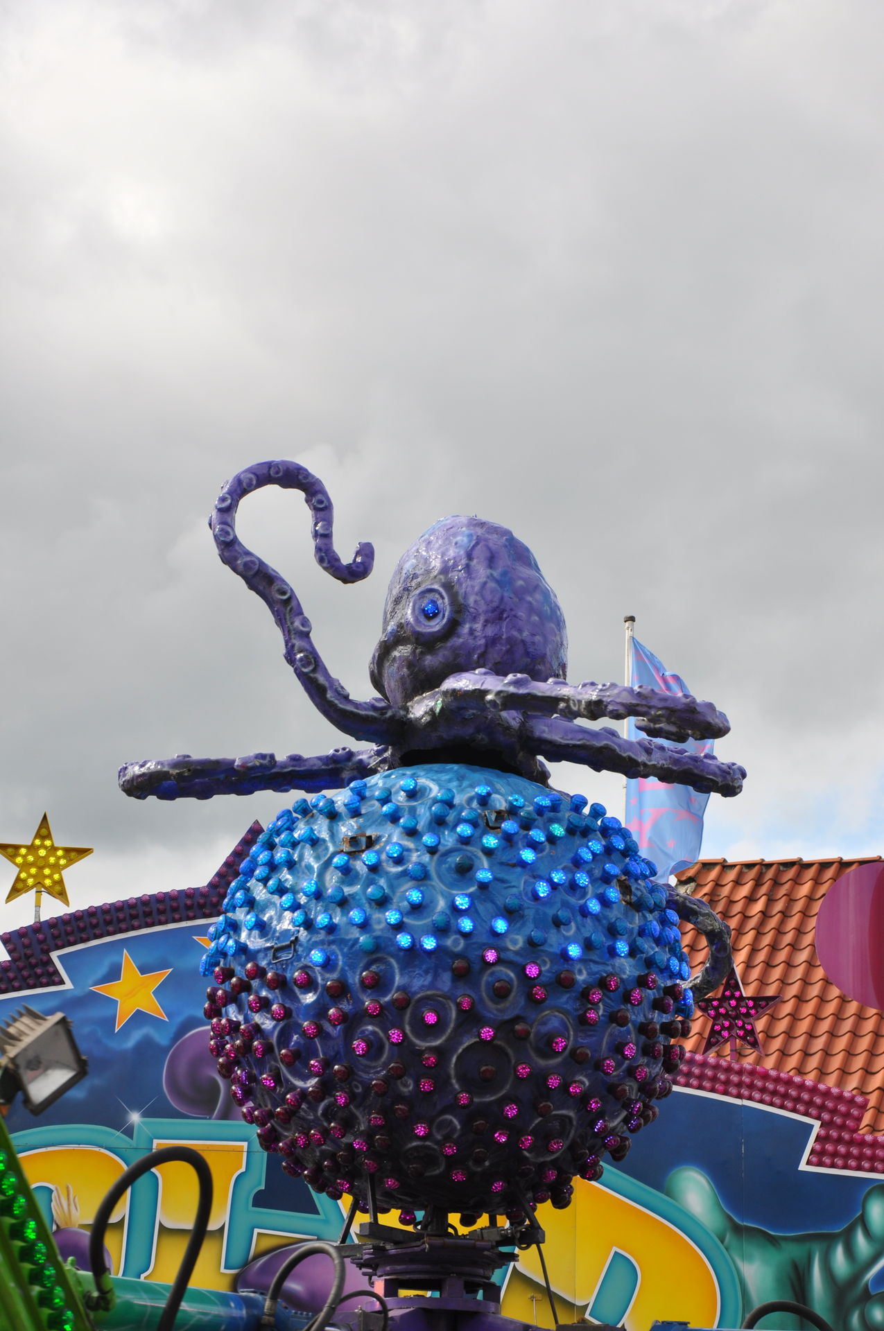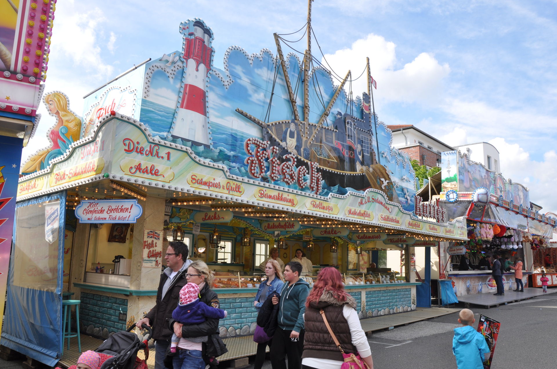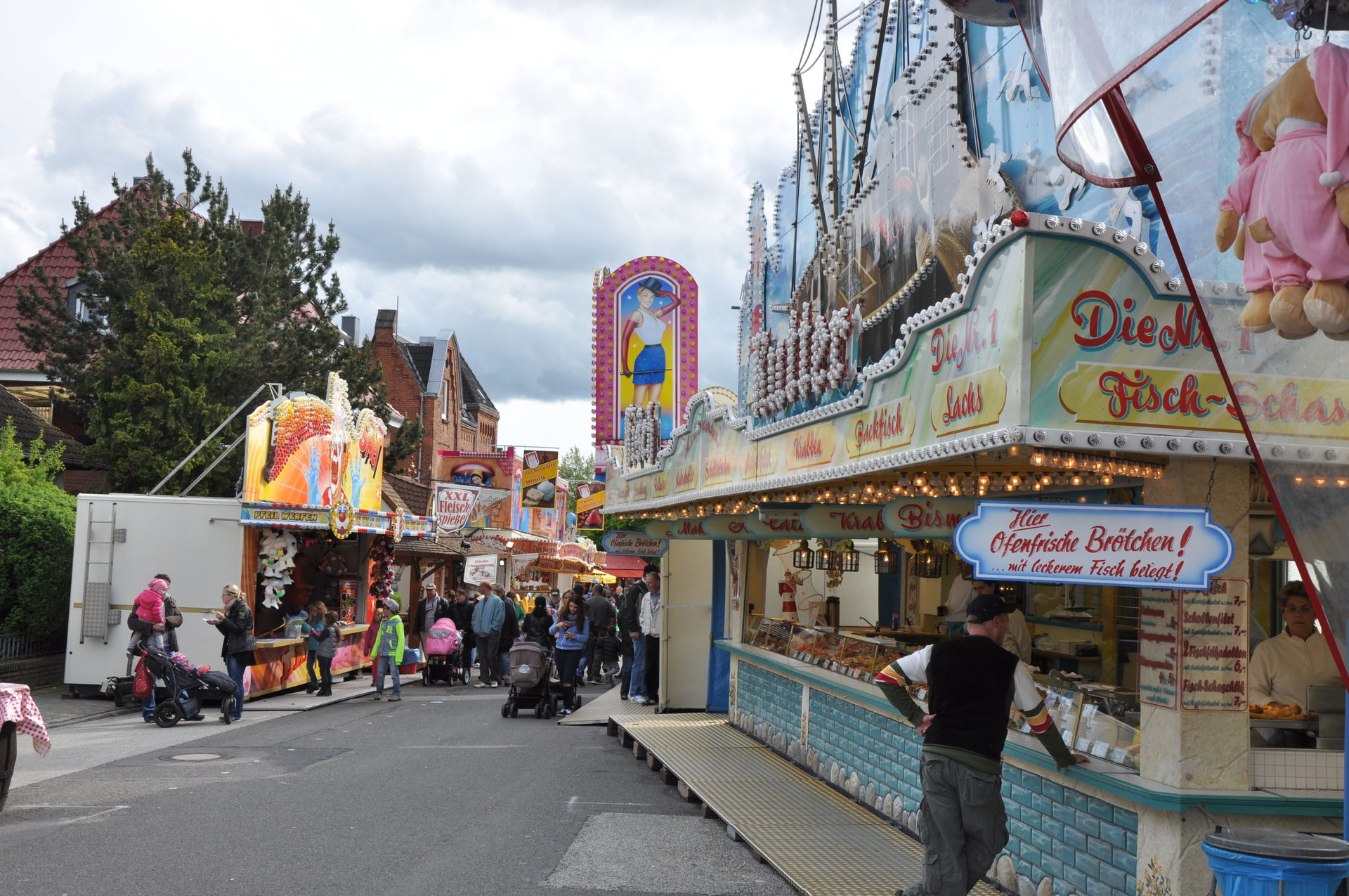 Geesthacht liegt östlich von Hamburg am Ende der A25. Da es nördlich der Elbe liegt, gehört es Schleswig-Holstein. Der Markt wird auf der Rathausstraße auf einer Länge von 400m aufgebaut. Im Gegensatz zu den zuletzt von mir besuchten Märkten in Hamburg-Bergedorf und Boizenburg waren hier auch mehrere größere Fahrgeschäfte aufgebaut. Am unteren Ende, direkt neben der Polizei, ging es mit einem Breaker los. Dann wurde die Straße wieder enger und es folgten eine Menge Fressbuden und Reihengeschäfte. Etwas verwundert war ich über insgesamt drei Stände an denen Klamotten verkauft wurden. Neben dem Kinderkarrussel gab es dann auch gleich noch eine Schiffeangeln. Dieser Stand war immer gut besucht. In der Mitte stand dann der Polyp, der auch gut besucht war. Am höchsten Punkt standen dann das Laufgeschäft Labyrinth, der Jumper und bezeichnenden Weise der Autoscooter Downtown. Hier war noch nicht soviel los. Aber die Zeit der meist jugendlichen Mitfahrer war um 17:00 Uhr auch noch nicht gekommen. Es wurden erst vereinzelte kleinere Gruppen gesichtet. Für mich war aber nach dem Fotorundgang Schluss. Ich wünsche euch viel Spaß bei den Bildern.