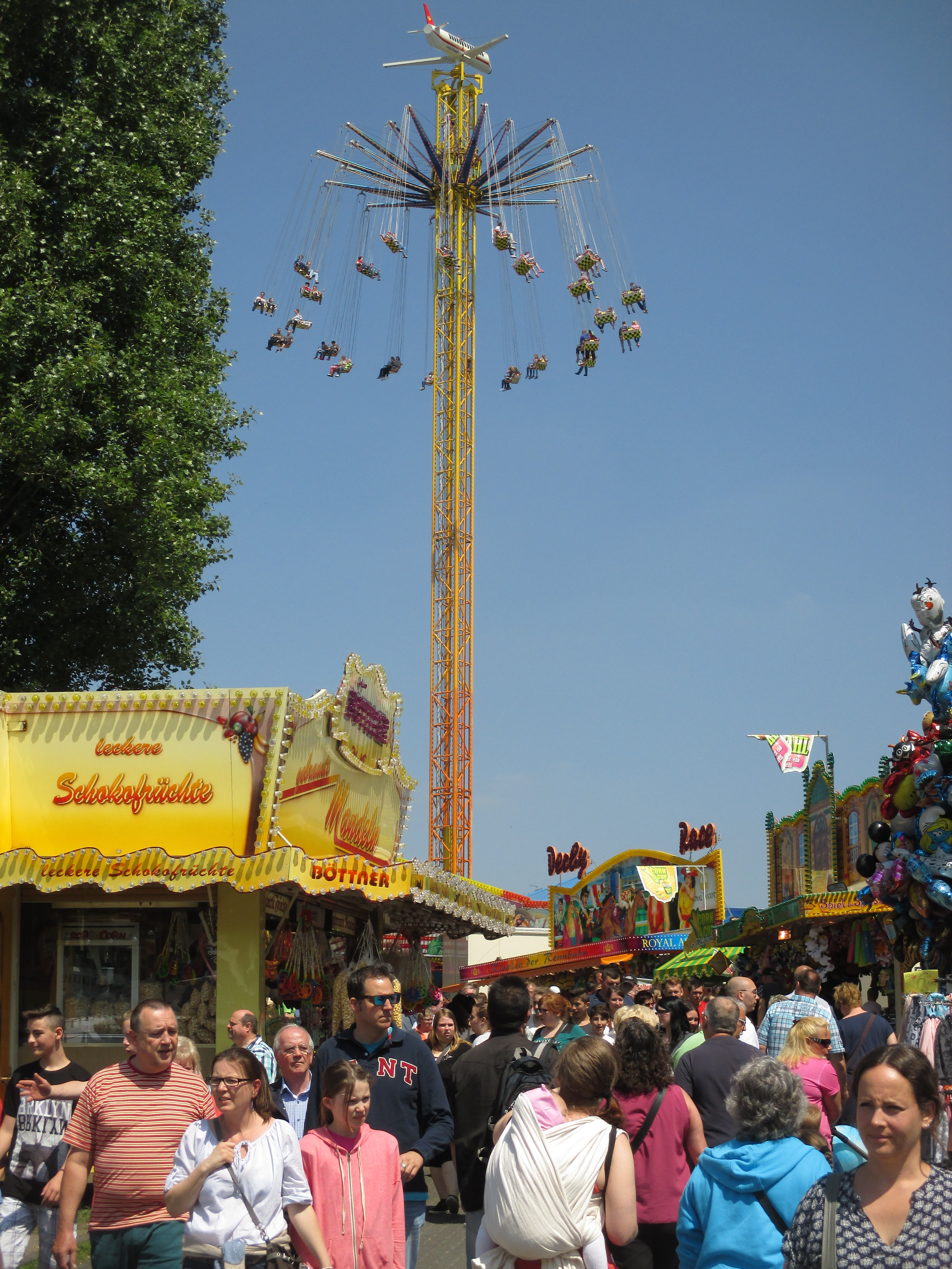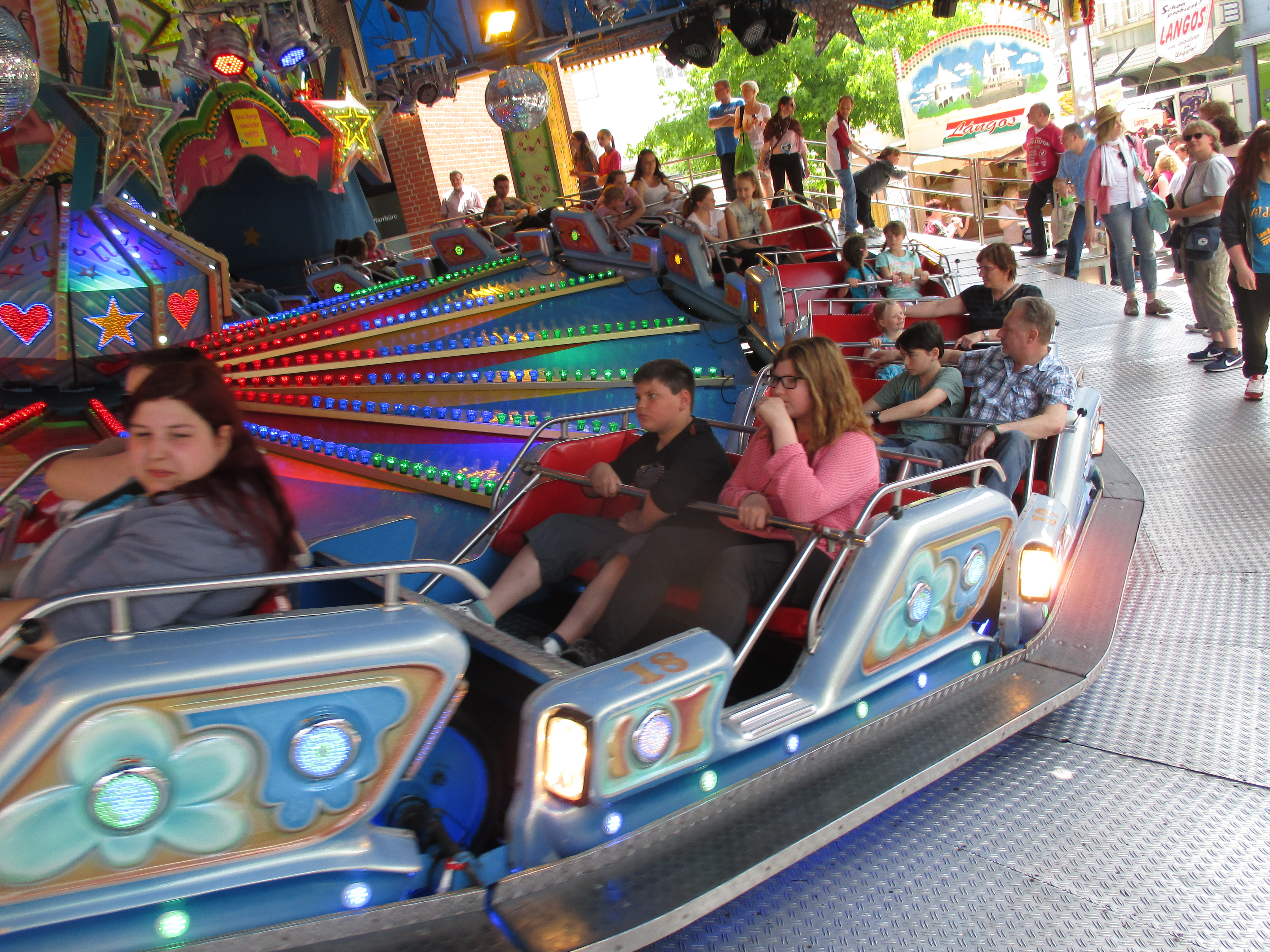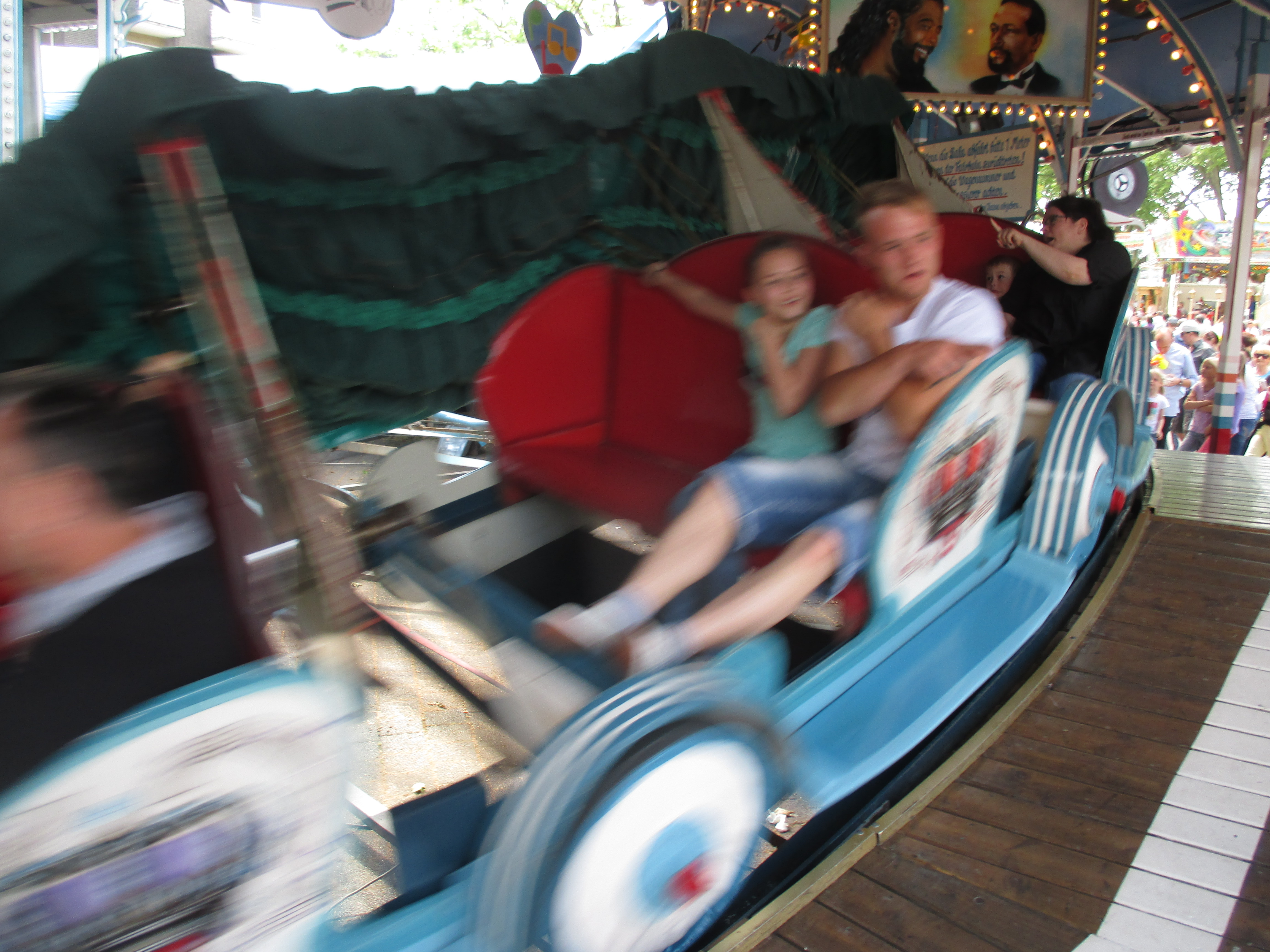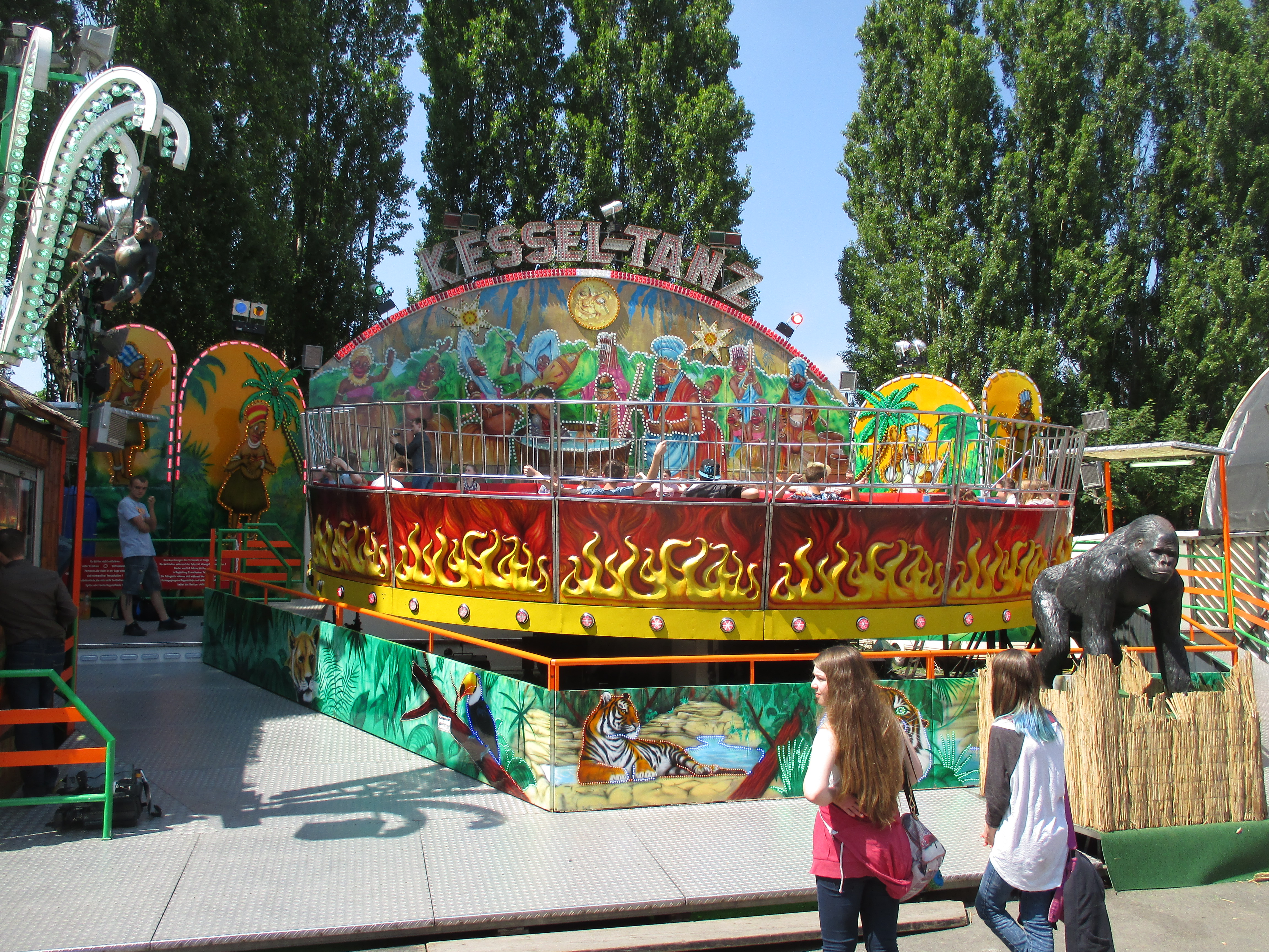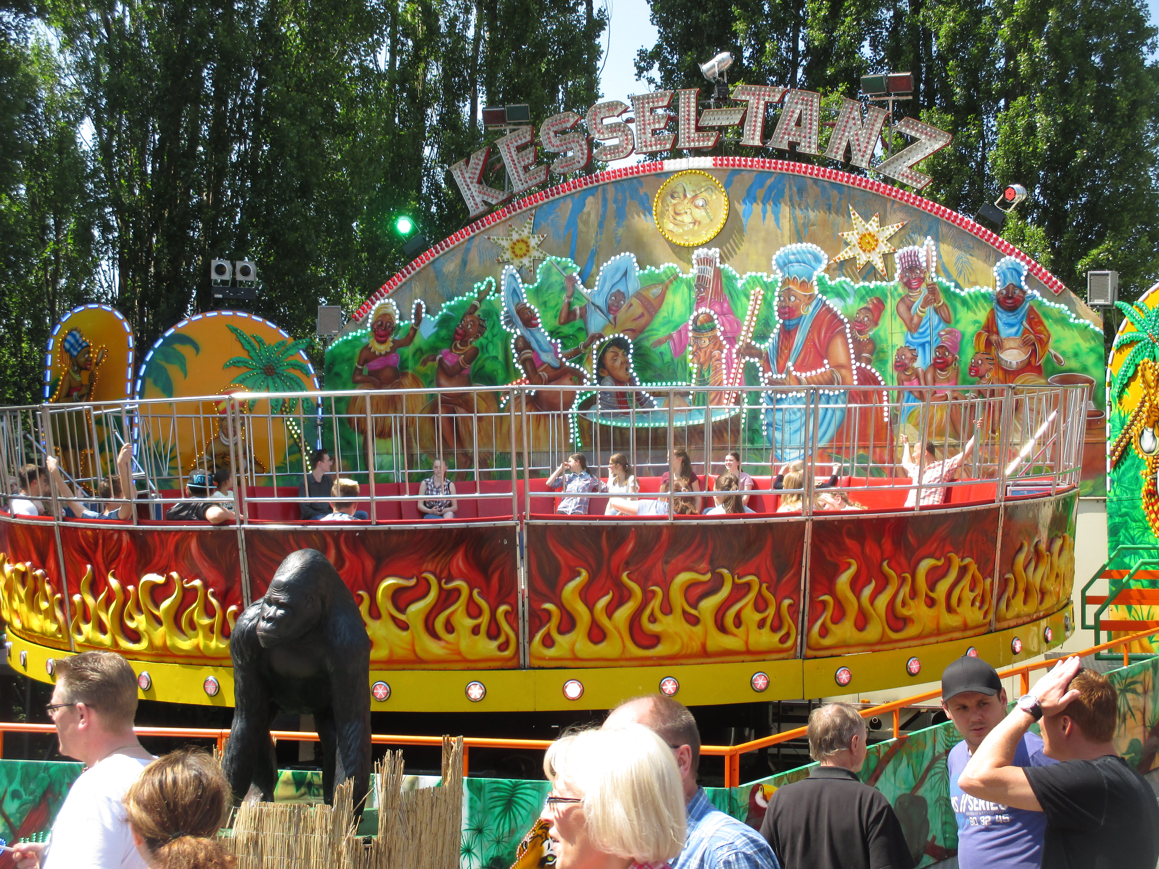 Die Raupenbahn ist gerammelt voll zu dieser Tageszeit um 14 Uhr - ist sie doch ein perfektes Angebot für alle Altersklassen. Aus den Musikboxen erschallen Klassiker der 70er Jahre: Clout mit "Substitute" und Patrick Hernandez mit "Born to be alive"