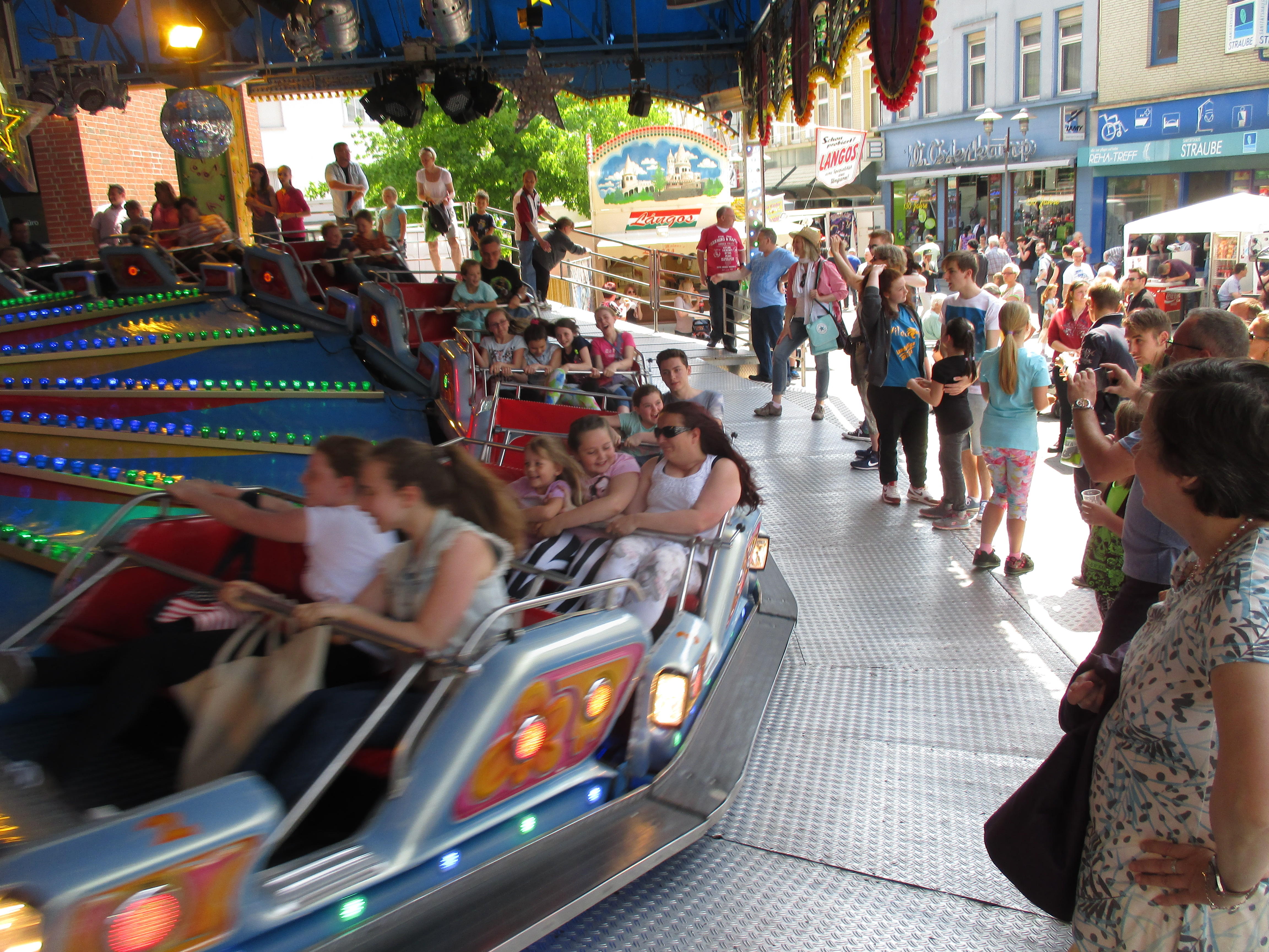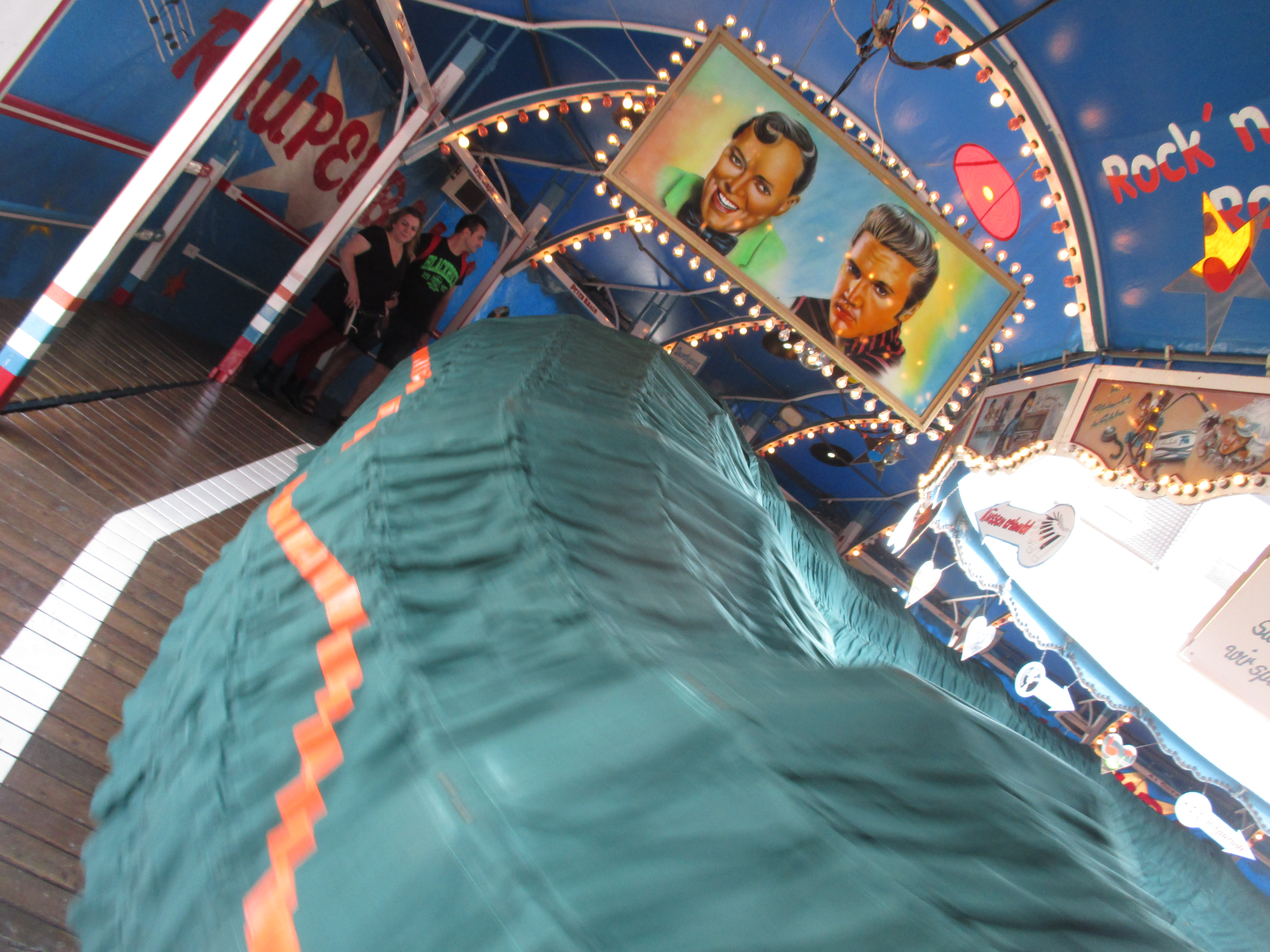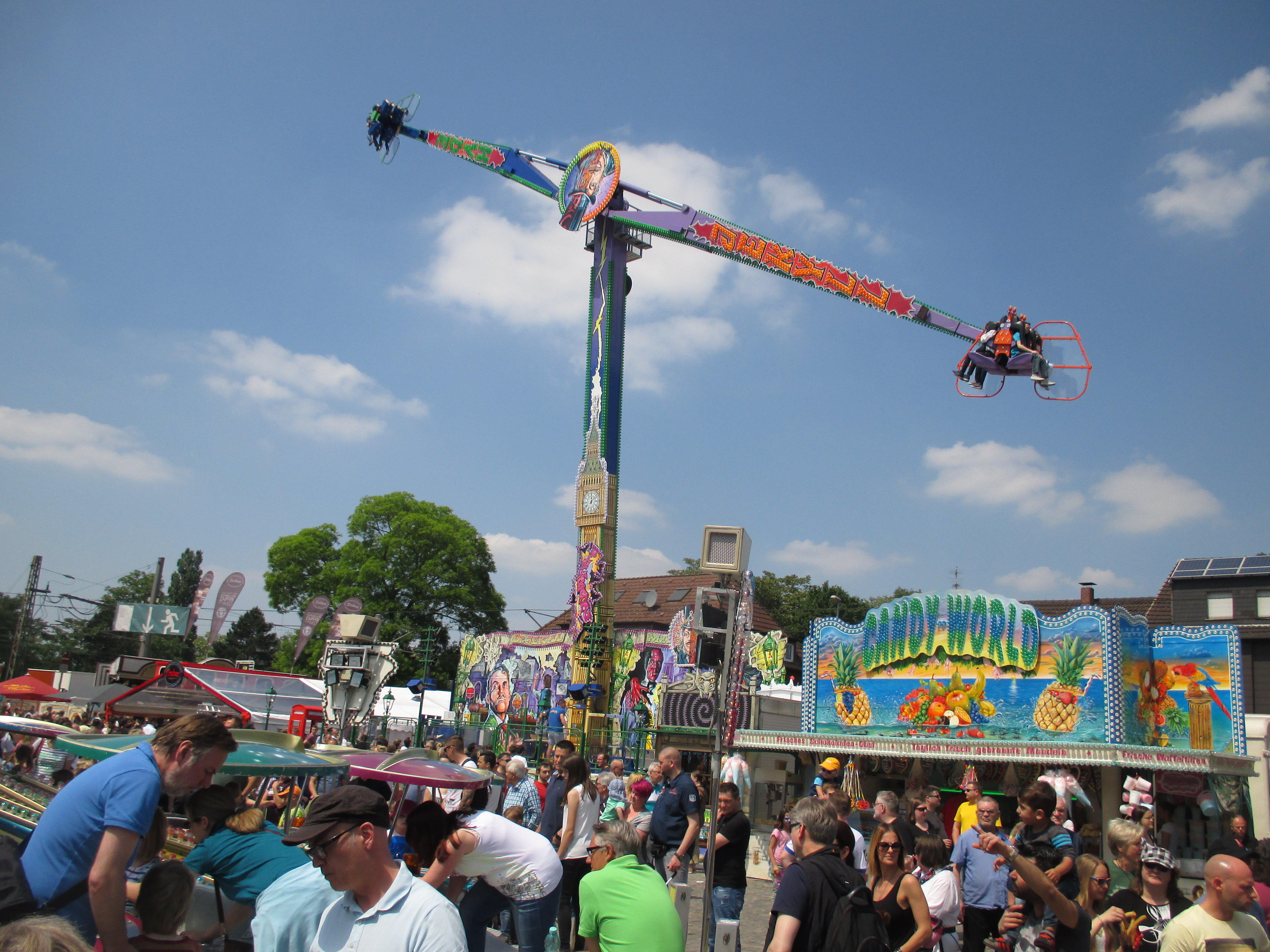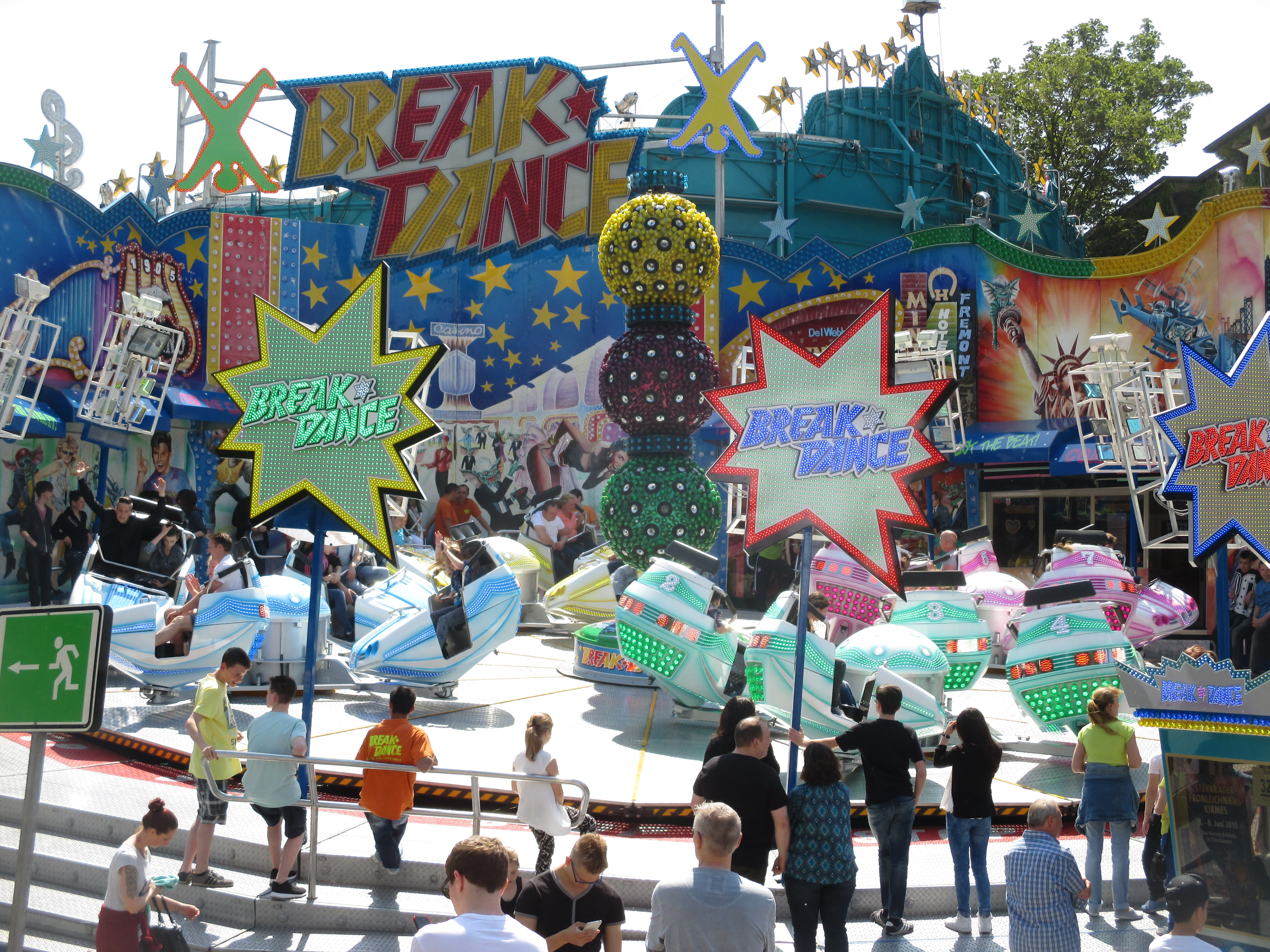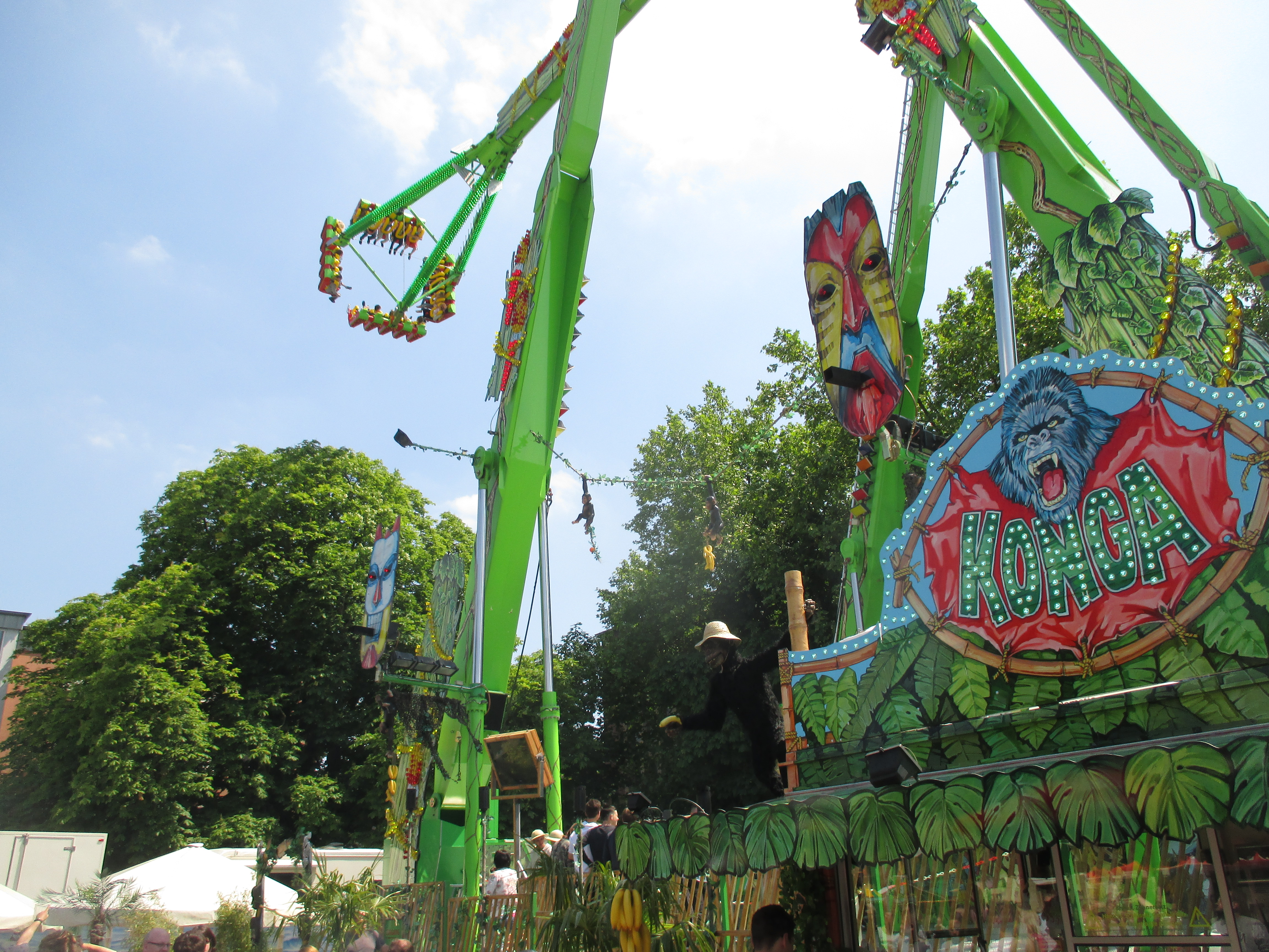 Die Raupenbahn ist gerammelt voll zu dieser Tageszeit um 14 Uhr - ist sie doch ein perfektes Angebot für alle Altersklassen. Aus den Musikboxen erschallen Klassiker der 70er Jahre: Clout mit "Substitute" und Patrick Hernandez mit "Born to be alive"