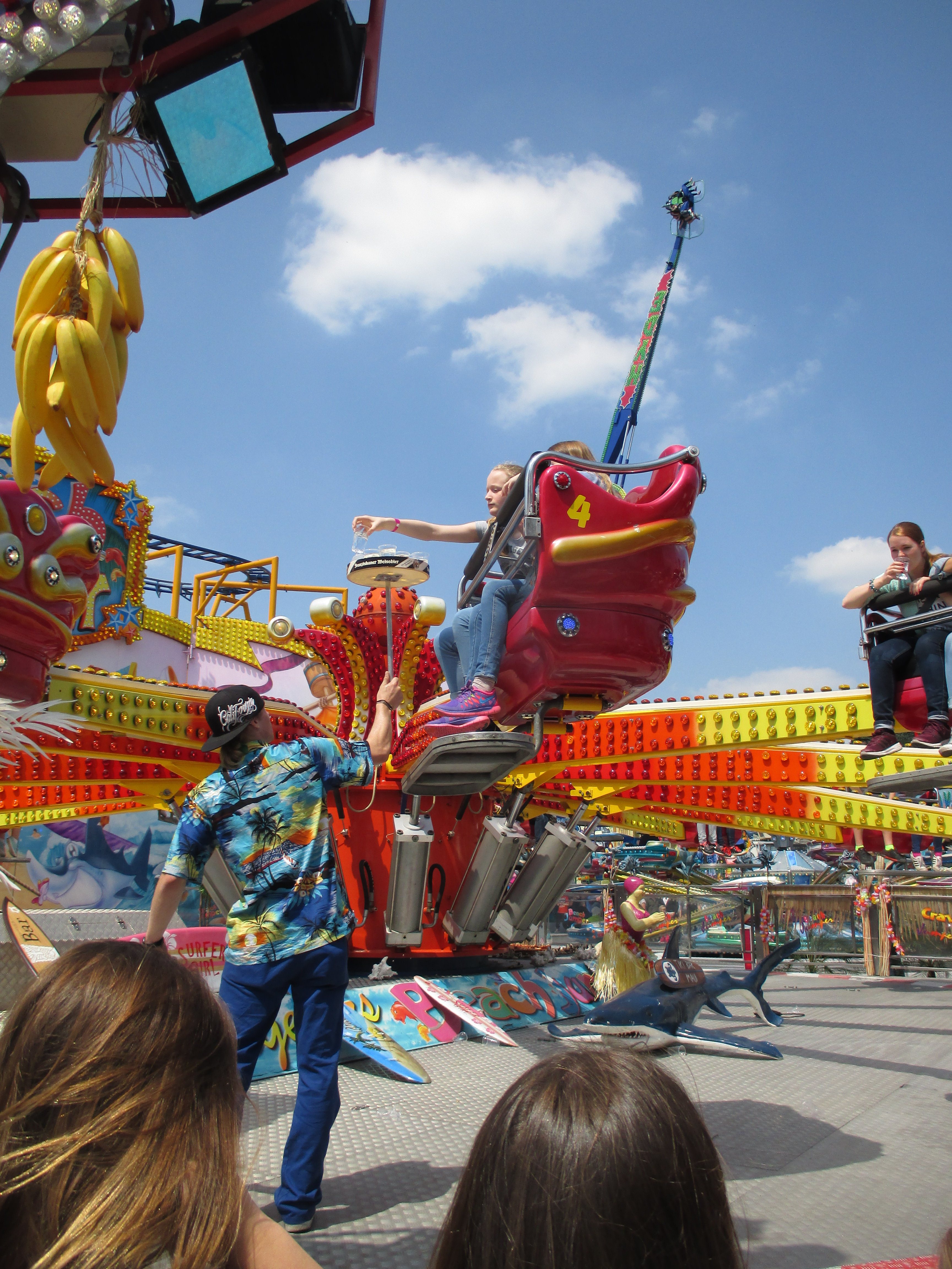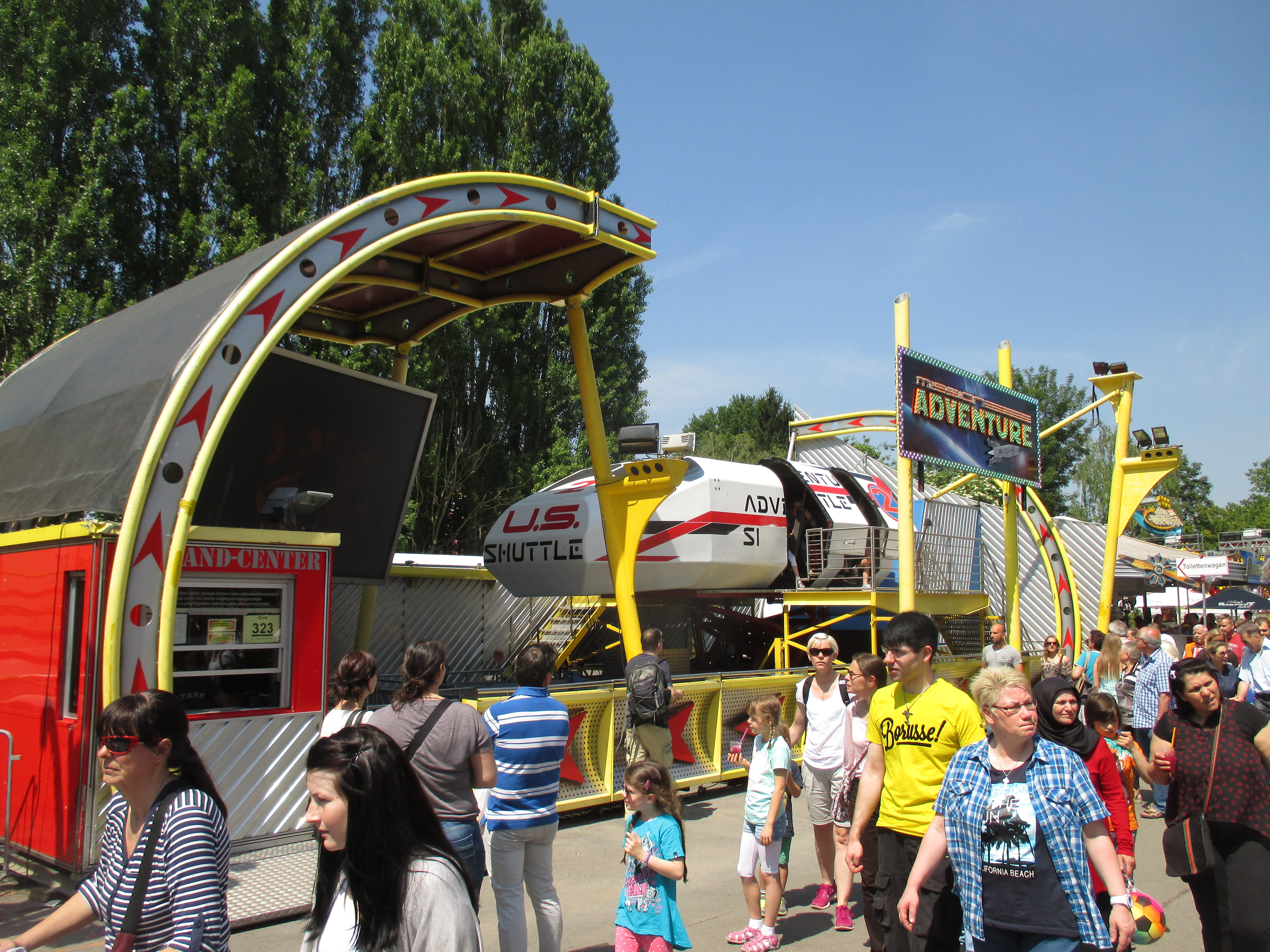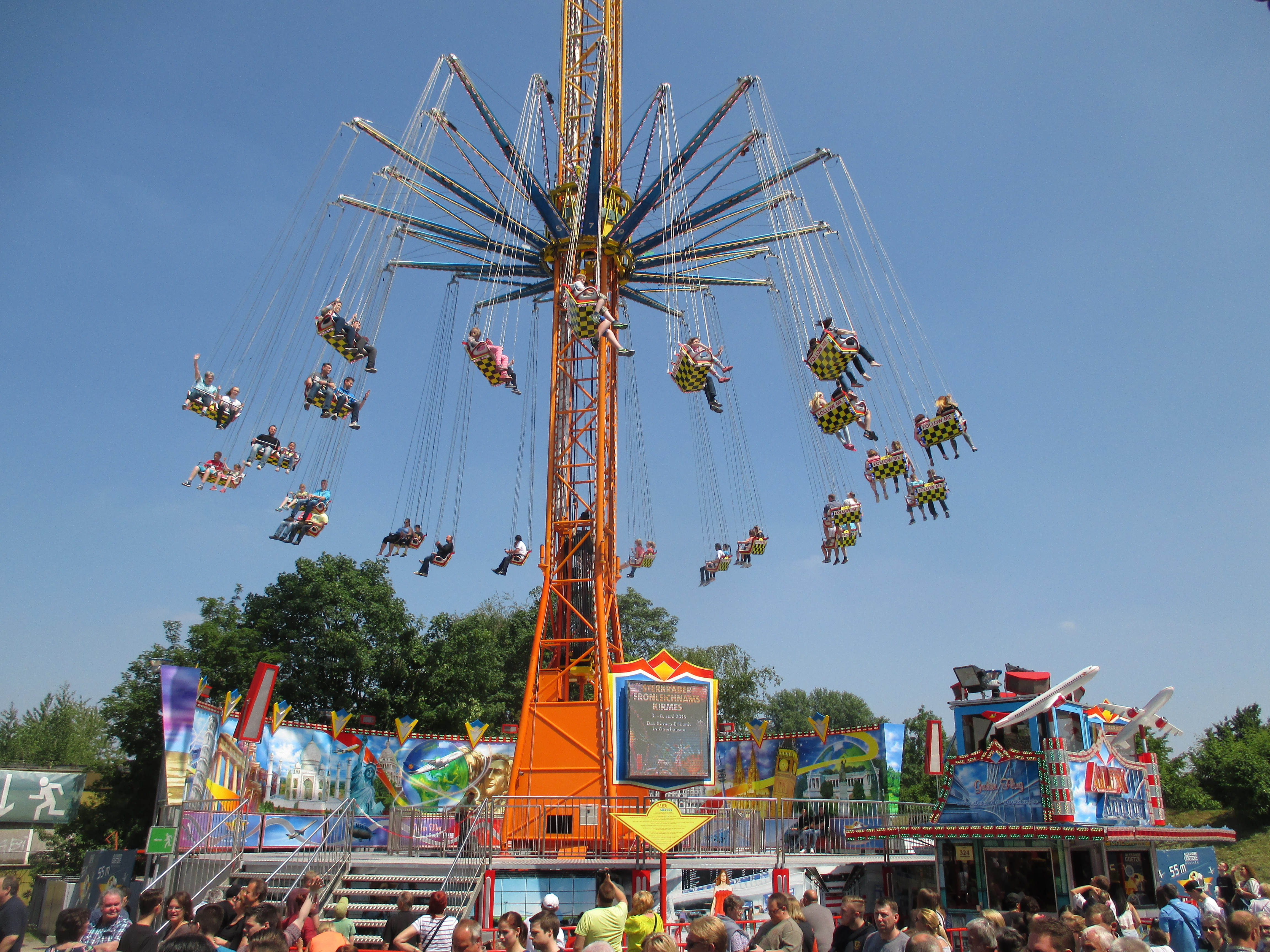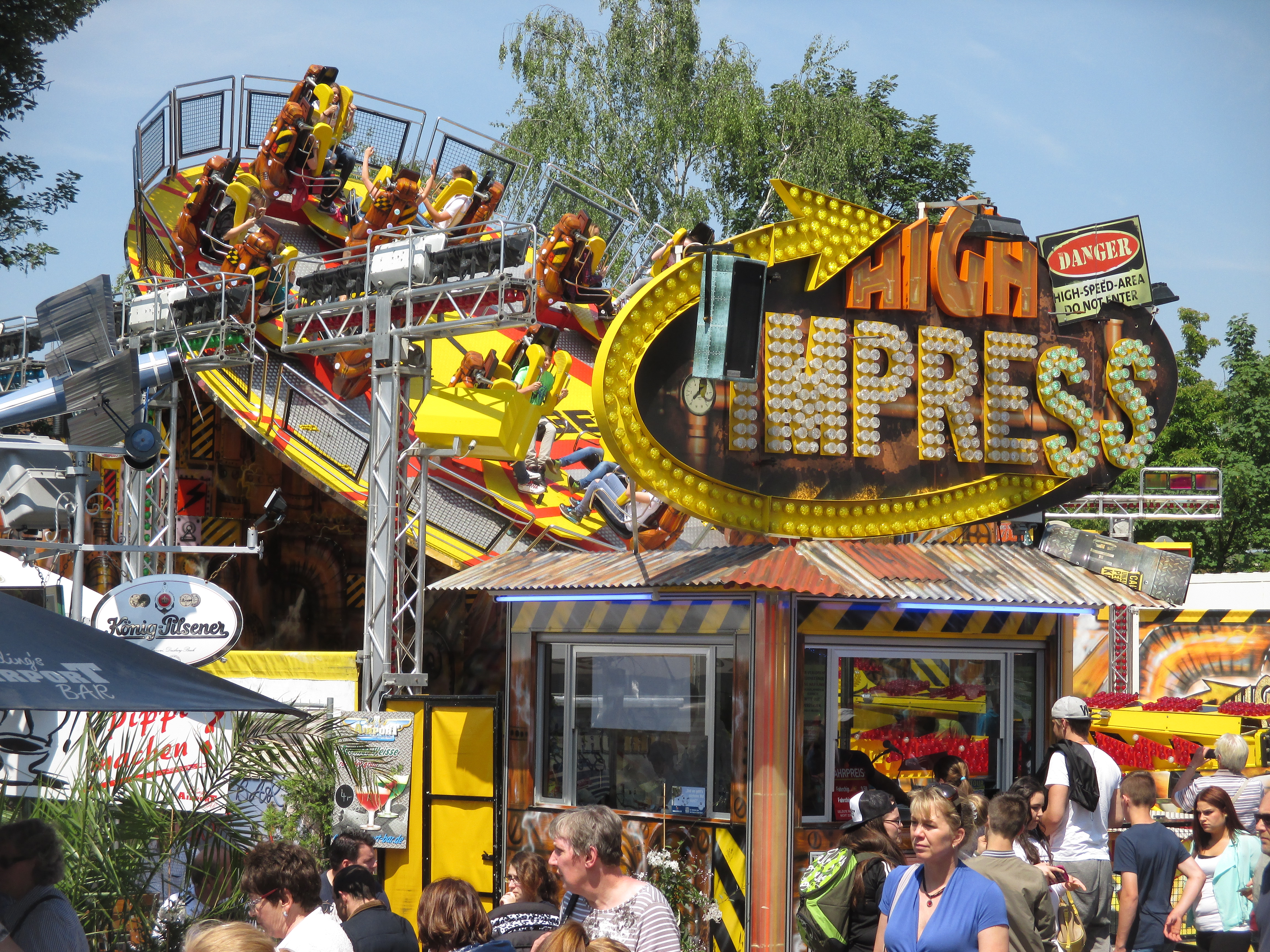 Die Raupenbahn ist gerammelt voll zu dieser Tageszeit um 14 Uhr - ist sie doch ein perfektes Angebot für alle Altersklassen. Aus den Musikboxen erschallen Klassiker der 70er Jahre: Clout mit "Substitute" und Patrick Hernandez mit "Born to be alive"