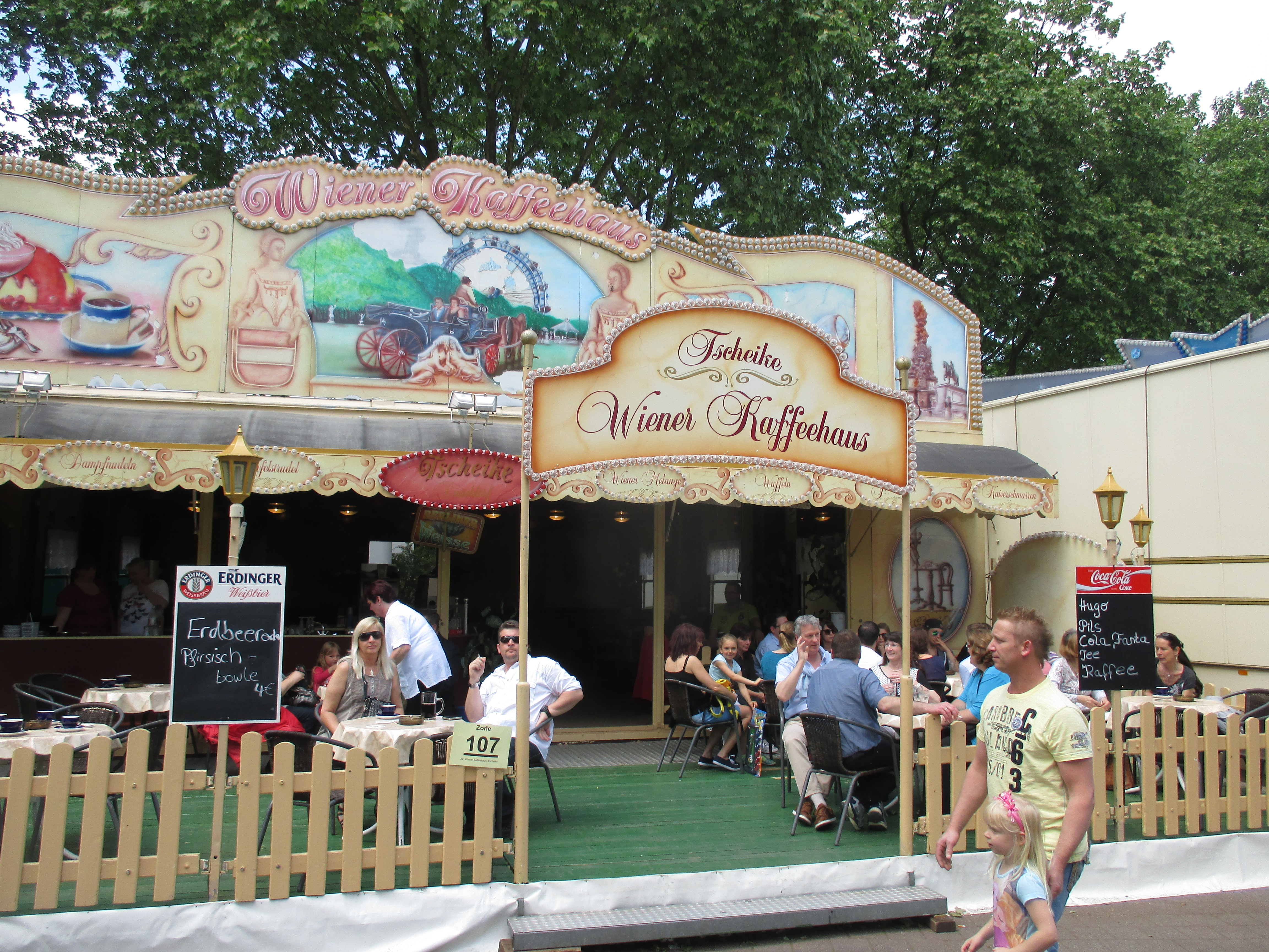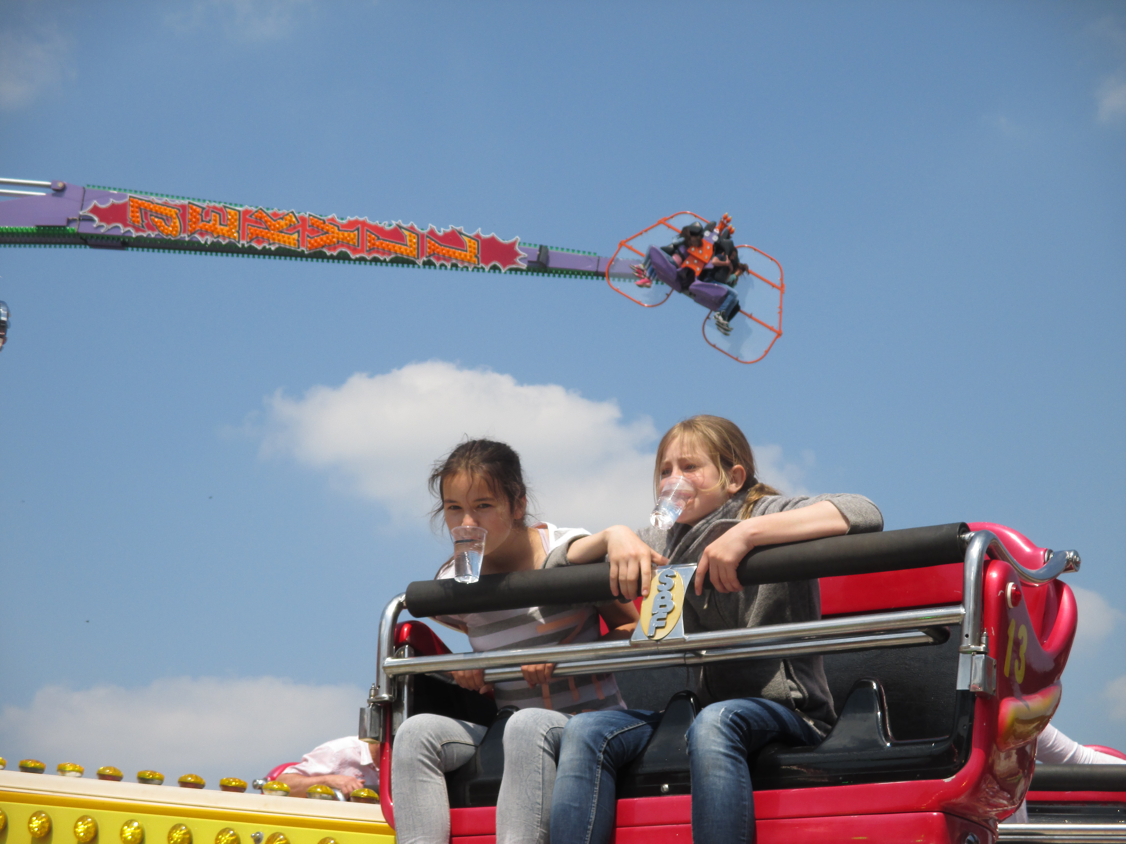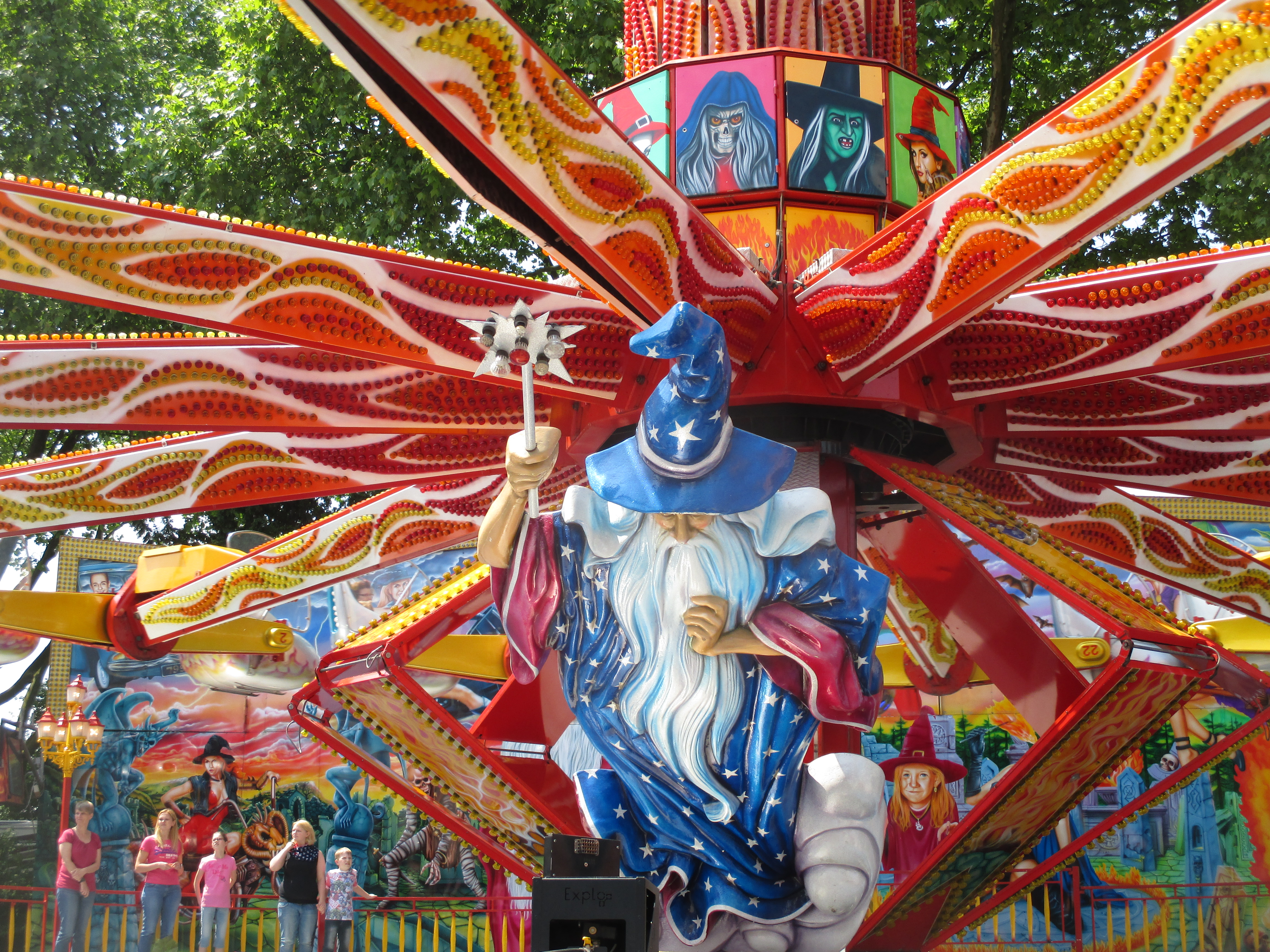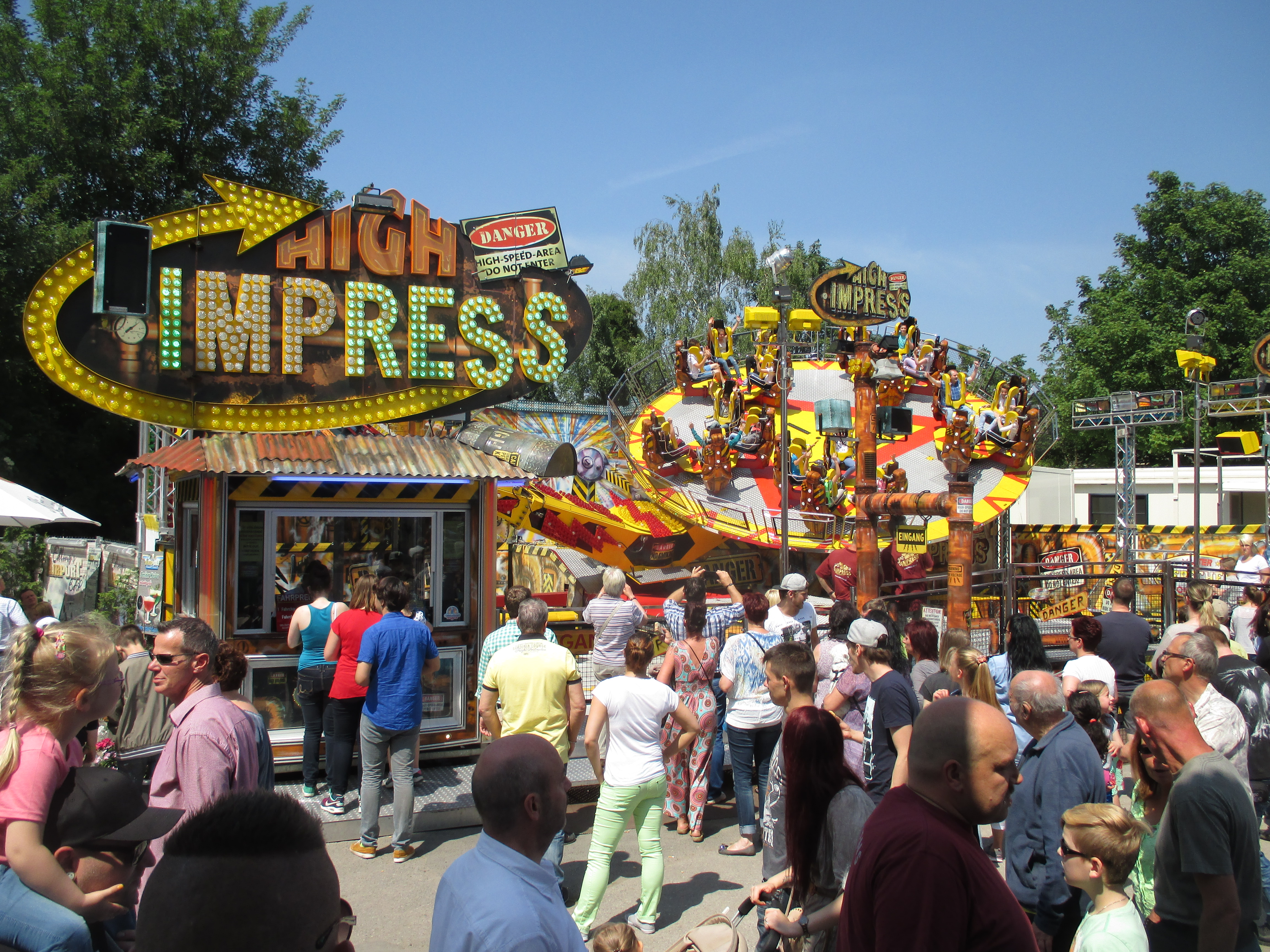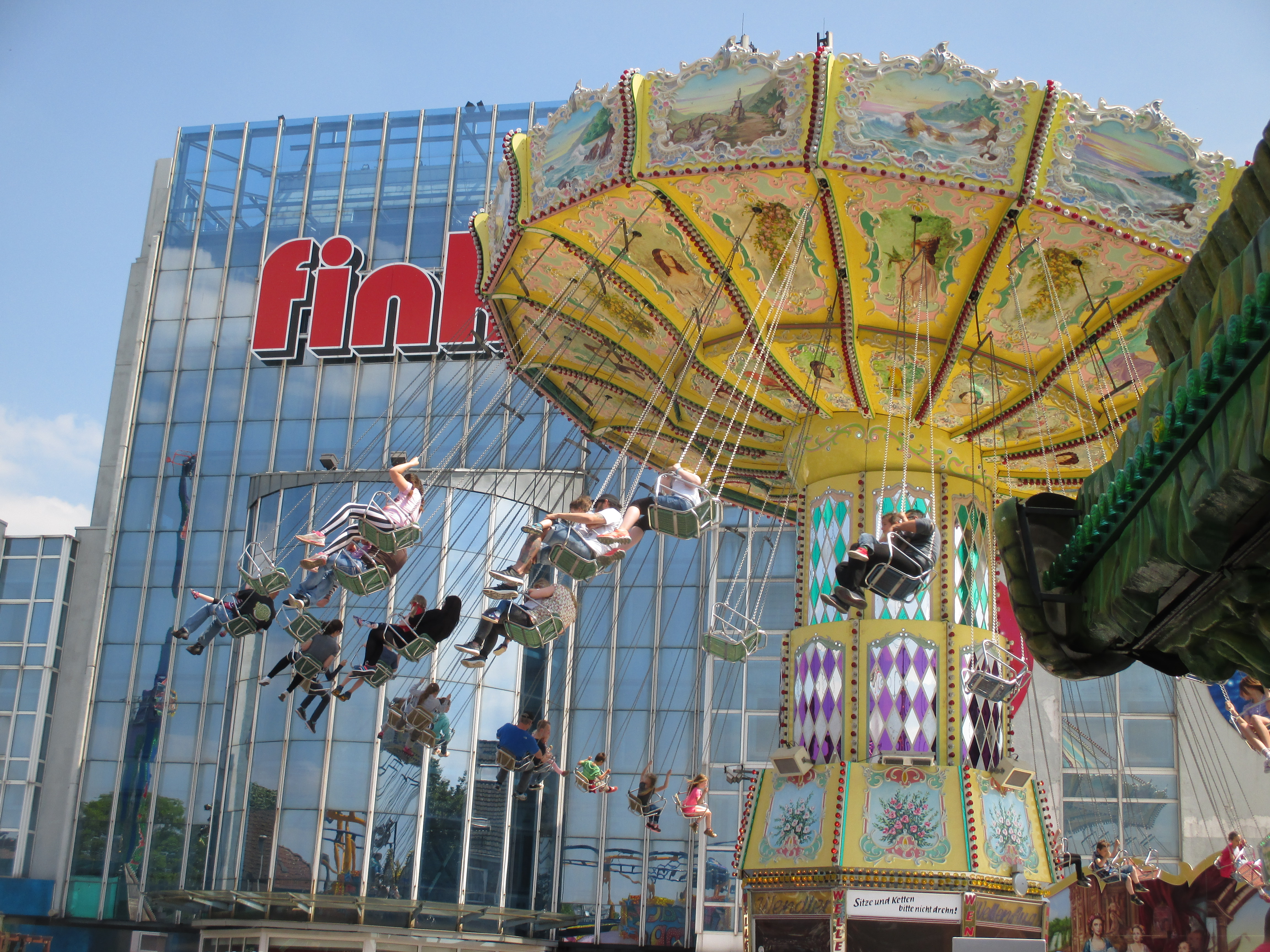 Die Raupenbahn ist gerammelt voll zu dieser Tageszeit um 14 Uhr - ist sie doch ein perfektes Angebot für alle Altersklassen. Aus den Musikboxen erschallen Klassiker der 70er Jahre: Clout mit "Substitute" und Patrick Hernandez mit "Born to be alive"