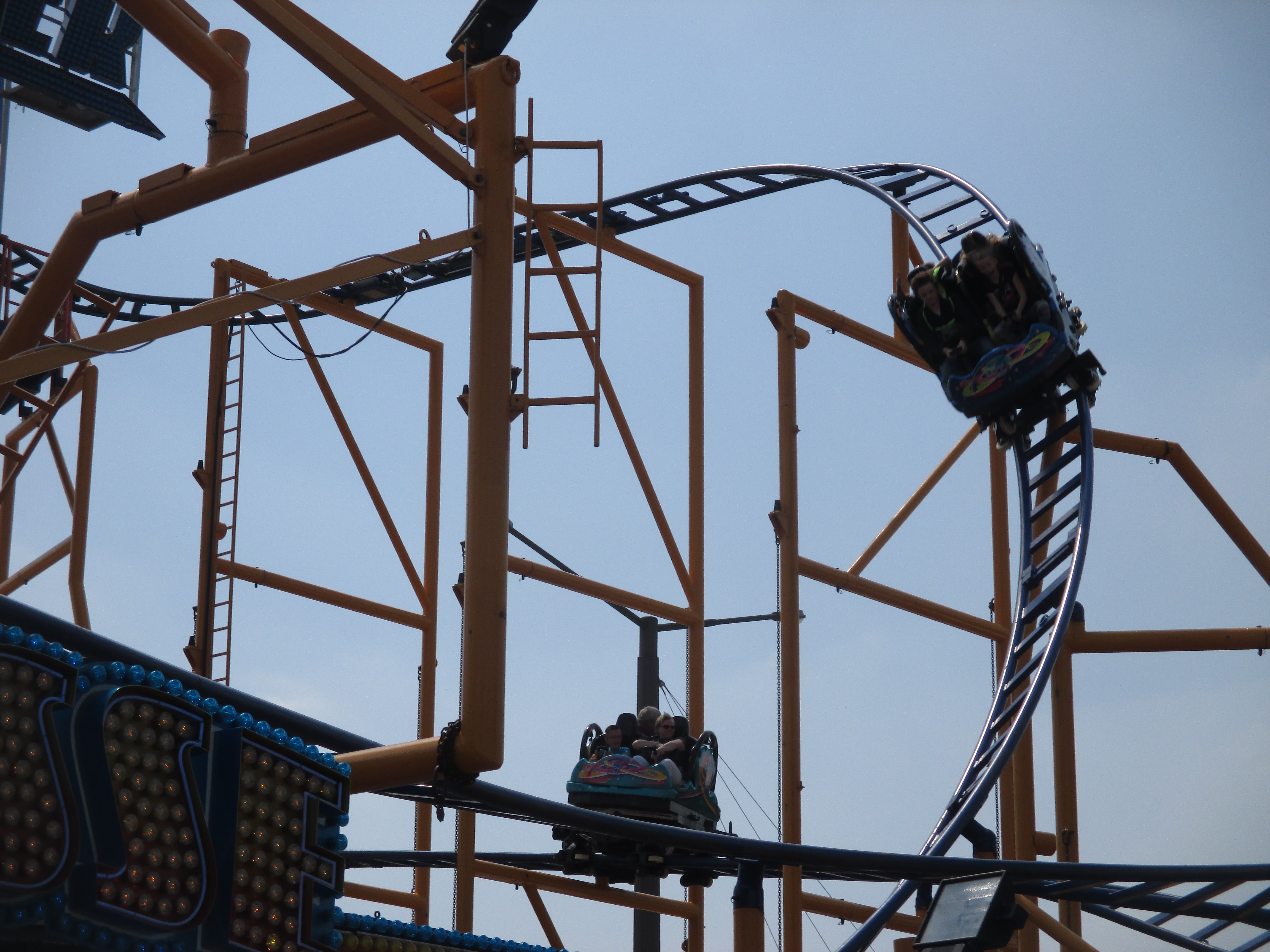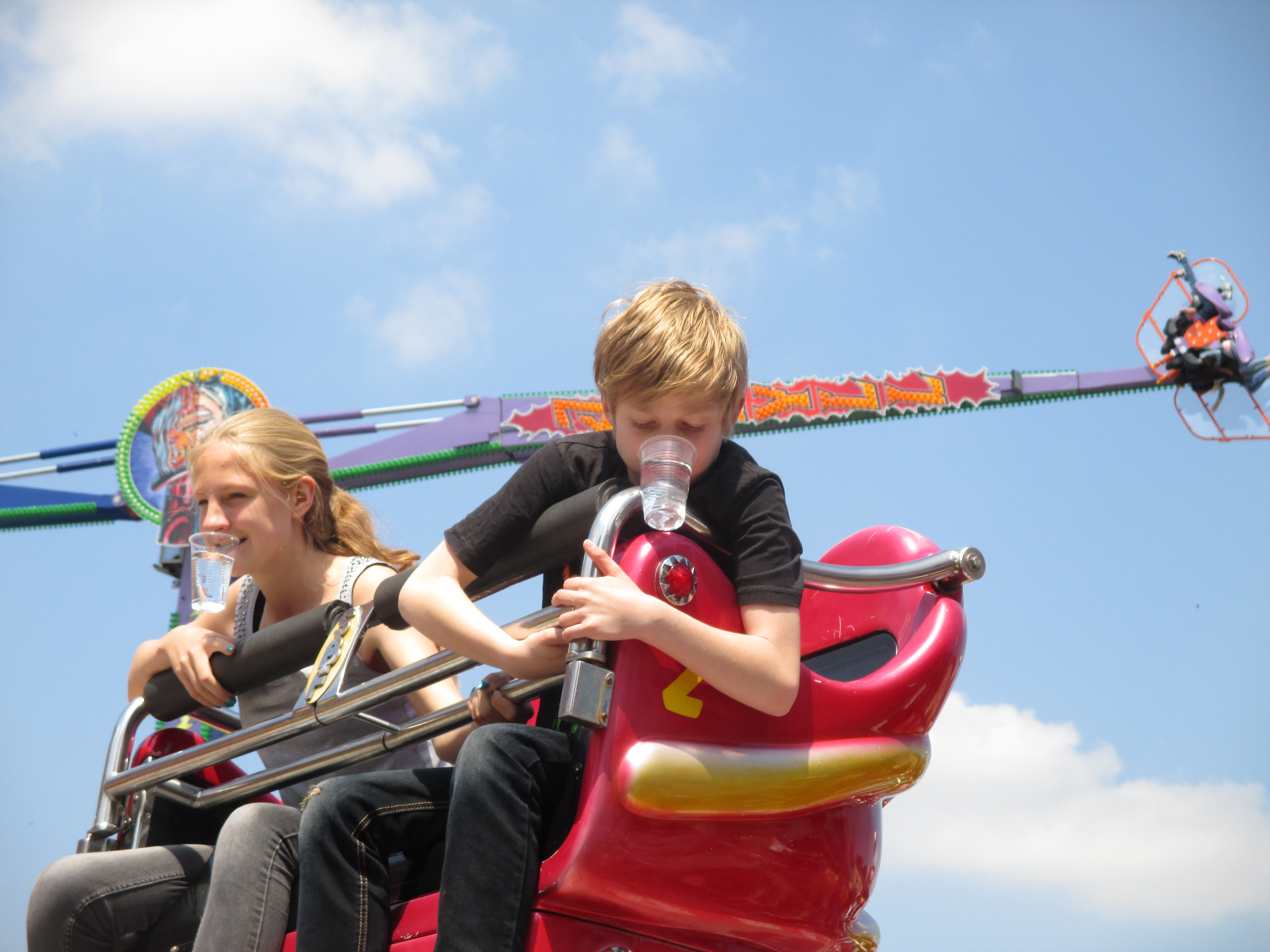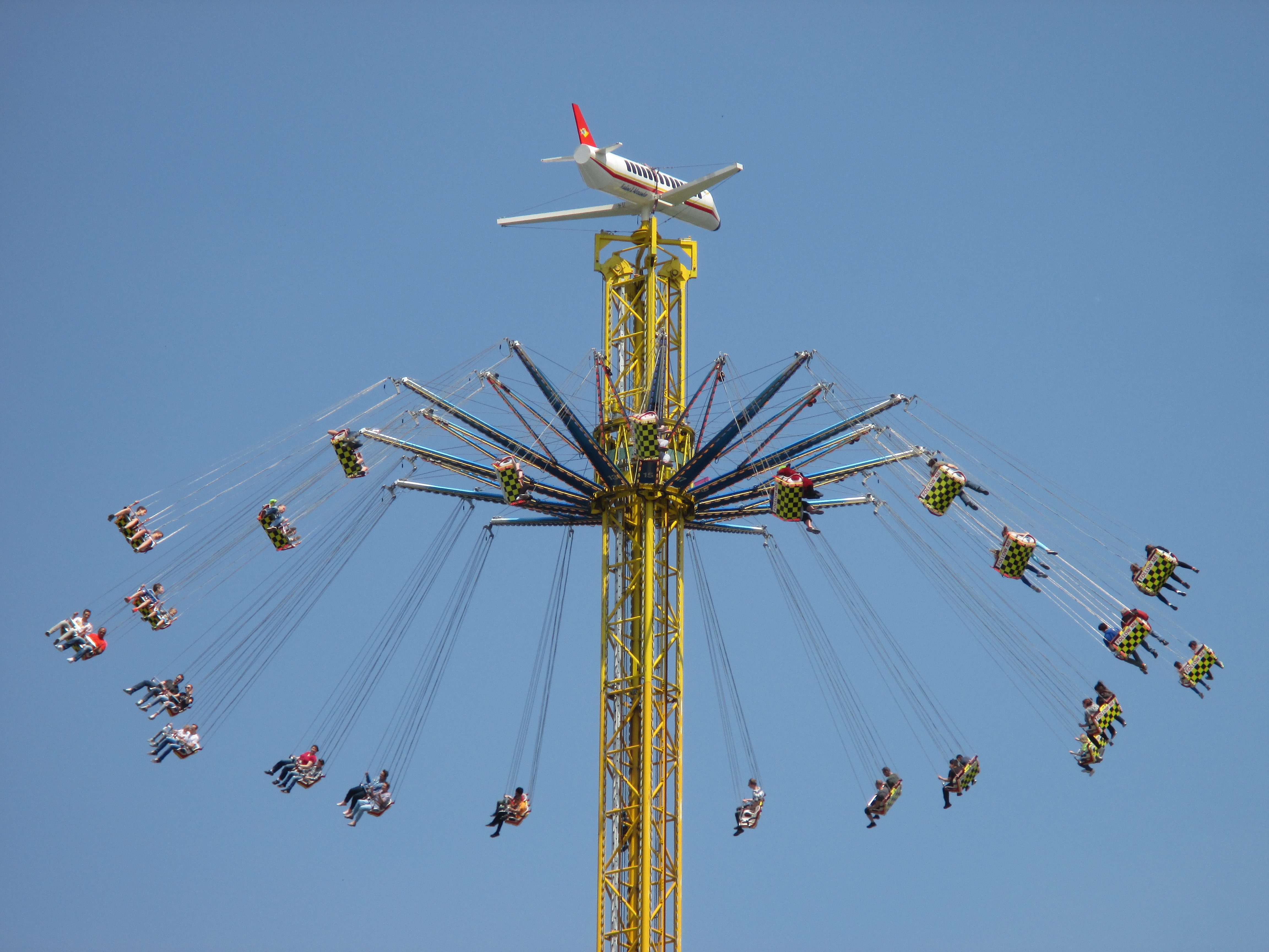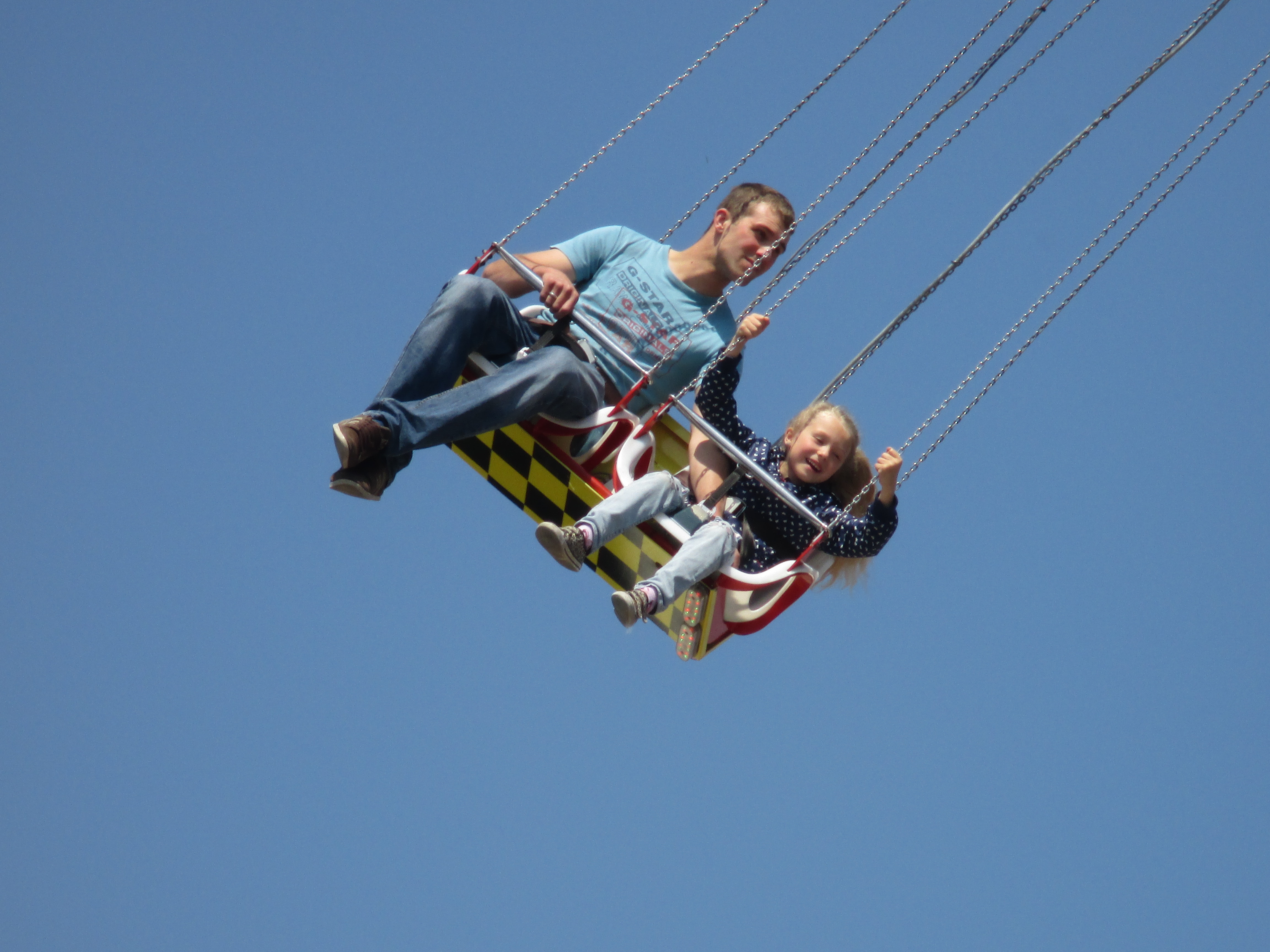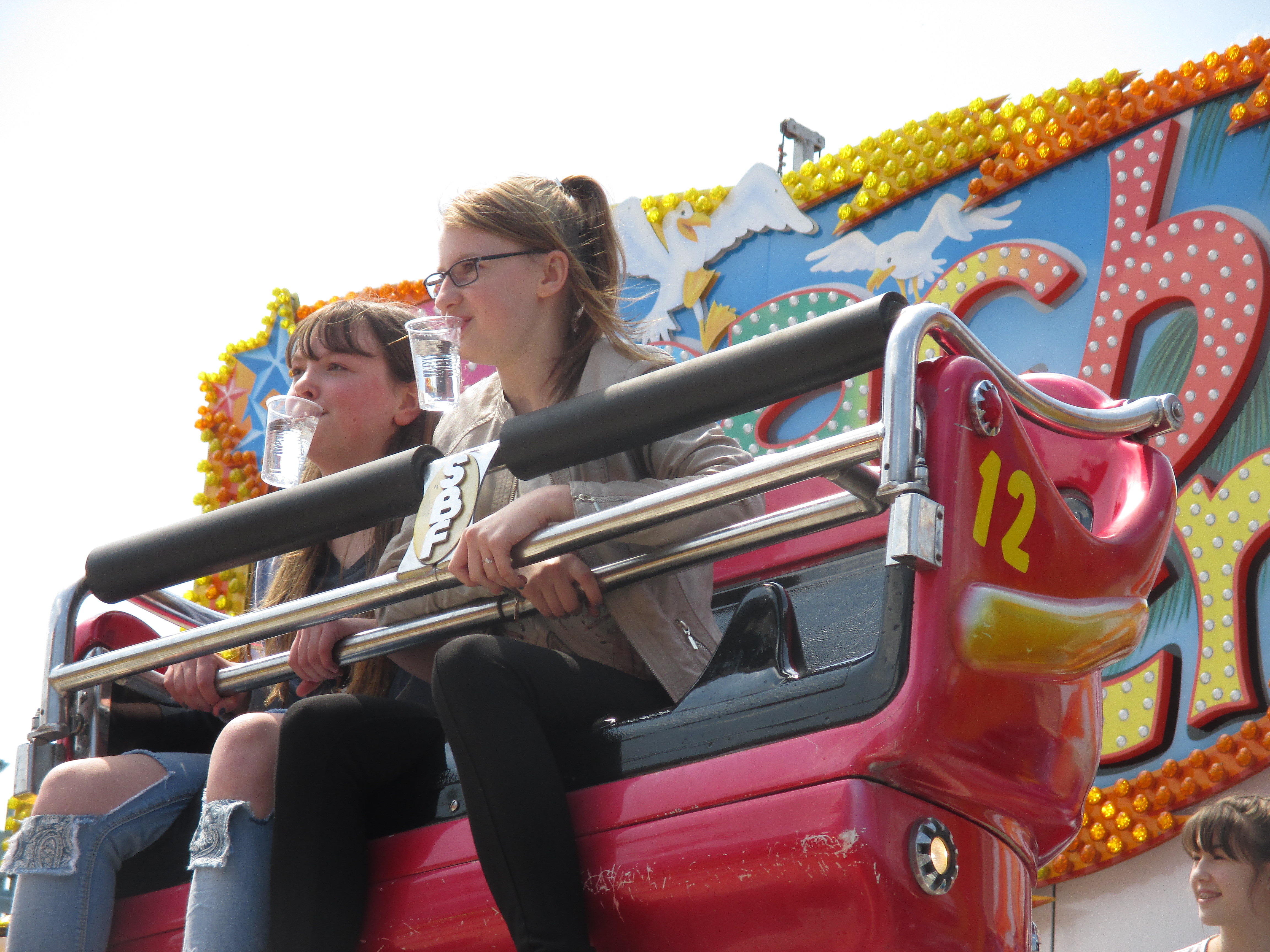 Die Raupenbahn ist gerammelt voll zu dieser Tageszeit um 14 Uhr - ist sie doch ein perfektes Angebot für alle Altersklassen. Aus den Musikboxen erschallen Klassiker der 70er Jahre: Clout mit "Substitute" und Patrick Hernandez mit "Born to be alive"