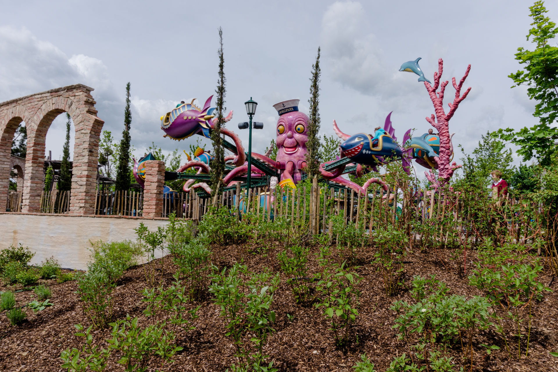 Zierer Flying Fish Fliegende Fische, welcher leider ohne kitschiges Kinderlied daherkommt, ein Bereich mit gesonderter Gestaltung. Dieses wäre nicht sonderlich schlimm würde nicht mit der diesjährigen Neuheit wieder das Thema des restlichen Bereichs aufgegriffen werden. Da hier aber noch viel Platz vorhanden ist und auch die maritime Gestaltung wirklich toll umgesetzt wurde wäre ein eigenständiger Bereich mit einigen weiteren kleineren Fahrgeschäften wünschenswert.