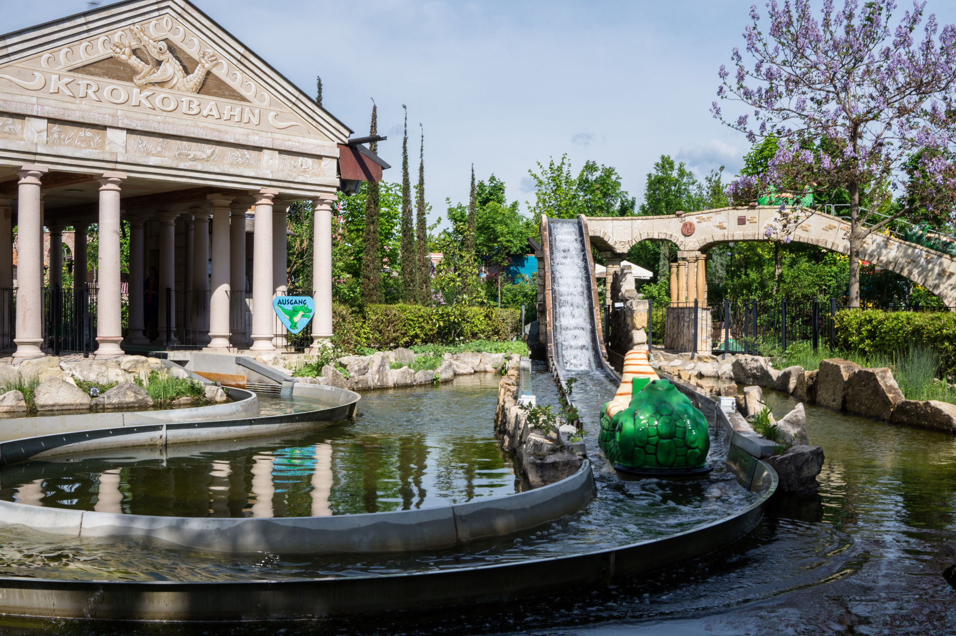 Eine sehr nervenraubende Fahrt ist dabei die kleine abc Rides Wildwasserbahn Krokobahn, welche bis auf eine kleine Doppelschussfahrt von außen betrachtet scheinbar nicht viel bietet. Durch die mehr als ausreichend mit Wasser befüllte Rinne kippte das Boot, trotz verzweifelter Versuche irgendwie plan zu bleiben, von einer Seite zur anderen. Obwohl ein Kentern ausgeschlossen war, war dabei die Fahrt zum Lifthügel mehr als abenteuerlich, zudem saßen wir recht eng und unbequem im Boot. Nach erklimmen des Aquädukts ging es nach einer kurzen Linkskurve sogleich die etwa 4m hohe Schussfahrt hinunter. Dem Versprechen des Angestellten, wonach man hier ordentlich befeuchtet wird, wird die Anlage mehr als gerecht.