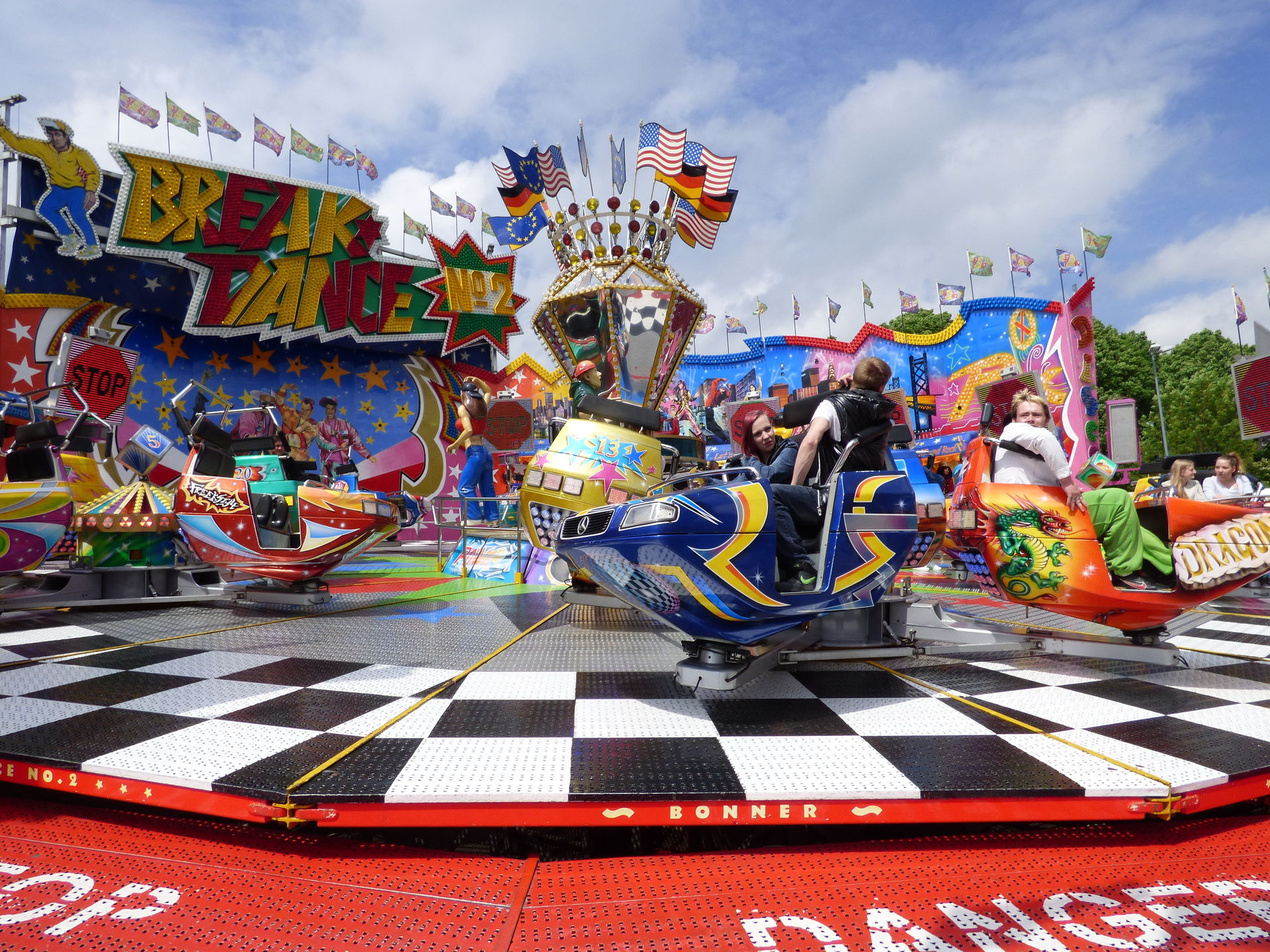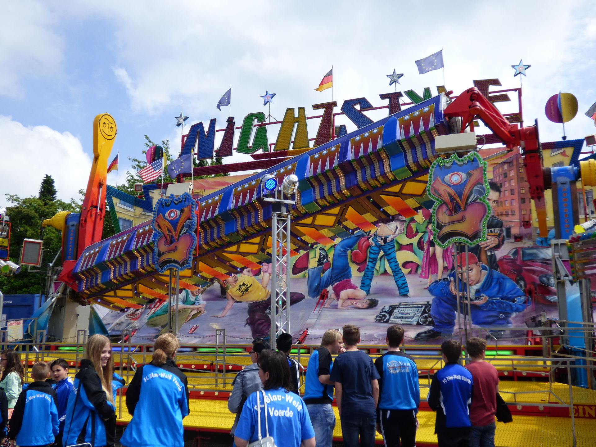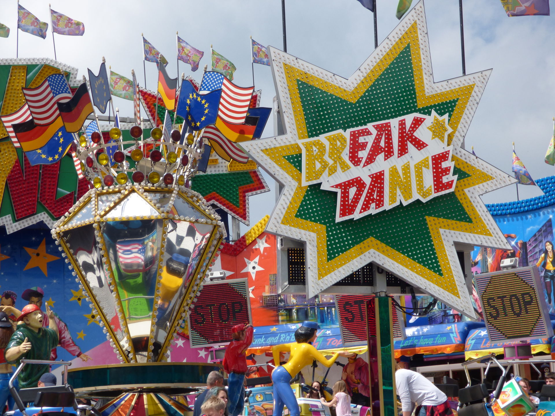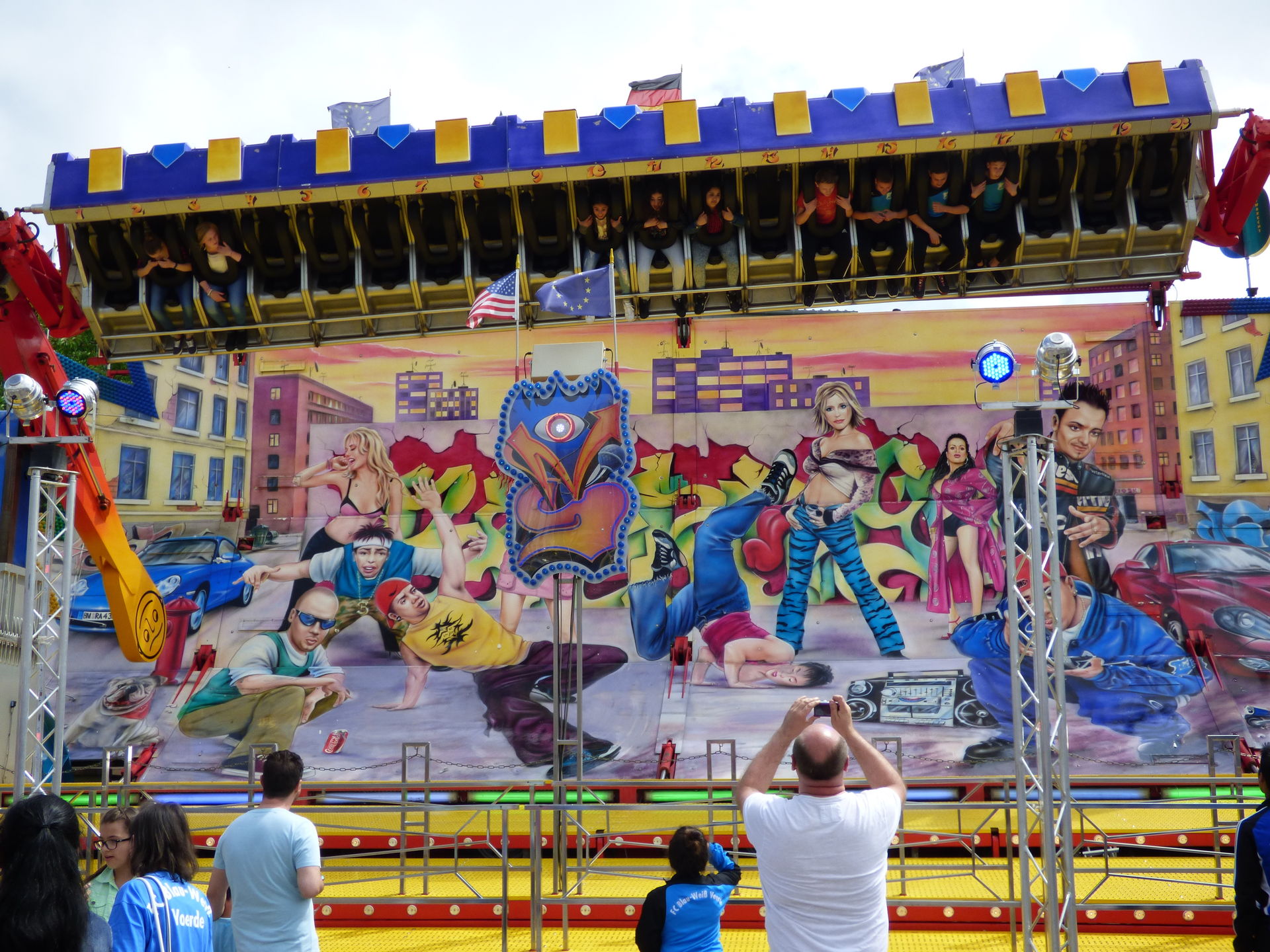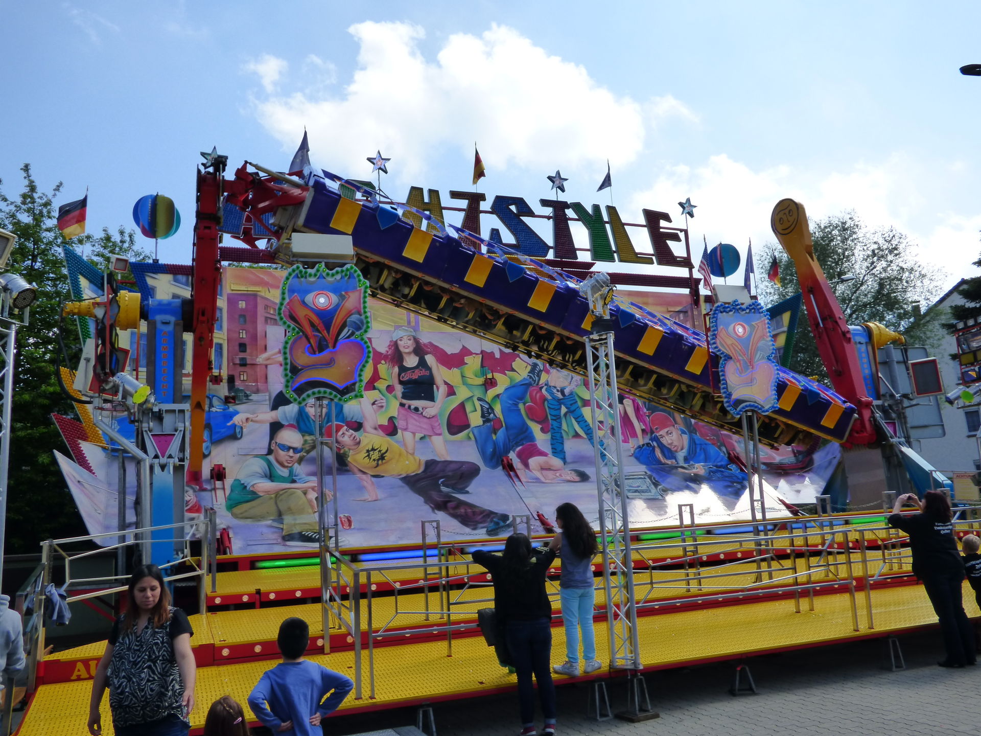 Dort stand zunächst einmal der große Break Dance No.2. Erstaunlicherweise war es an den Fahrgeschäften noch relativ leer obwohl der Platz schon sehr gut besucht war. Lag aber wahrscheinlich daran, dass der große Festumzug gerade erst zu Ende ging und die Massen sich jetzt erst so langsam auf die Attraktionen stürzten.