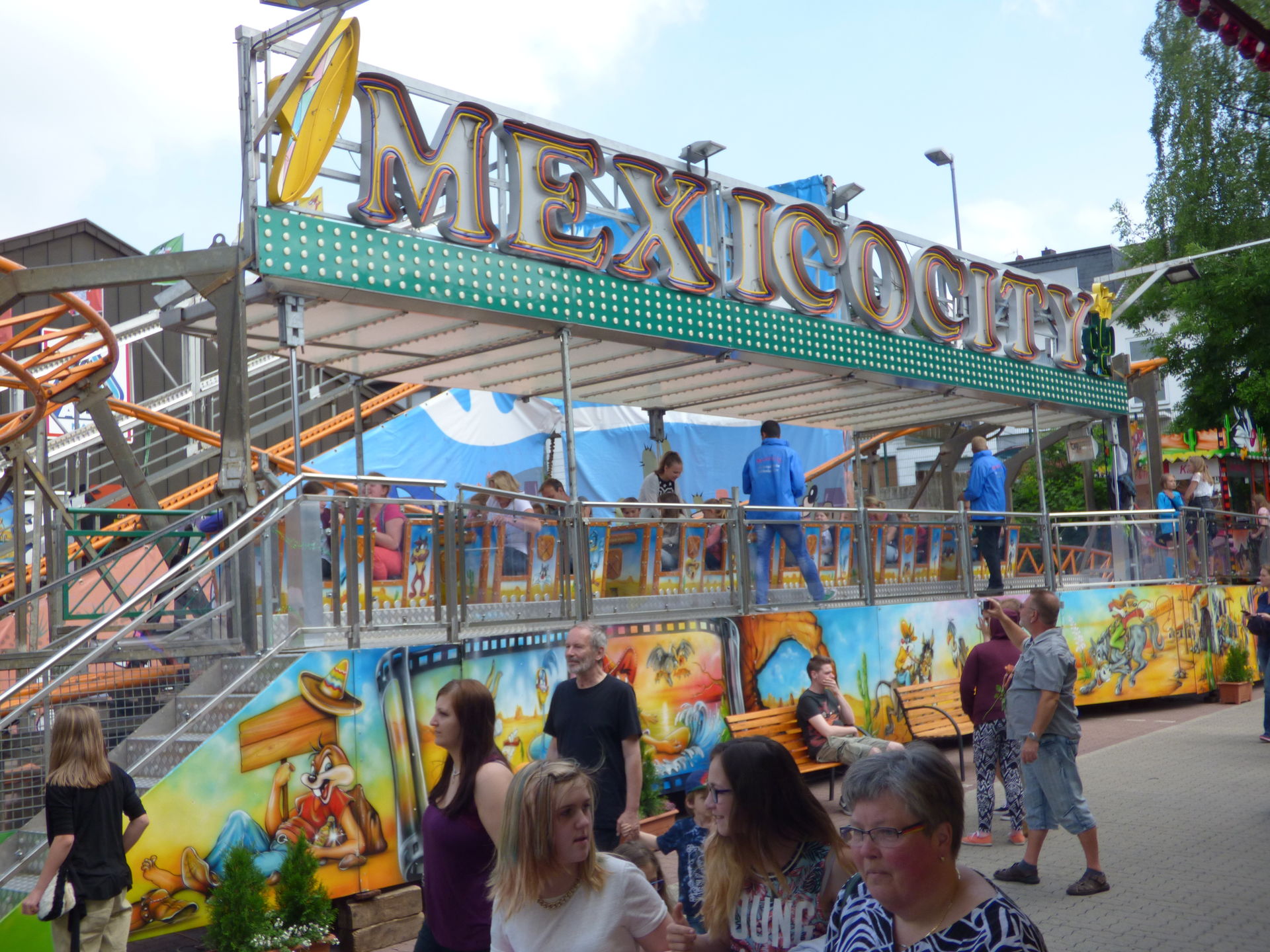 Am Ende des Platzes angekommen kamen auch die Achterbahnfreunde auf ihre Kosten, in erster Linie die jüngeren. Hier lud die Achterbahn Mexiko City zu einer Fahrt ein. Die Familienachterbahn erfreute sich großer Beliebtheit und wurde vom Publikum sehr gut angenommen.