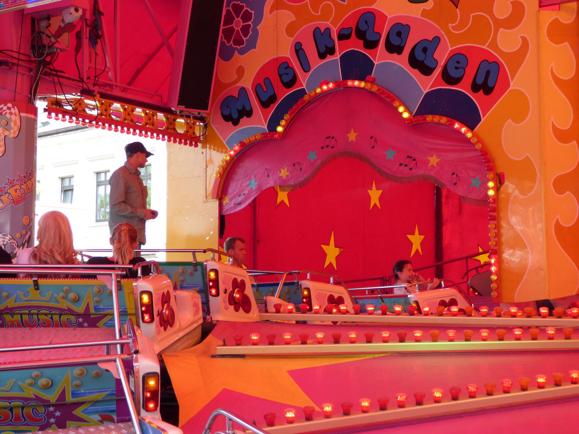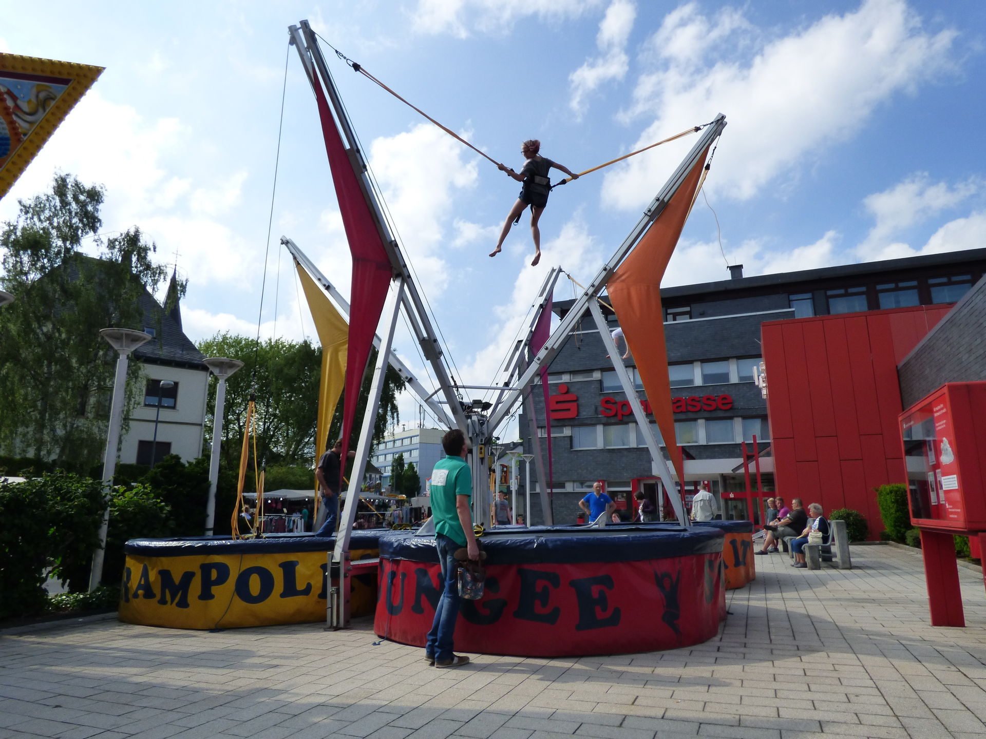 Erste Attraktion war der Musikexpress, der hier auf der Innenstadtkirmes seine Runden drehte. Direkt daneben konnten sich die Kinder wieder einmal auf einem Bungee Trampolin vergnügen. Die Dinger sind von der Kirmes mittlerweile gar nicht mehr wegzudenken.
