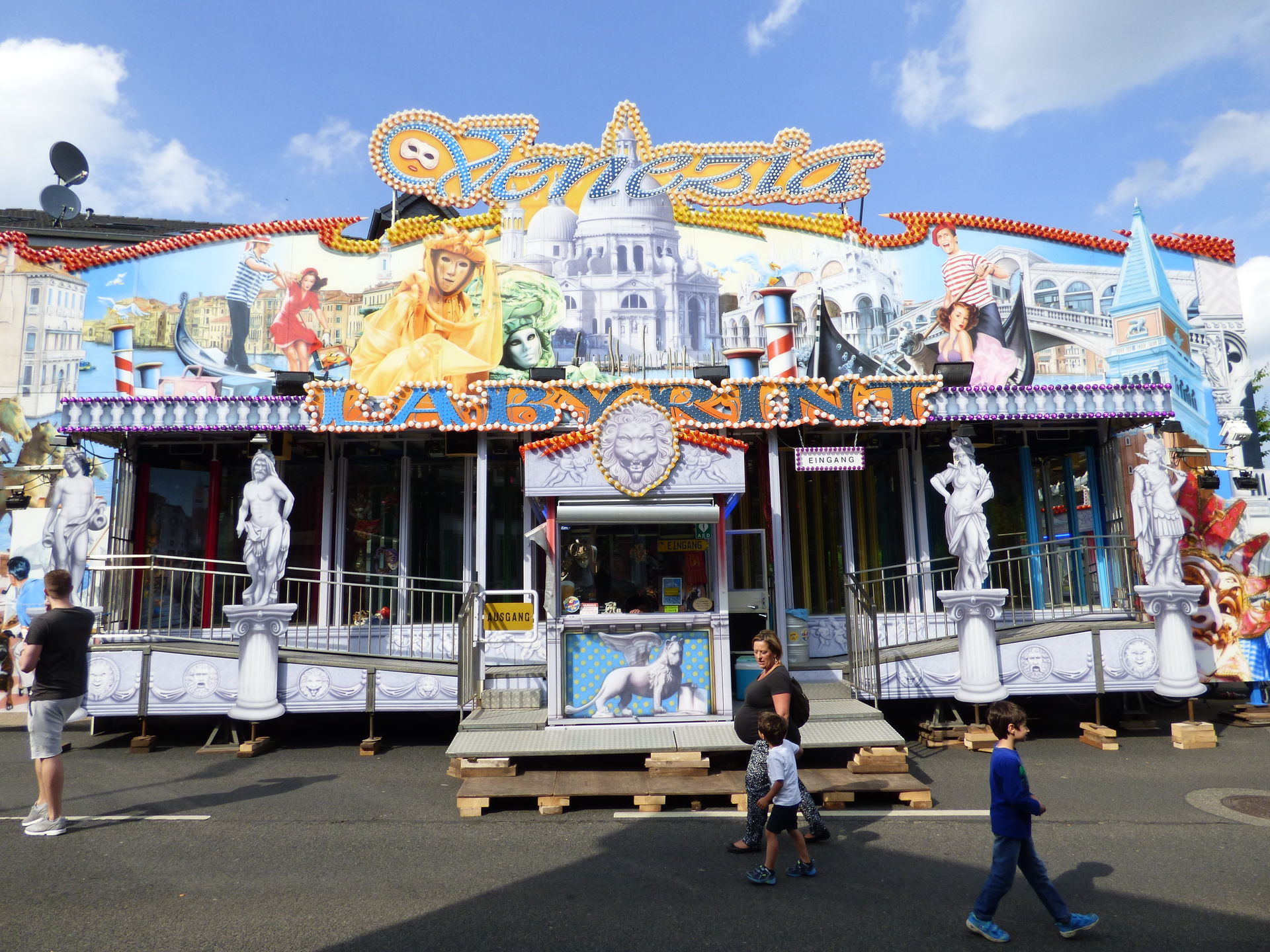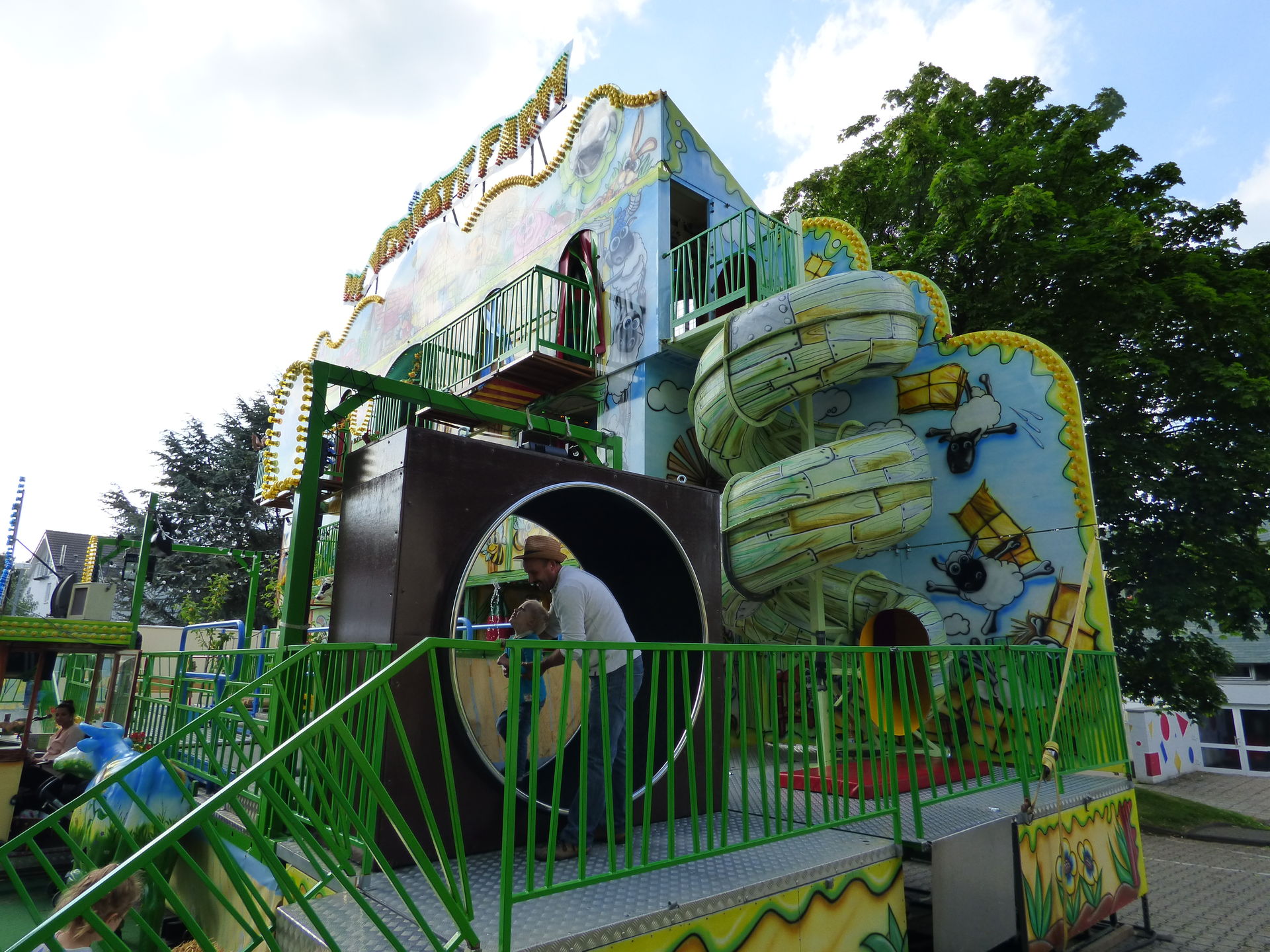 Danach ging es durch die Innenstadt von Radevormwald um weitere Attraktionen zu entdecken. Den Crazy Clown für die Kids ließen wir links liegen denn in unmittelbarer Nähe bahnte sich ein Laufgeschäfte Count für mich an. Hier stand der Glasirrgarten Venezia. Klarer Fall, eben die Fotos und Filmaufnahmen machen und dann ab ins Labyrinth. Für 2,50 bekam ich soliden Glasirrgarten Spaß mit einigen fiesen Ecken wo ich stellenweise kurz verzweifelt bin. Das Labyrinth ist auf jeden Fall größer als es von außen aussieht und hat auch den einen oder anderen gemeinen Irrweg zu bieten. Kurzum: Solide Unterhaltung und gut investierte 2,50 Euro. Anschließen gab es noch ein nettes Schwätzchen mit dem holländischen Betreiber.