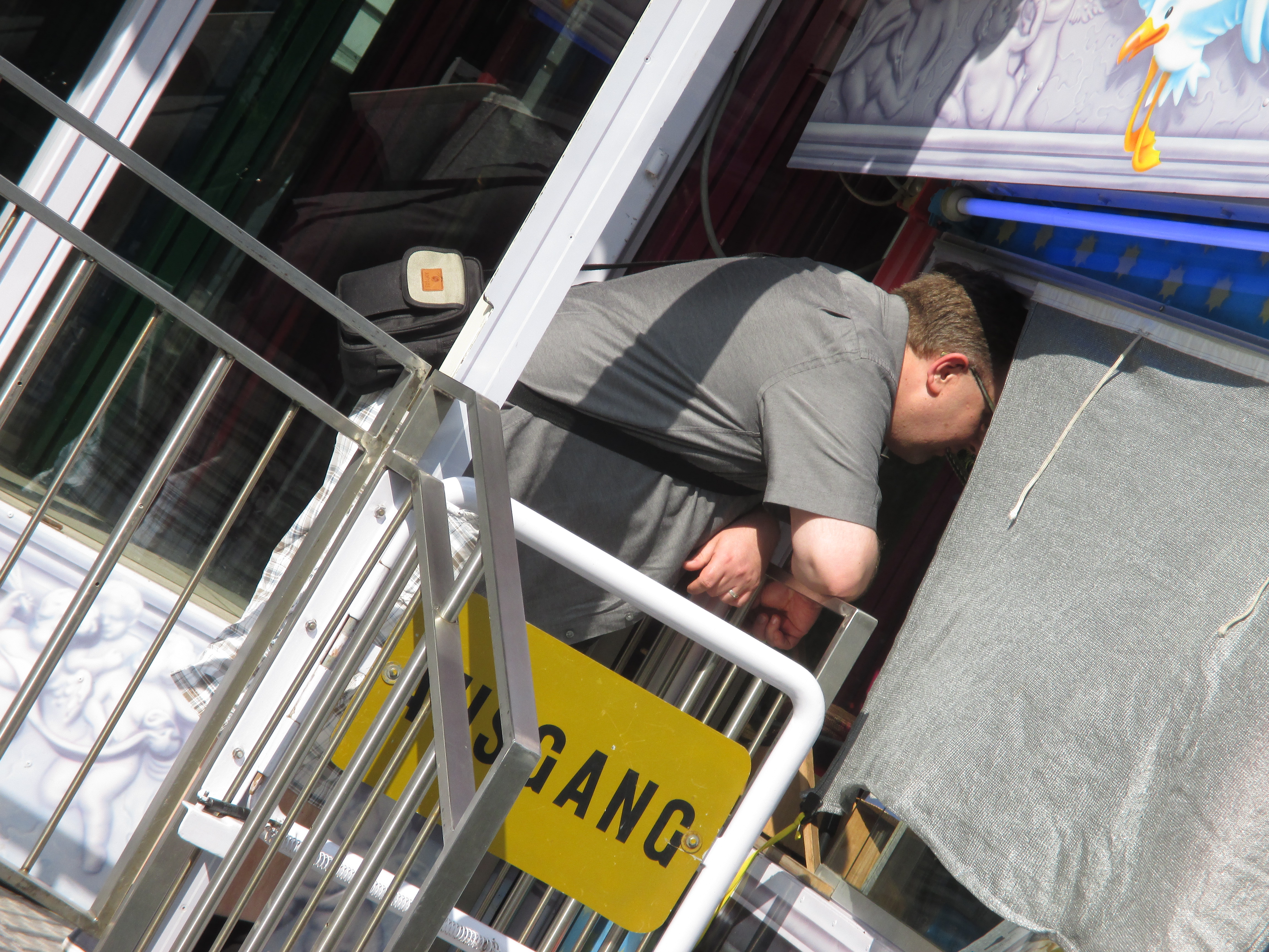 Es bestand die kurze Überlegung, einen Klamottenladen zu suchen, dann aber wurde einfach kurzerhand eine Jacke um die Hüfte gebunden um den Riss in der Hose zu überdecken. Genauso hatte es Thomas damals übrigens auch gemacht.