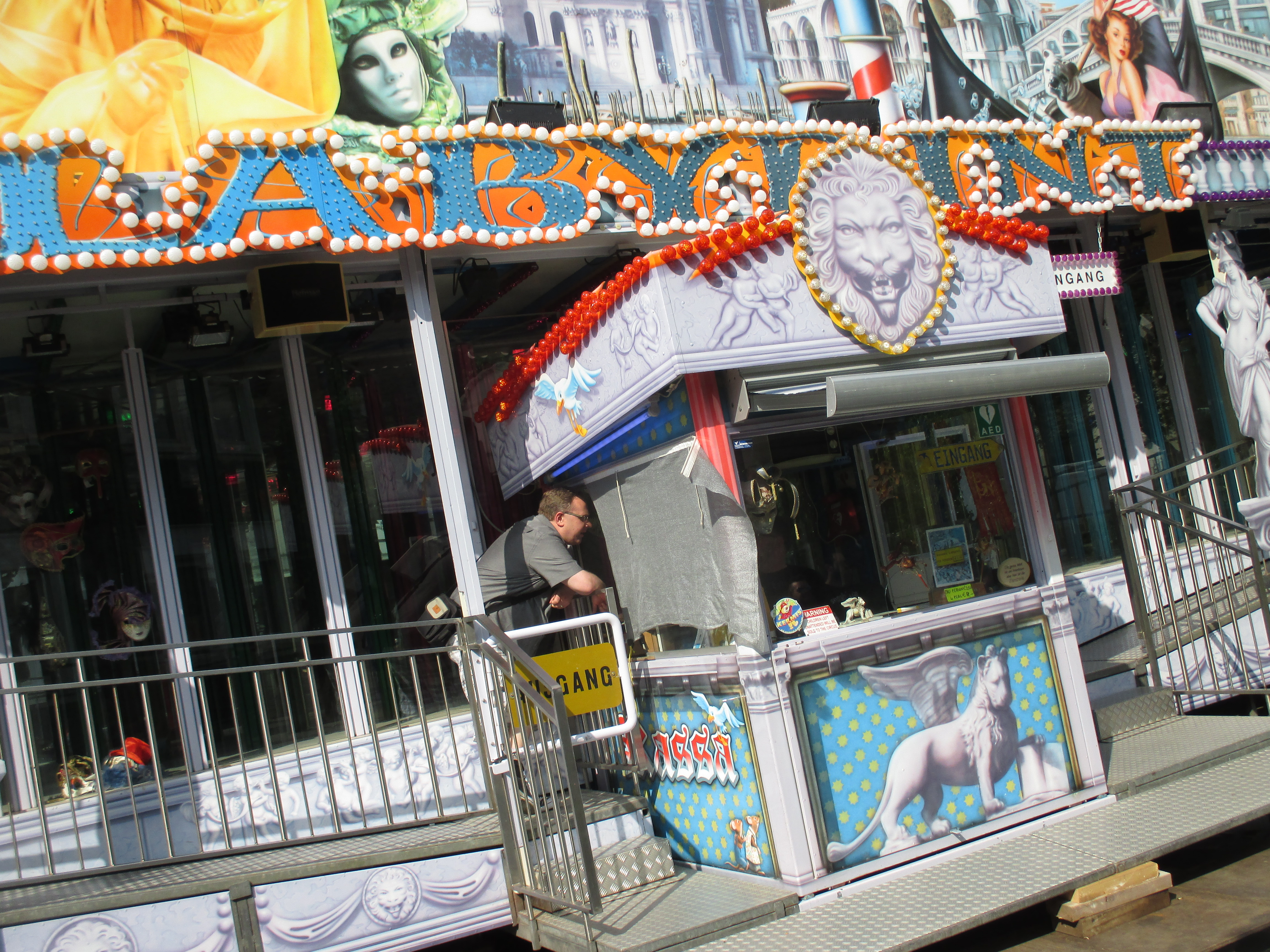 Die Anfahrt zu unserer zweiten Station auf unserer kleinen Kirmestour wurde zu einer kleinen Tortur. Nachdem wir den Blinker am Auto notbedürftig flicken konnten hatten wir doch etwas Angst, das Ding auf holpriger Straße irgendwo komplett zu verlieren. Also beschlossen wir am Auto angekommen, erstmal eben in den Baumarkt zu fahren um das Ding besser zu fixieren. Gesagt getan, wir schwingen uns ins Auto, es macht RATSCH und Thorsten steht die Panik ins Gesicht geschrieben.
