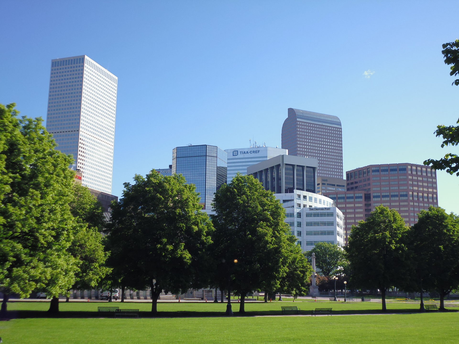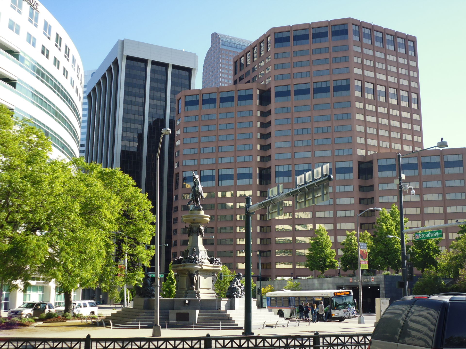 Centennial Park, Speer Boulevard und Blick nach Nordosten.