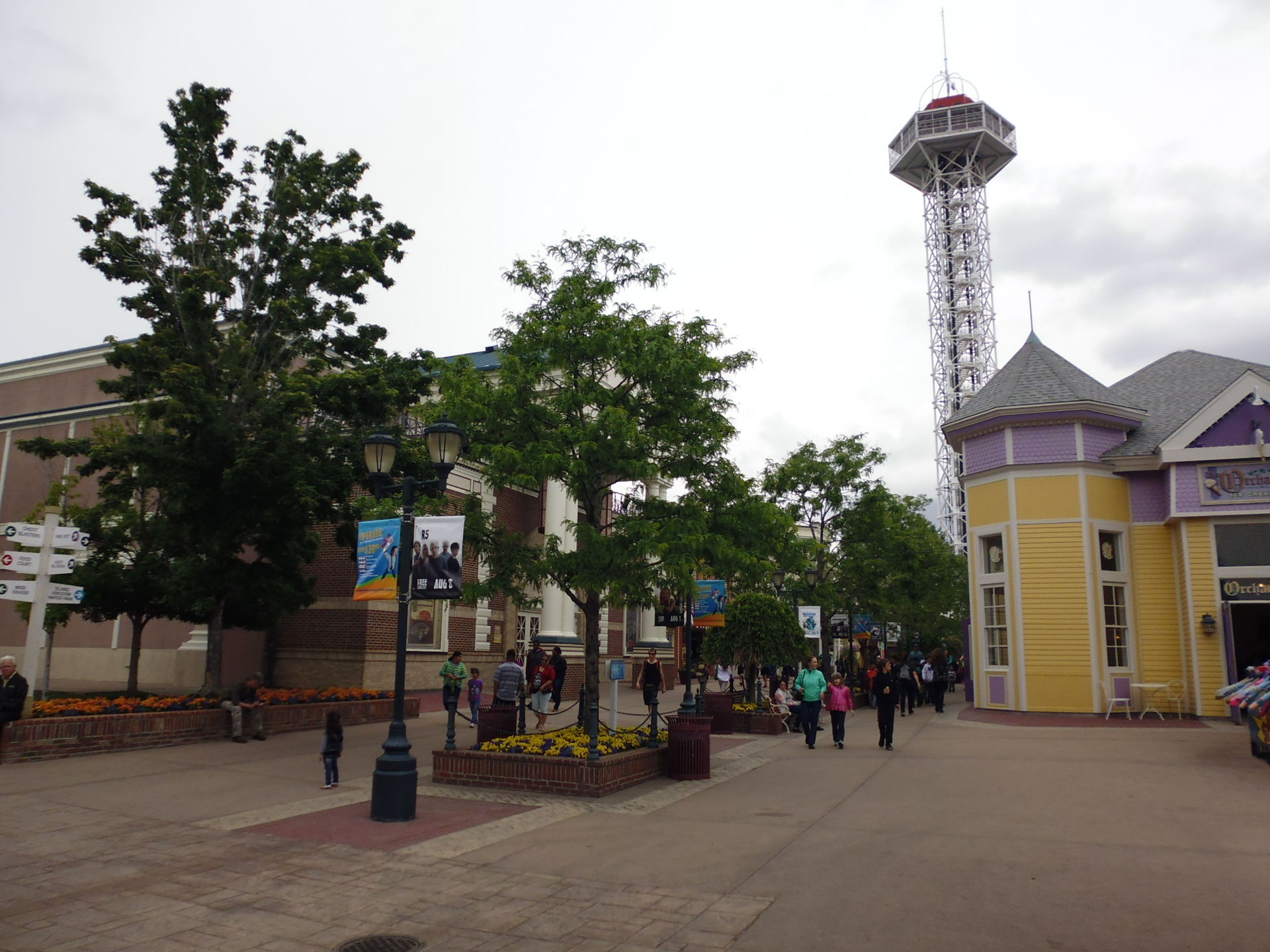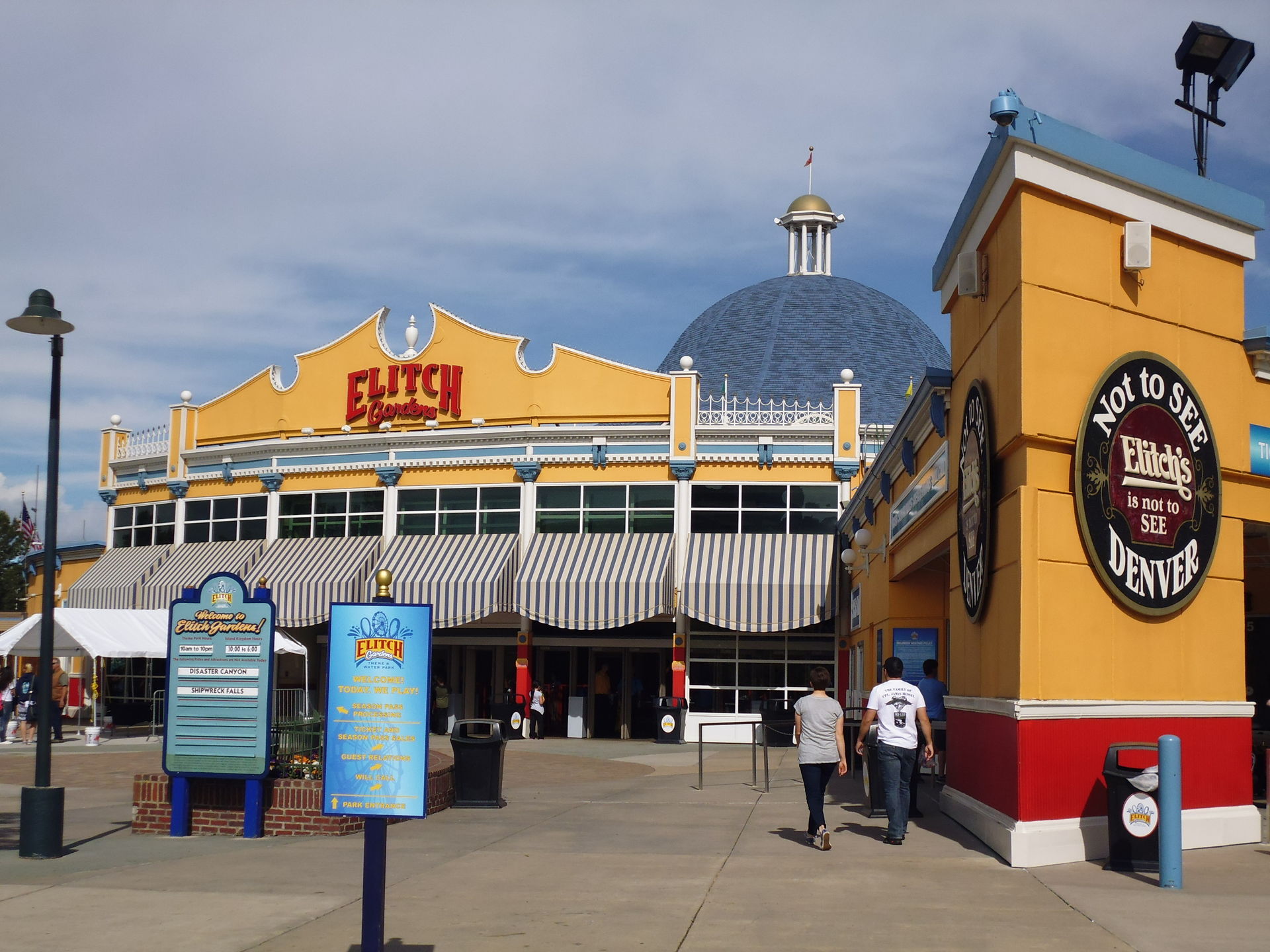 Gemäss dem Leitspruch "Not to see Elitch's is not to see Denver" passierte ich die Tickethäuschen, da ich die Eintrittskarte schon vorab an der Rezeption meines Hotels vergünstigt erwerben konnte, und stand nach der üblichen Taschenkontrolle auch schon im überdachten Eingangsgebäude. Durch das zwangsweise Aussprechen meines Kaufwunsches in der Hotellobby und über die hier durchgegebenen Lautsprecherdurchsagen lernte ich dann auch die korrekte Aussprache: Iiilitsch Gardens, mit langem i. Das von dem her betrachtet eben nicht so eindeutige Englische bietet hier wieder mal eine 50:50-Chance, sich als Tourist zu outen, der das Wort bislang nur geschrieben gesehen hat.