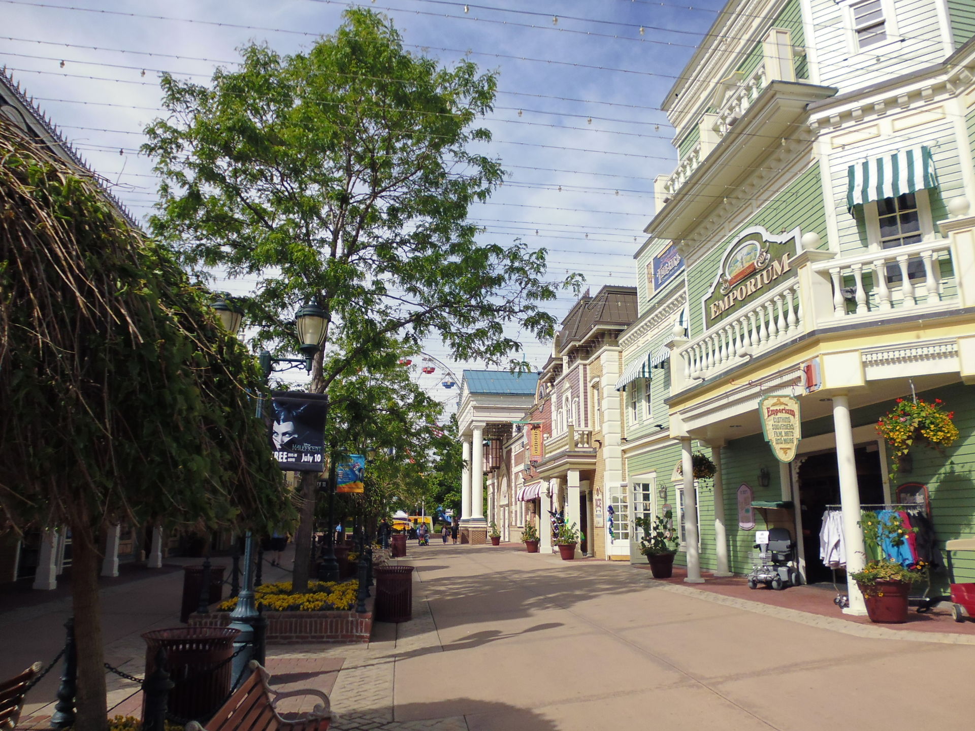 In der adretten Mainstreet wurde man bis zur offiziellen Öffnungszeit des Parks, 10.00 Uhr, zurückgehalten. Wie immer stieg die Spannung, da durch die an diesem Punkt aufgestaute Menschenmenge der Eindruck nach einem vollen Tag entstand. Immerhin war es ja ein Sonntag. Aber wie fast immer bei Parkbesuchen in der Nebensaison verteilte sich die Masse rasch im grosszügigen Parkgelände, so dass diese Sorge wie so oft völlig unbegründet war - mit dem üblichen Schlachtplan, erst die Kapazitätsgurken abzuspulen, war man hier jedenfalls wieder einmal bestens bedient. Um 10.00 Uhr wurde mit dem standesgemässen Nationalhymnen-Singen begonnen - und zwar von einem hohen Tier der Parkleitung höchstpersönlich, das die zahlreichen Armeeangehörigen zum Military Appreciation Sunday begrüssen wollte. Leider wählte der Herr so eine hohe, soulig angehauchte Tonlage dafür, dass die meisten Soldaten beim zweiten Teil dann nicht mehr mitsingen konnten und nur noch mitsummten oder -pfiffen.