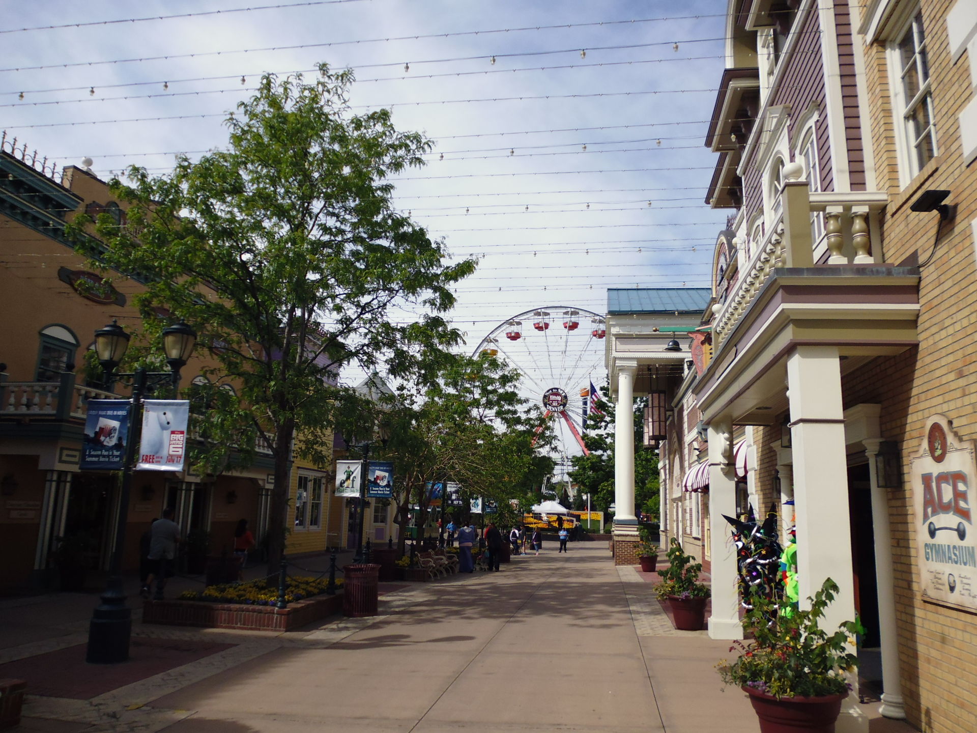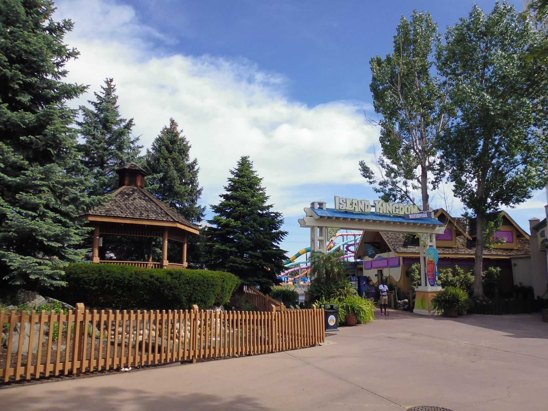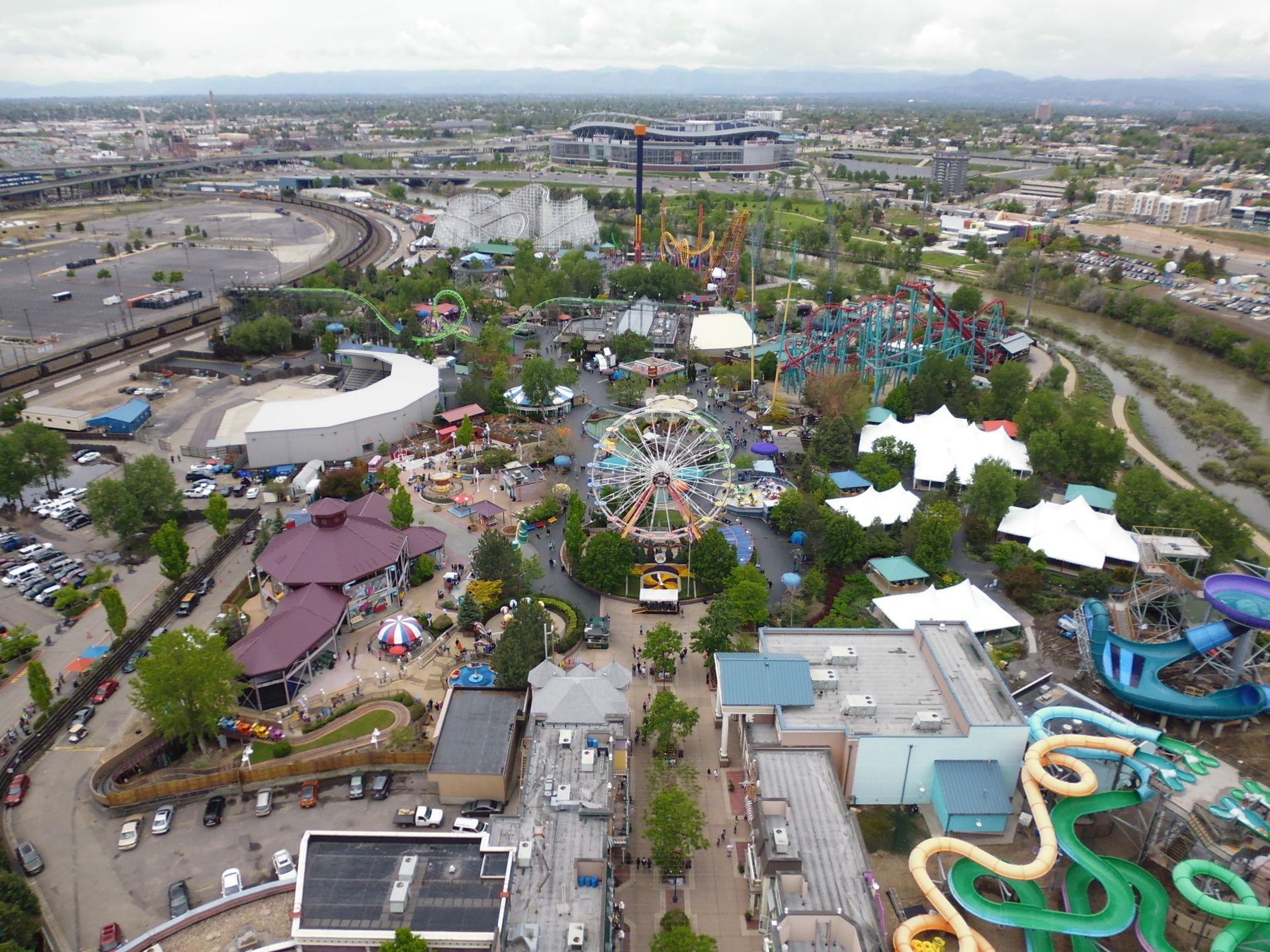 Dieses befindet sich wahrhaftig am Rand der unmittelbaren Innentadt - recht einzigartig für einen Freizeitpark. Und natürlich ahnt ihr schon, dass es die Elitch Gardens sind, die sich bis 1994 in einem Randbezirk Denvers unweit vom Lakeside Amusement Park auf einem Grundstück ohne Expansionsmöglichkeiten befunden haben und auf die Saison 1995 hin in einem bis dato wohl ziemlich einmaligen Move an die jetzige und wirklich überaus zentrale Lage umgezogen sind, mit den grössten Bahnenhighlights im Gepäck. Nach wirklich bloss sechsminütiger Fahrt war ich also an den Eingangspforten des Parkplatzes angekommen, schnaubte kurz über die Unfähigkeit mir bei 15$ Parkgebühr auf 25$ eine runde 10$-Note als Wechselgeld anbieten zu können, stationierte meinen Fiat und marschierte in Richtung Eingang zwecks erster Begutachtung und Fotos.