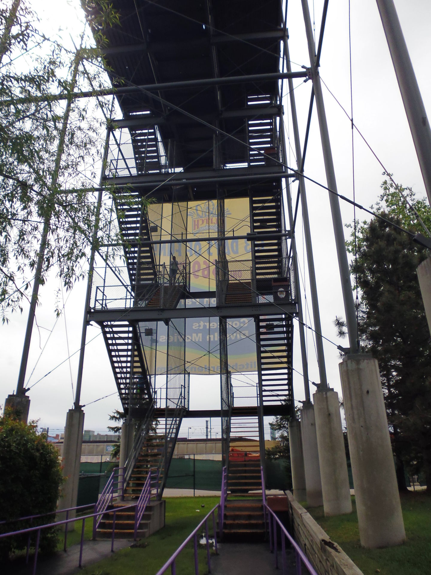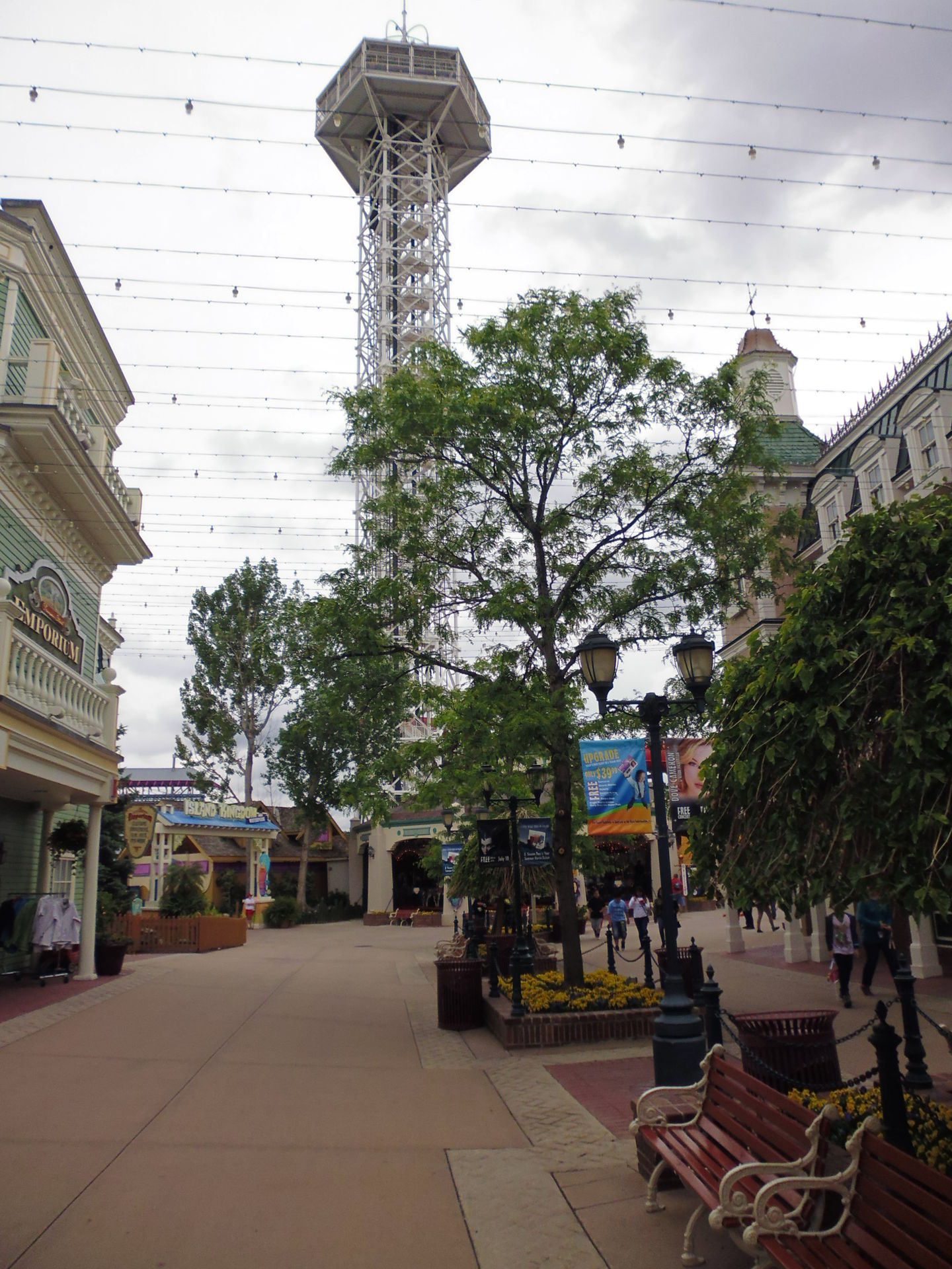 Zum Abschluss begab ich mich langsam wieder in die Nähe des Eingangs und sprang noch rasch in den Aufzug auf den markanten Aussichtsturm, der aus 76 Metern Höhe eine schöne Rundsicht auf den Park und die Umgebung bietet. Durch dieselben zankenden Kinder im Lift bei der Hoch- und der Runterfahrt wars zwar leicht mühsam, aber die Aussicht entschädigt auch bei miesem Wetter wie bei meinem Besuch so ziemlich für alles!