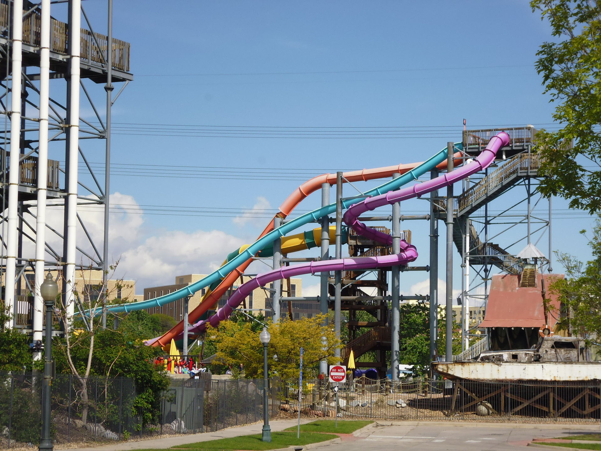 Weiters habe ich noch ein paar Panorama- und auch ein paar normale Bilder des Wasserparkbereichs Island Kingdom, der an diesem Tag zum ersten Mal in der Saison öffnete. Trotz doch eher frischer Temperaturen haben sich einige Besucher da rein und auch auf die Rutschen gewagt.