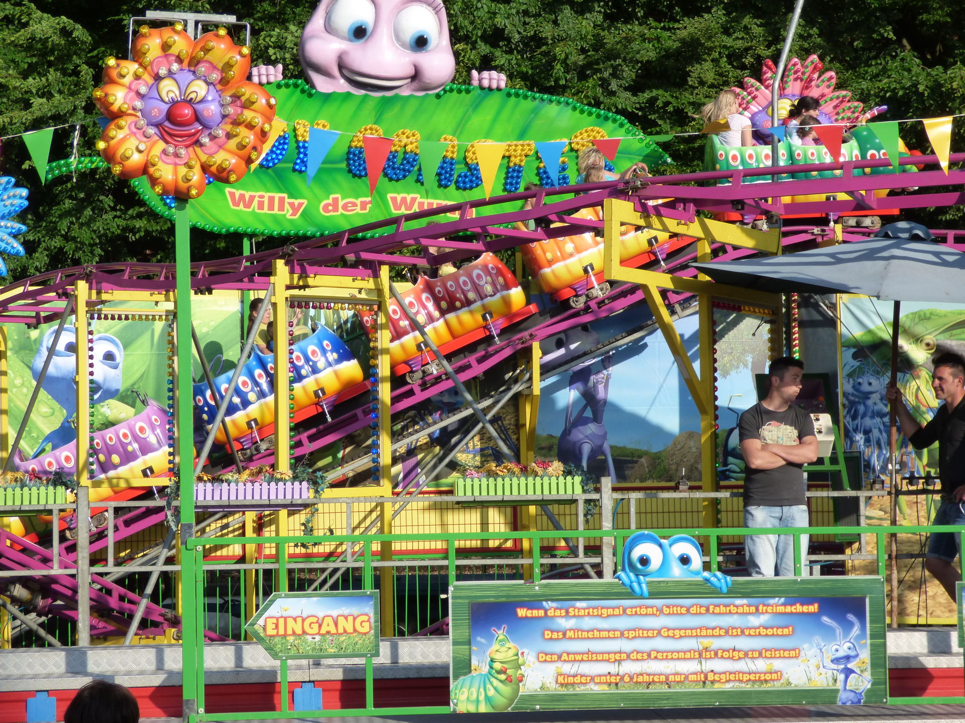 Was gab es sonst noch zu sehen auf dem Platz? Zum einen baute hier ein Kettenflieger. Für die jungen Achterbahnfreunde stand die Familienachterbahn Willy der Wurm bereit. Ein Autoscooter durfte natürlich auch nicht fehlen.