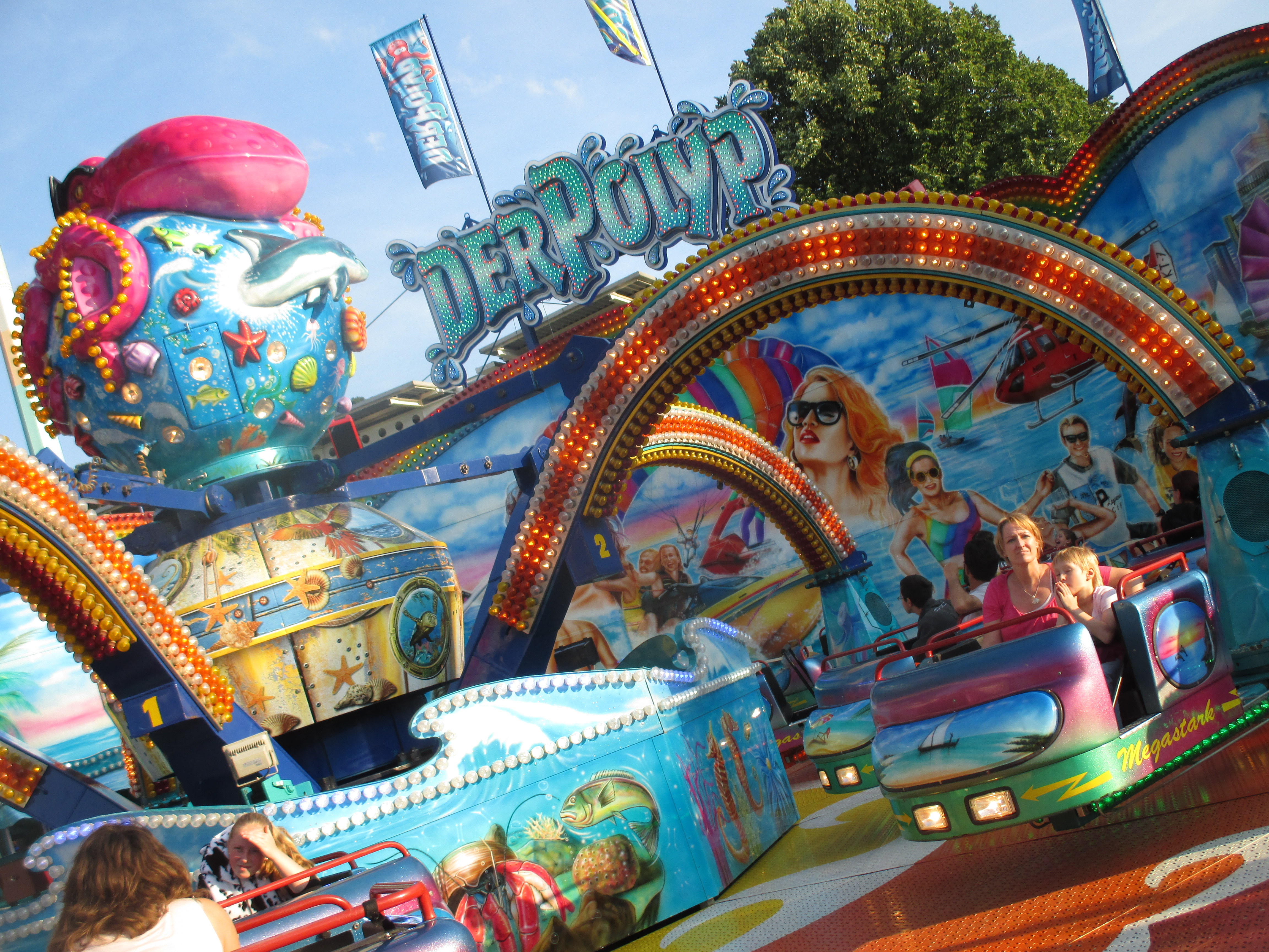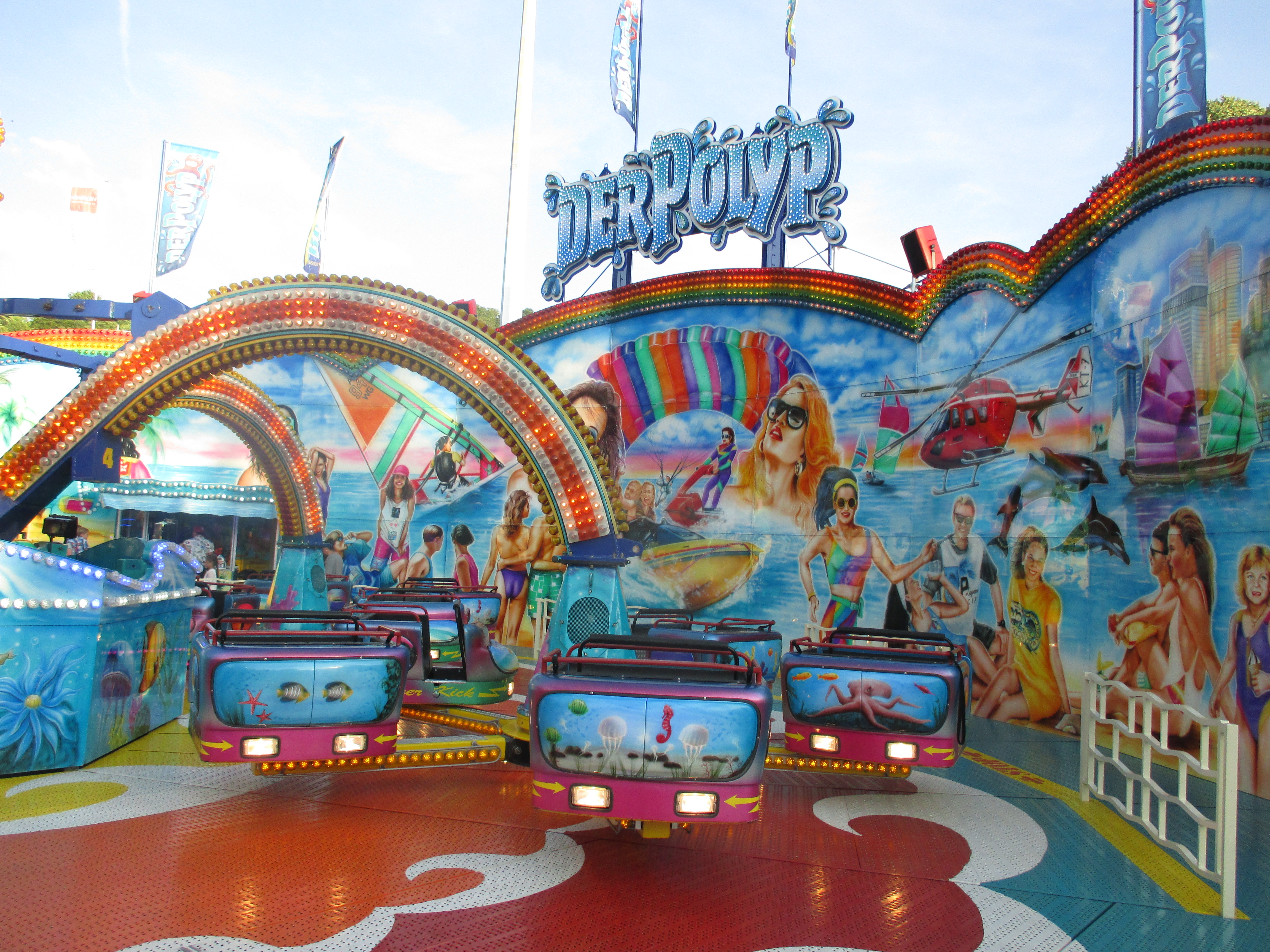 Am Ende der Meile warteten dann noch ein paar Attraktionen auf uns, darunter zwei Karussellklassiker. Zum einen der fliegende Teppich 1001 Nacht, zum anderen Der Polyp.