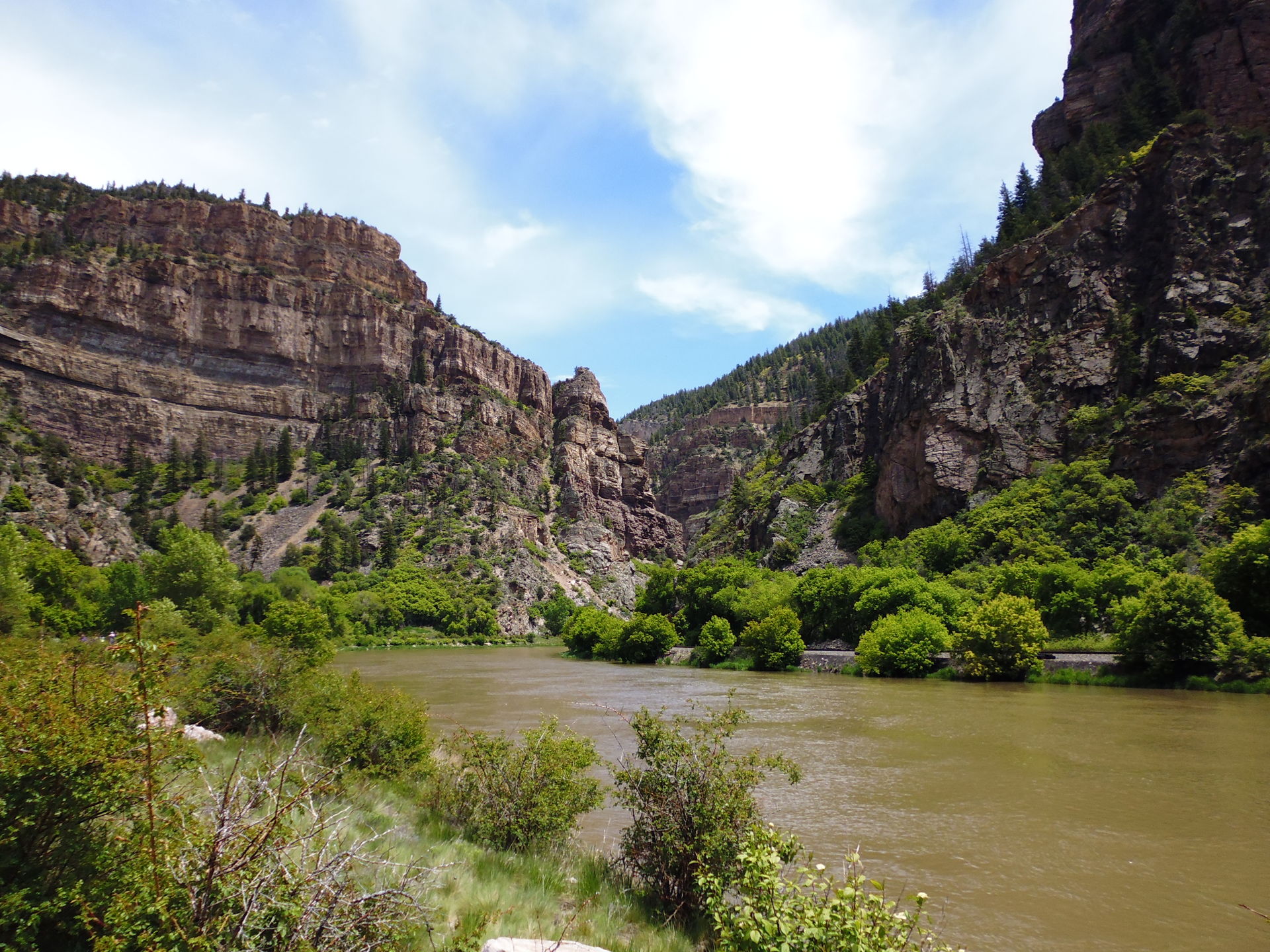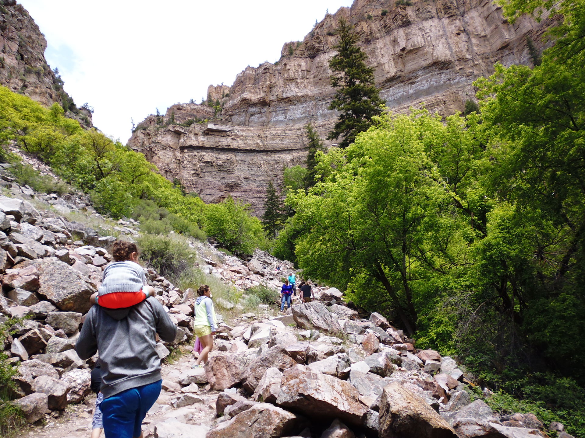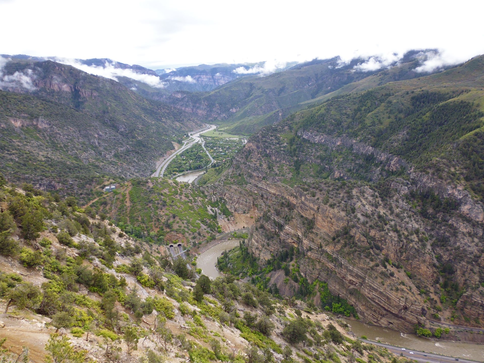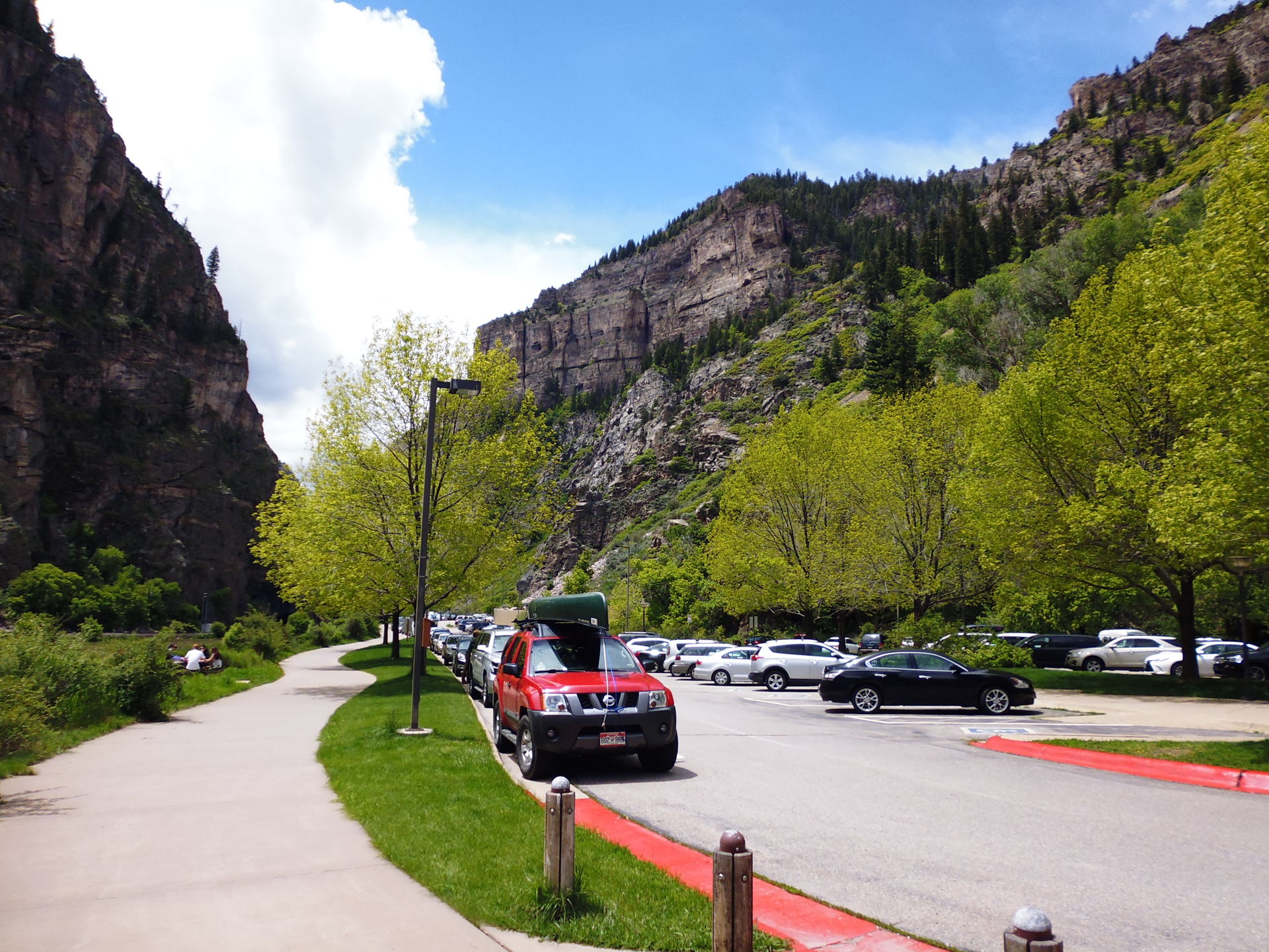 Die Rede ist von der Wanderung zum Hanging Lake, deren Ausgangspunkt knappe elf Kilometer östlich von Glenwood Springs liegt. Die Anfahrt wurde zu einer leichten Geduldsprobe, da wegen Belagsarbeiten auf der Interstate für volle 20 Minuten einfach auf beiden Spuren der Verkehr angehalten wurde und von meiner Position aus nicht ersichtlich war, weshalb hier alles stillsteht. Bald war dann endlich der Parkplatz an der Ausfahrt 125 erreicht, der übrigens nur von Westen her erreicht werden kann - fährt man von Denver her an ist ein laut Google Maps zehnminütiger U-Turn-Umweg bis zur Ausfahrt 121 nötig. Zu meinem Erstaunen war das Areal fast bis auf den letzten Platz besetzt - an einem Spätfrühlings-Werktag! Da will man sich gar nicht vorstellen, wie es hier zur Haupt-Wandersaison oder an Wochenenden aussieht.