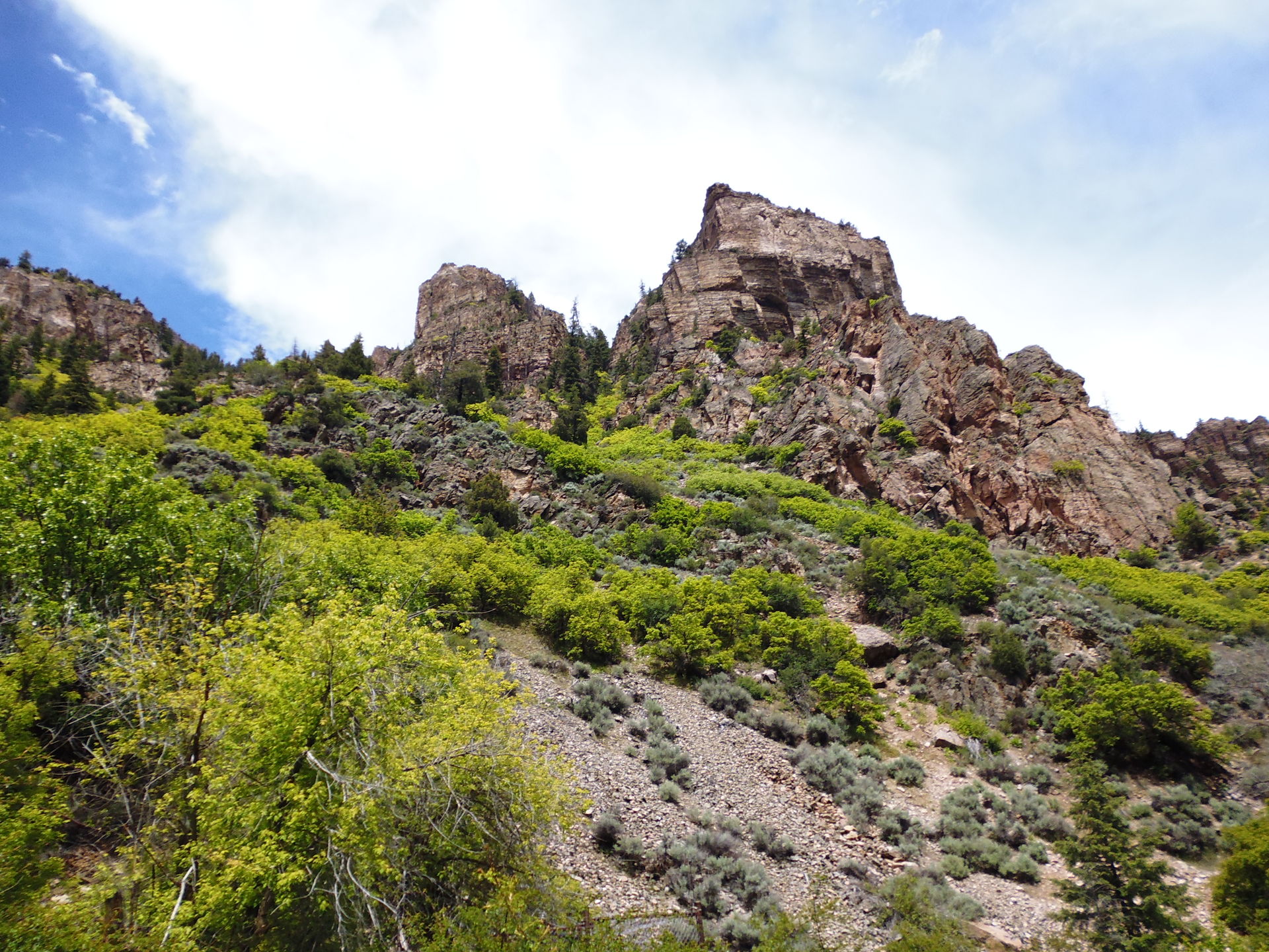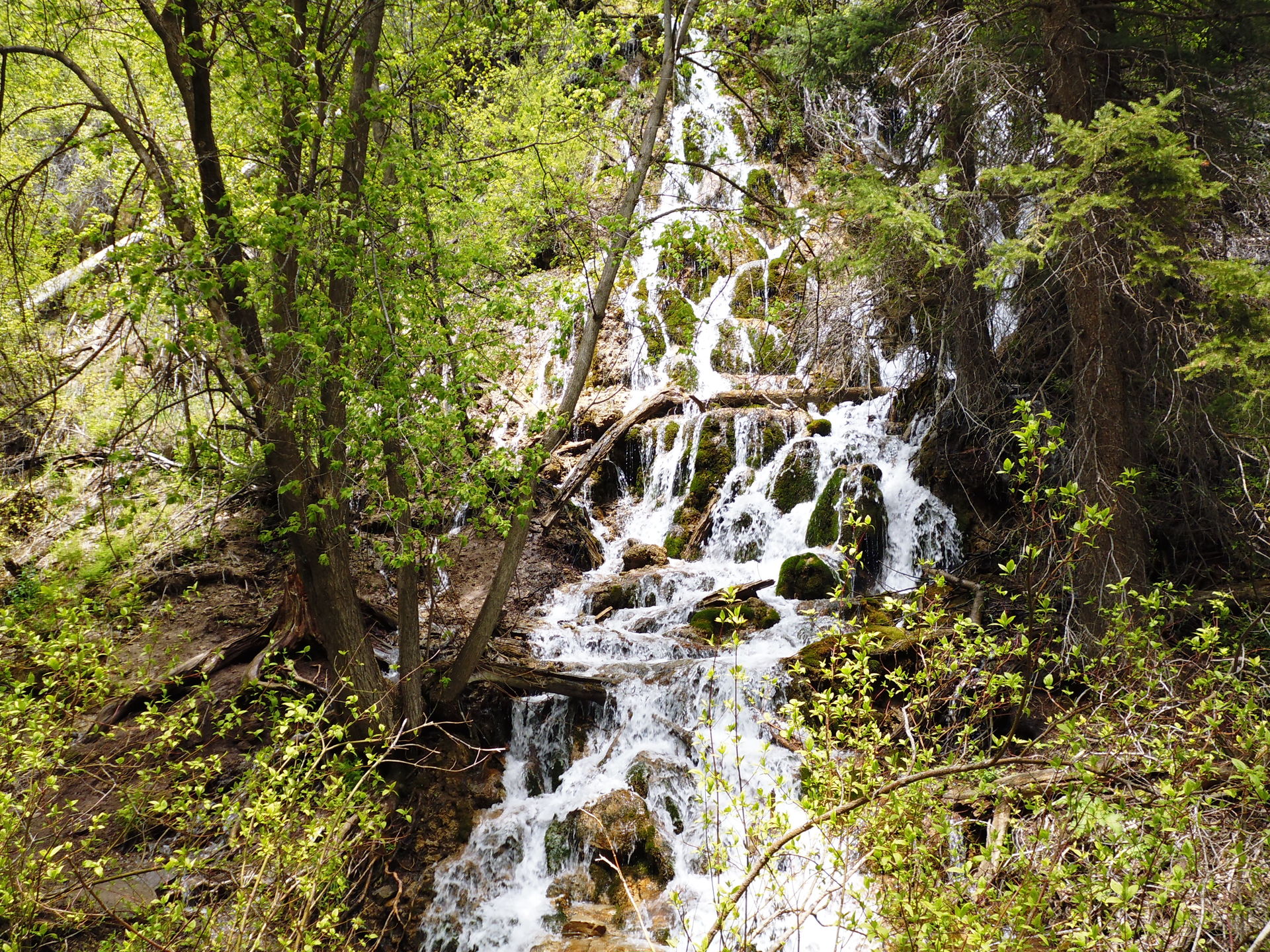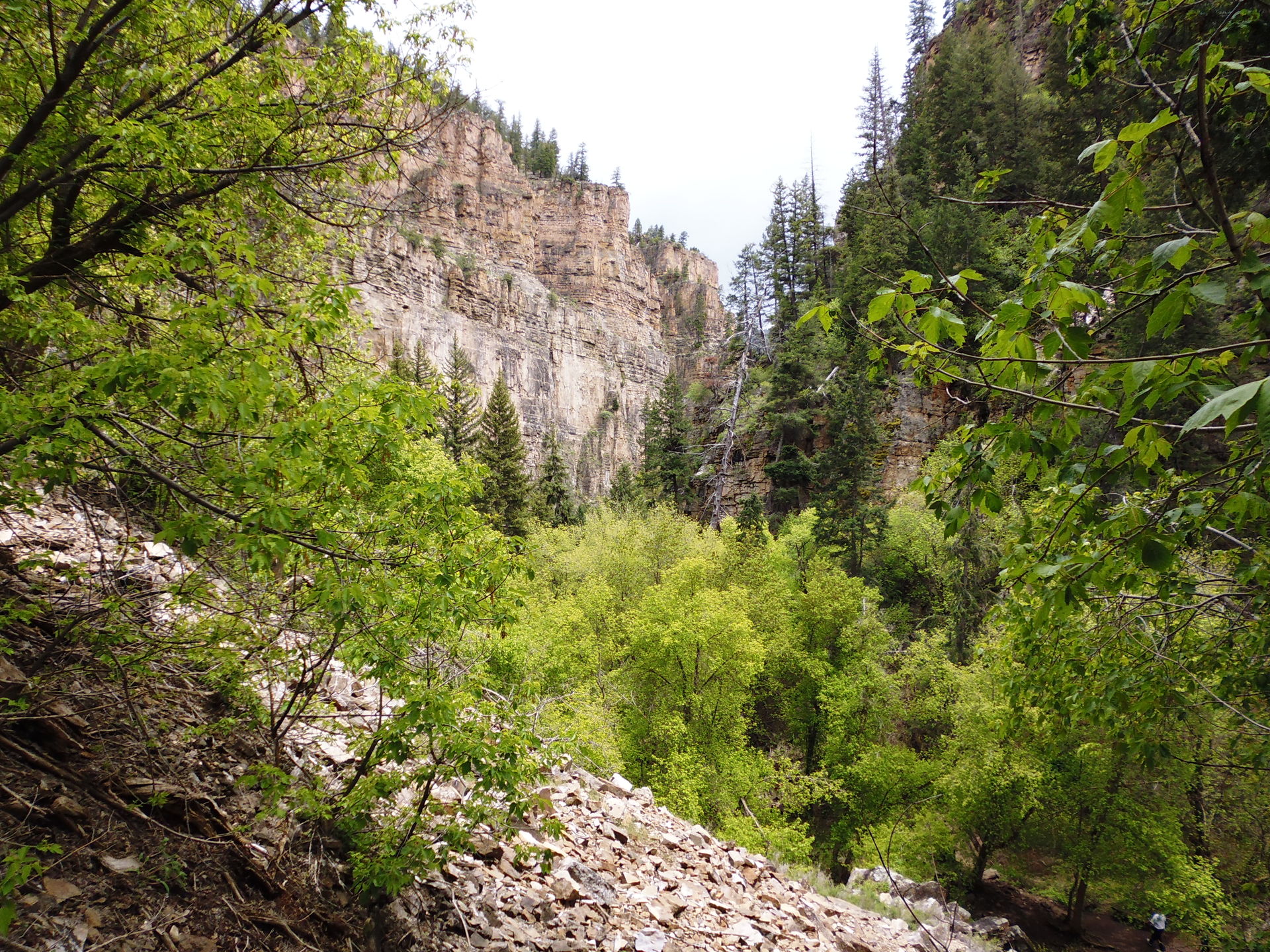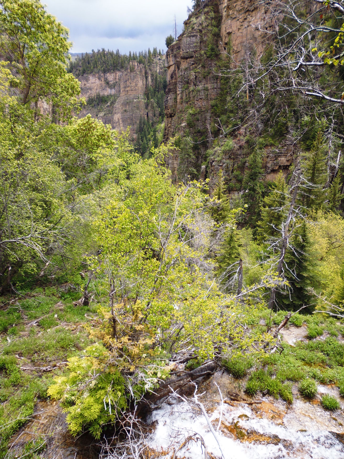 Die Rede ist von der Wanderung zum Hanging Lake, deren Ausgangspunkt knappe elf Kilometer östlich von Glenwood Springs liegt. Die Anfahrt wurde zu einer leichten Geduldsprobe, da wegen Belagsarbeiten auf der Interstate für volle 20 Minuten einfach auf beiden Spuren der Verkehr angehalten wurde und von meiner Position aus nicht ersichtlich war, weshalb hier alles stillsteht. Bald war dann endlich der Parkplatz an der Ausfahrt 125 erreicht, der übrigens nur von Westen her erreicht werden kann - fährt man von Denver her an ist ein laut Google Maps zehnminütiger U-Turn-Umweg bis zur Ausfahrt 121 nötig. Zu meinem Erstaunen war das Areal fast bis auf den letzten Platz besetzt - an einem Spätfrühlings-Werktag! Da will man sich gar nicht vorstellen, wie es hier zur Haupt-Wandersaison oder an Wochenenden aussieht.