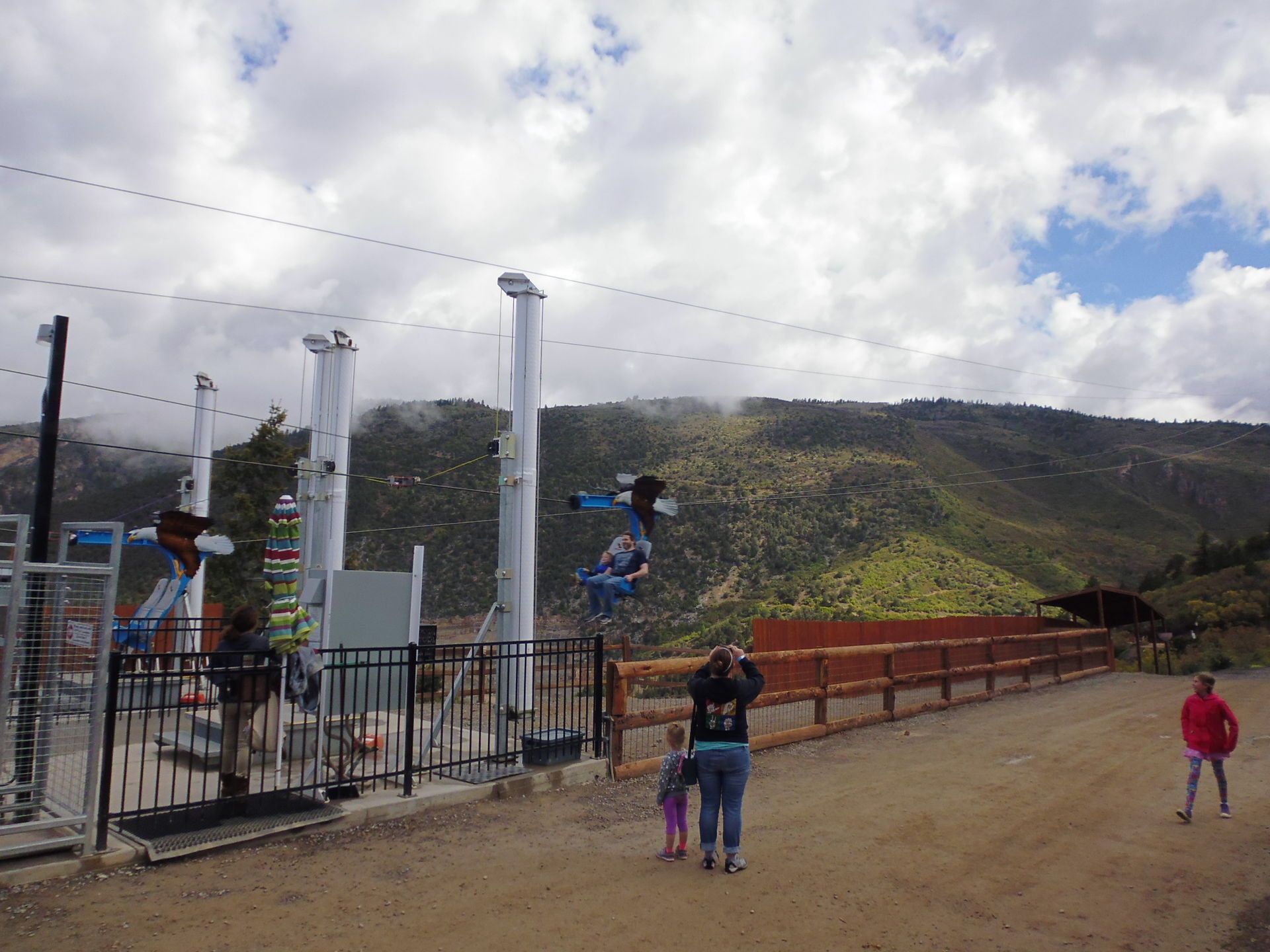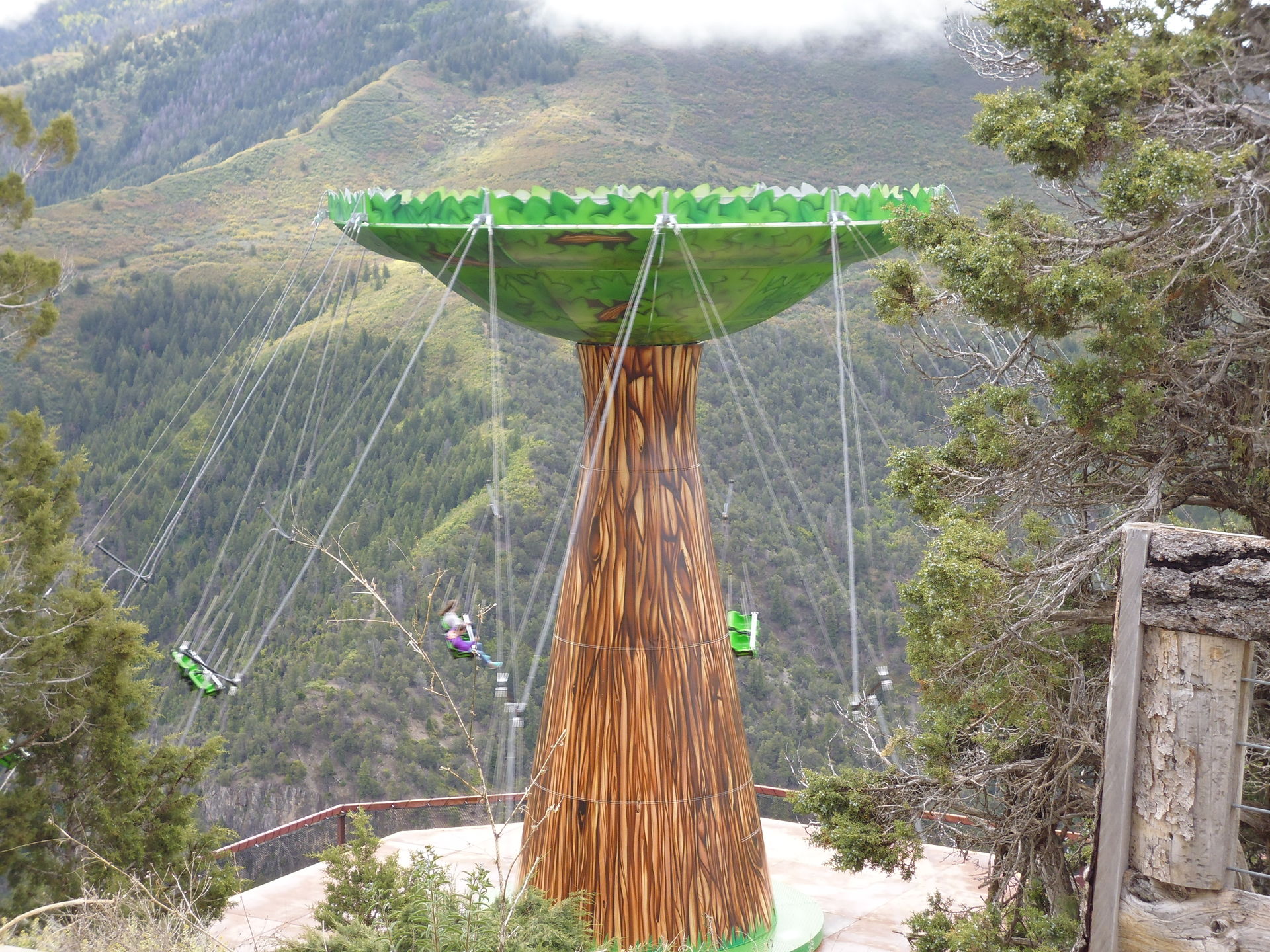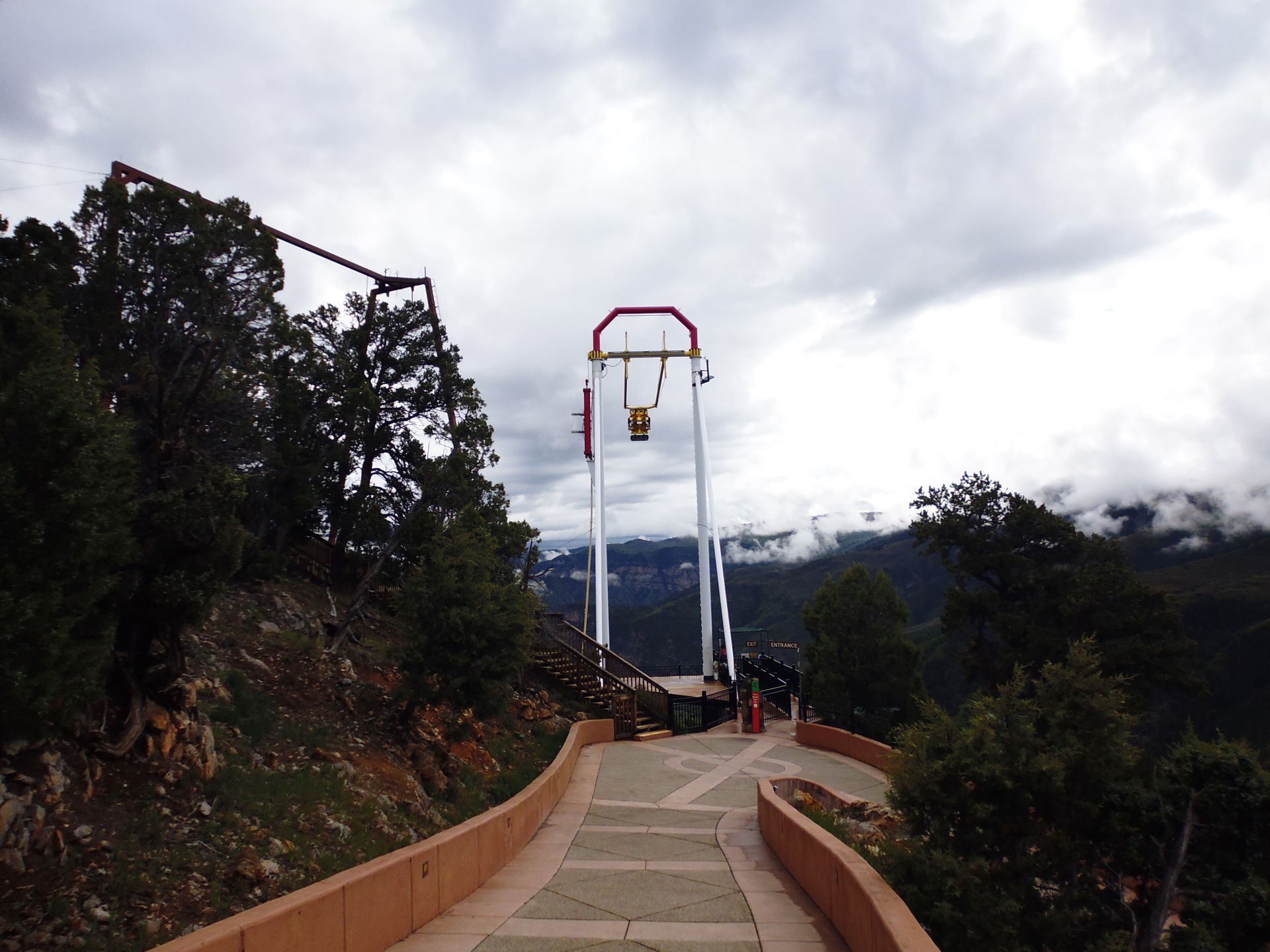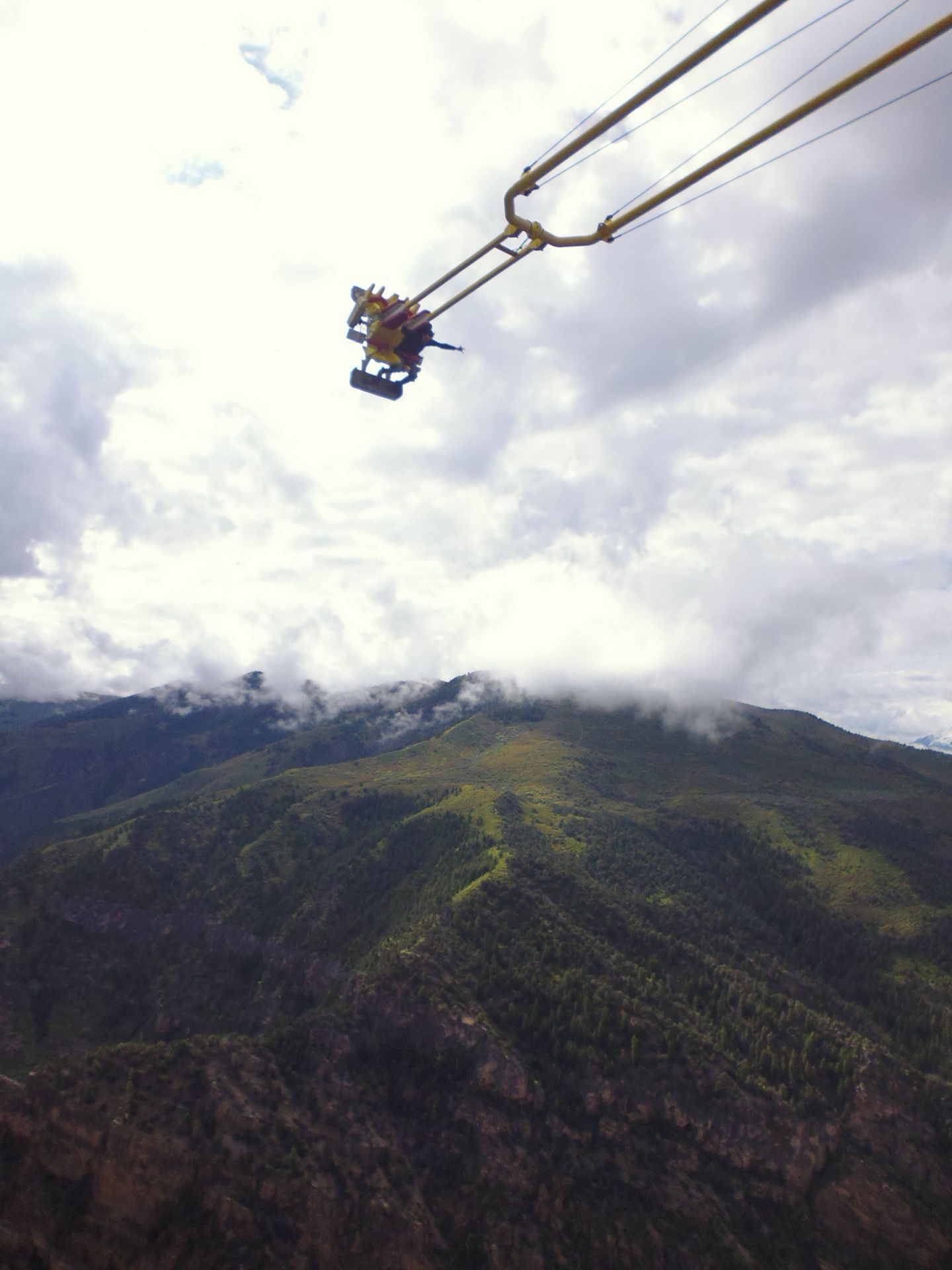 ganz Dummes: man blickt nach vorn - auf das kilometerweit reichende Panorama zum Glenwood Canyon!!! Und bevor man sich der Überwältigung überhaupt bewusst ist, schwingt die Schaukel mit der Höchstgeschwindigkeit von 80 km/h