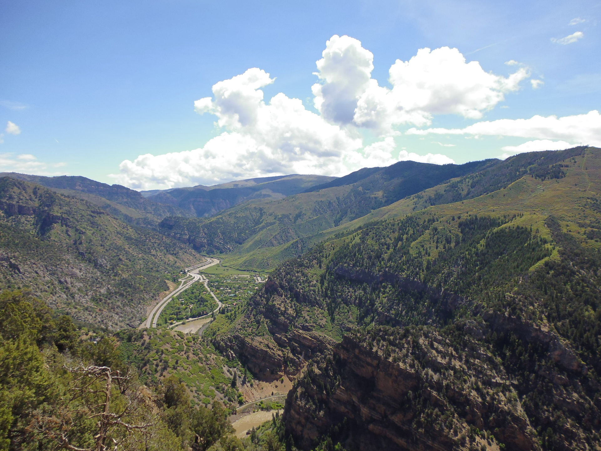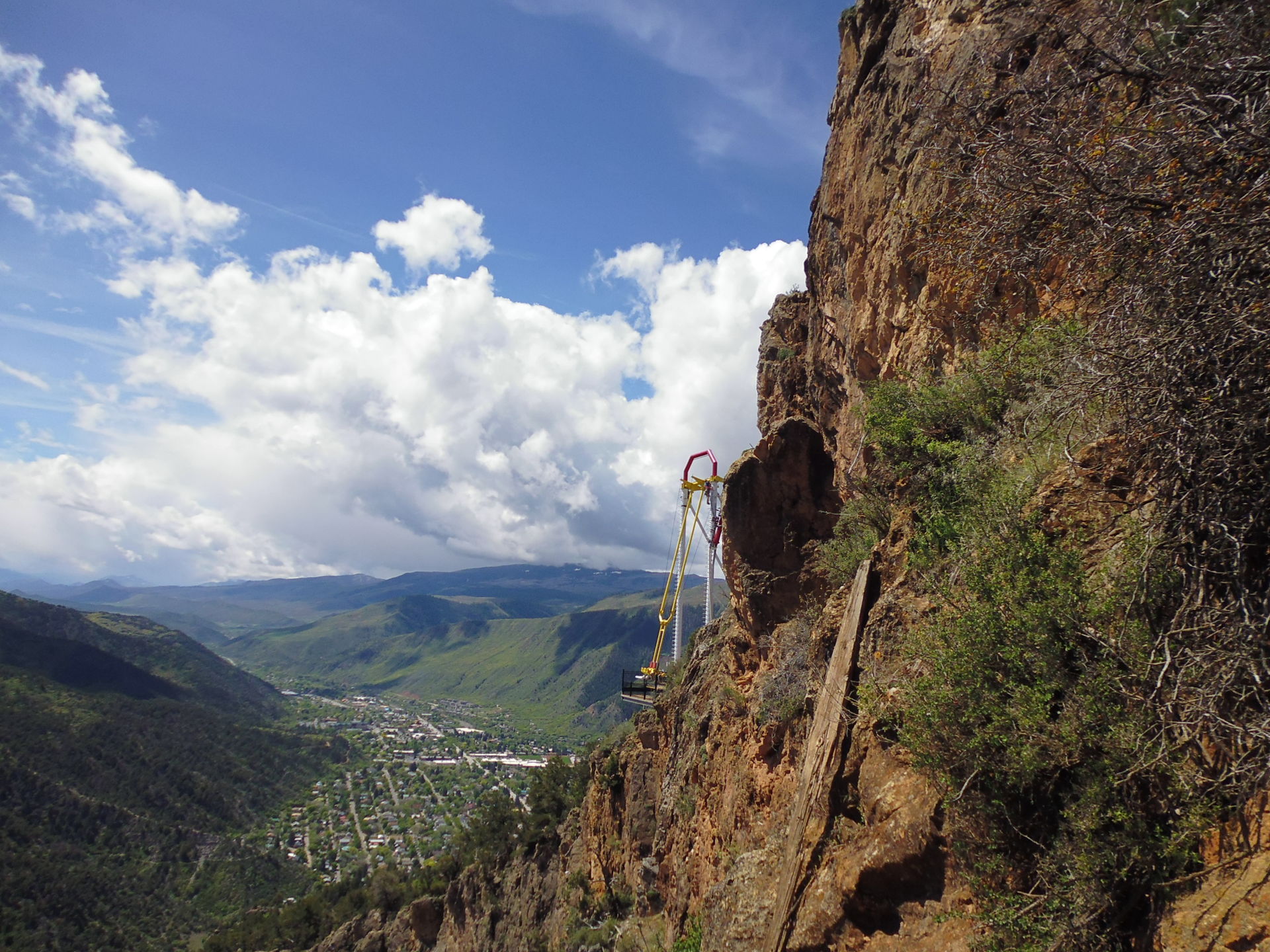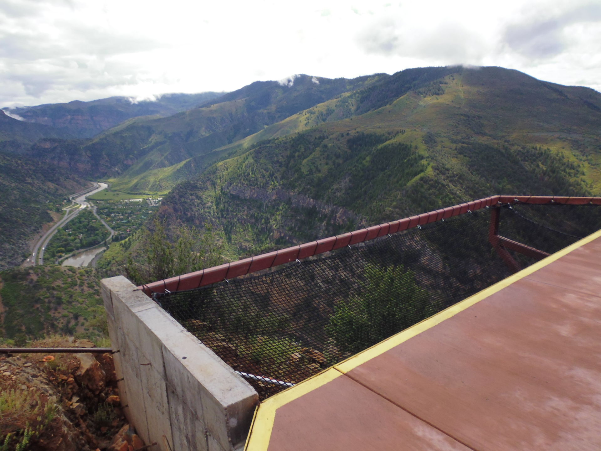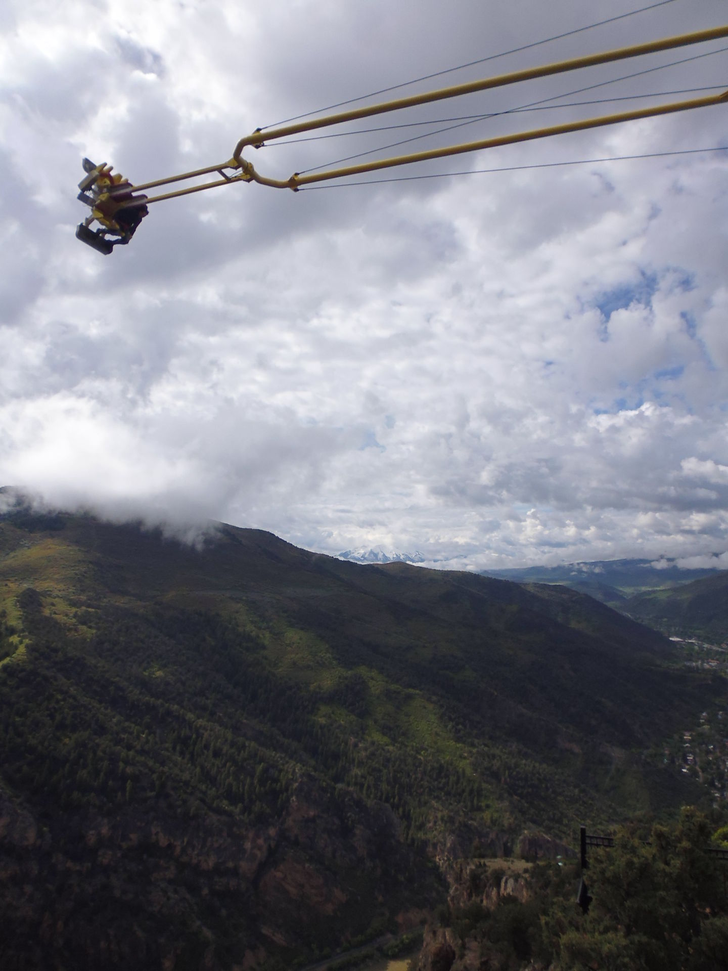 ganz Dummes: man blickt nach vorn - auf das kilometerweit reichende Panorama zum Glenwood Canyon!!! Und bevor man sich der Überwältigung überhaupt bewusst ist, schwingt die Schaukel mit der Höchstgeschwindigkeit von 80 km/h