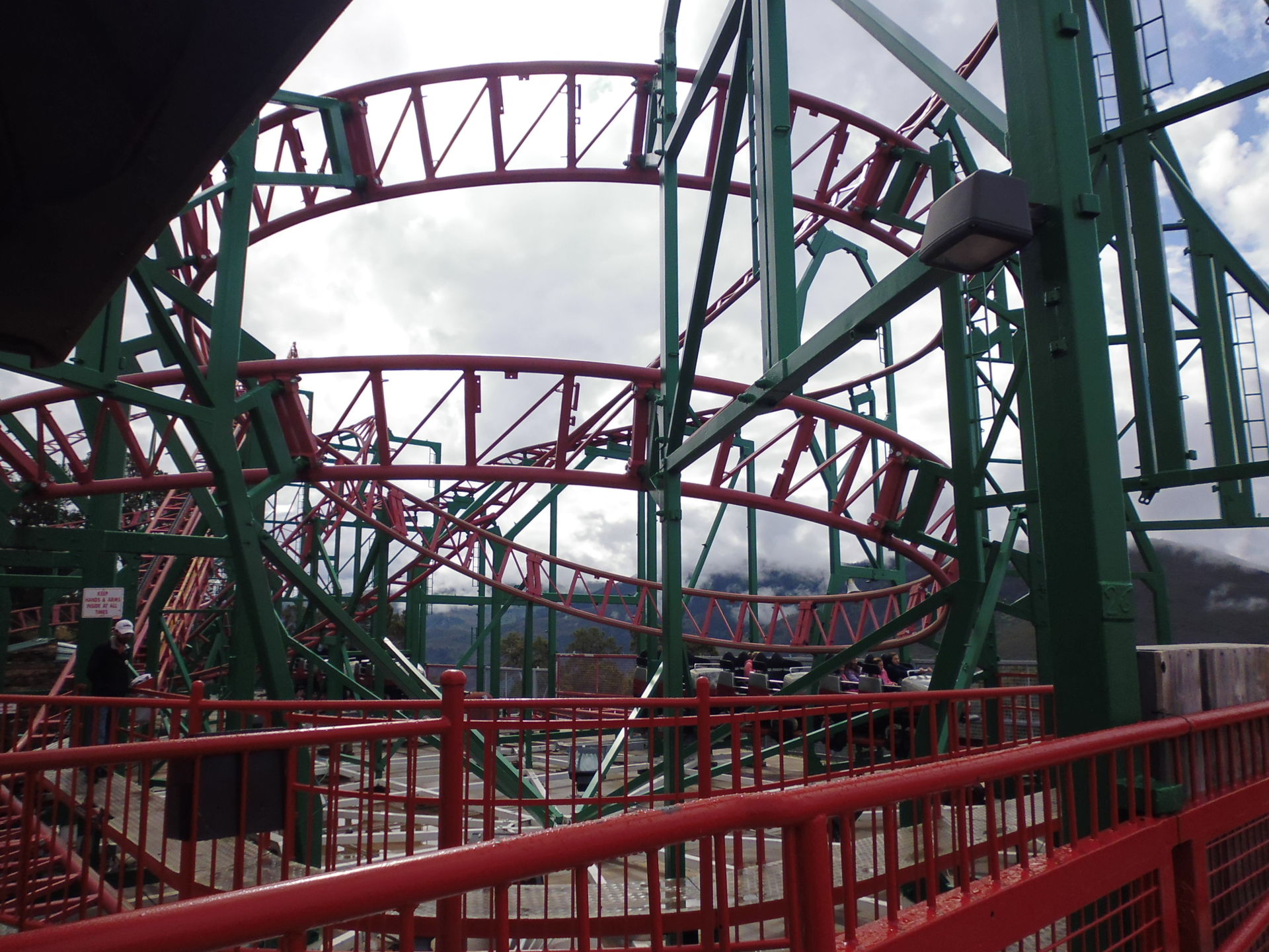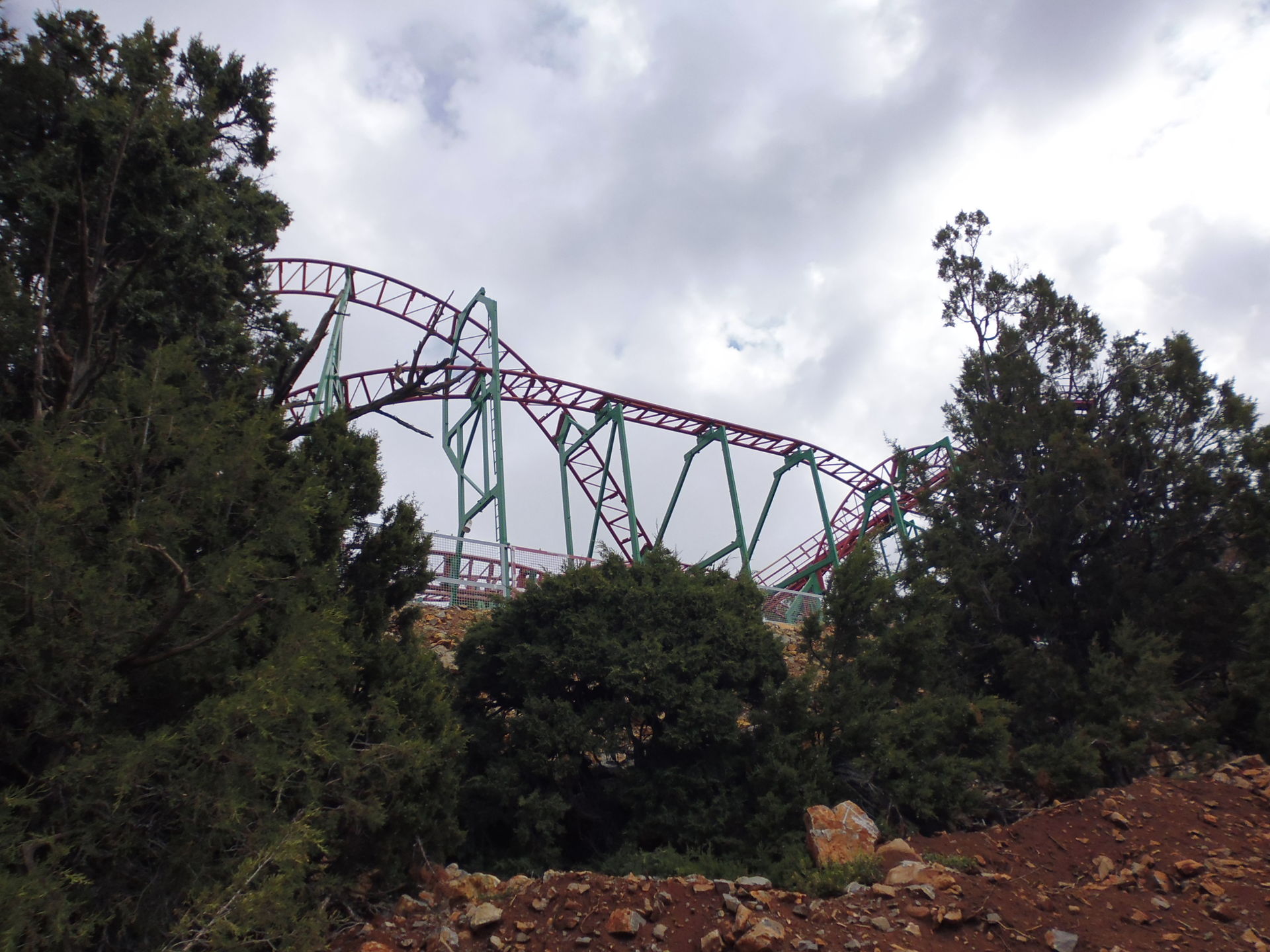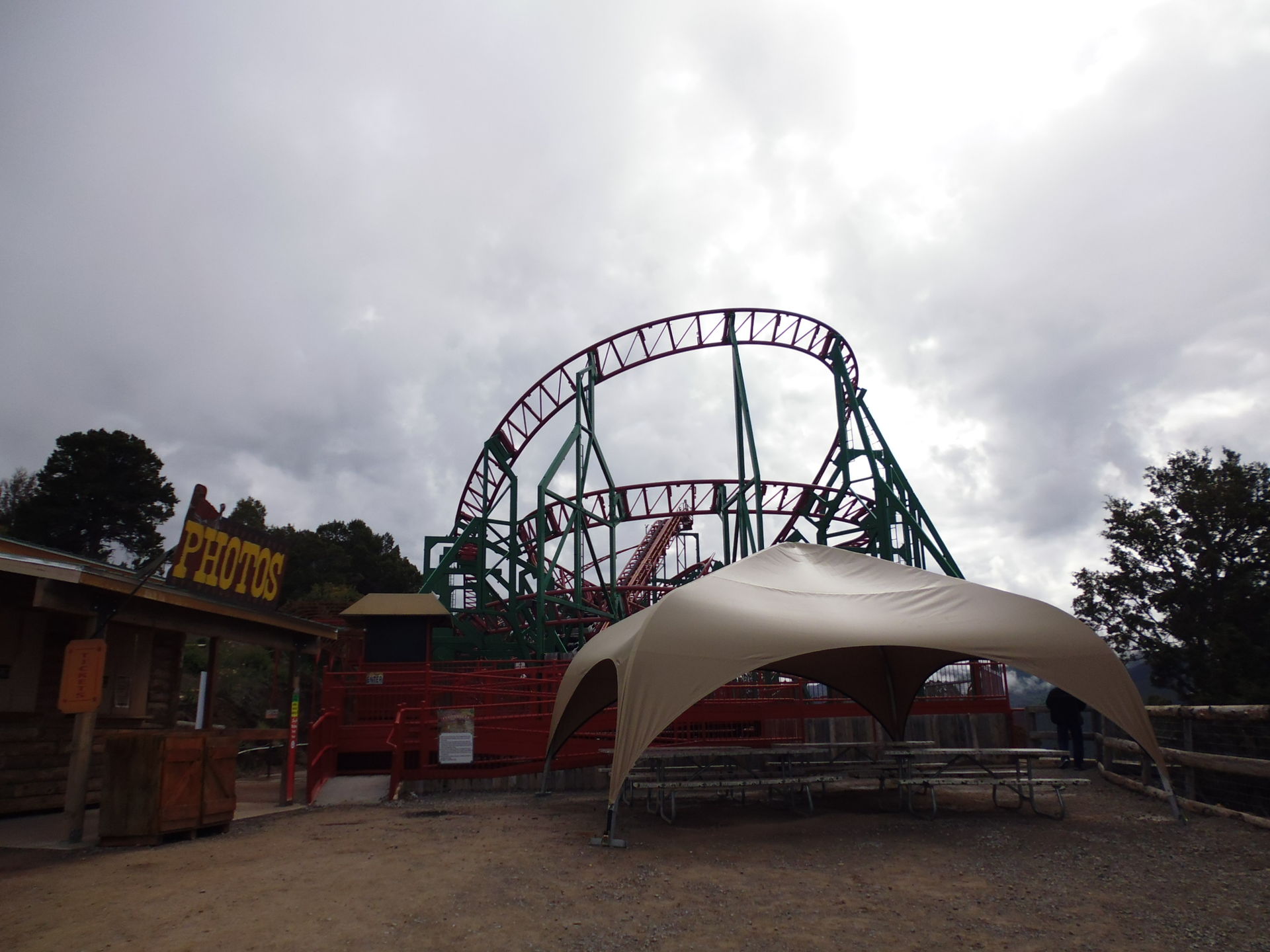 Als nächstes marschierte ich dann wieder hügelabwärts und gelangte zur nächsten höhenlagenausnutzenden Attraktion: zum Glenwood Canyon Flyer, der zwischen Achterbahn und