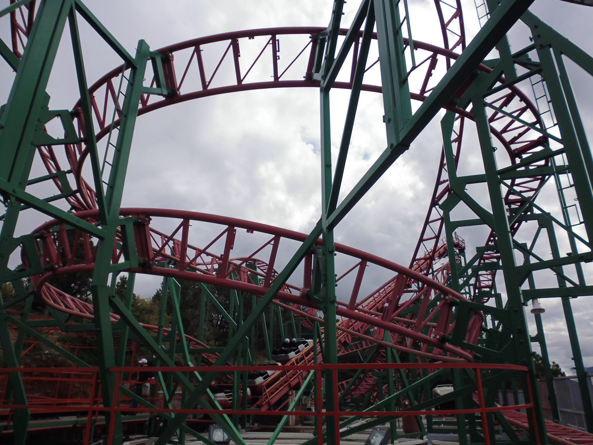 Nach den Schaukelfahrten wackelte ich dann über ein paar Haarnadelkehren zum höchsten Punkt im Park hoch, wo auch schon das nächste Thrill-Leckerli wartete!