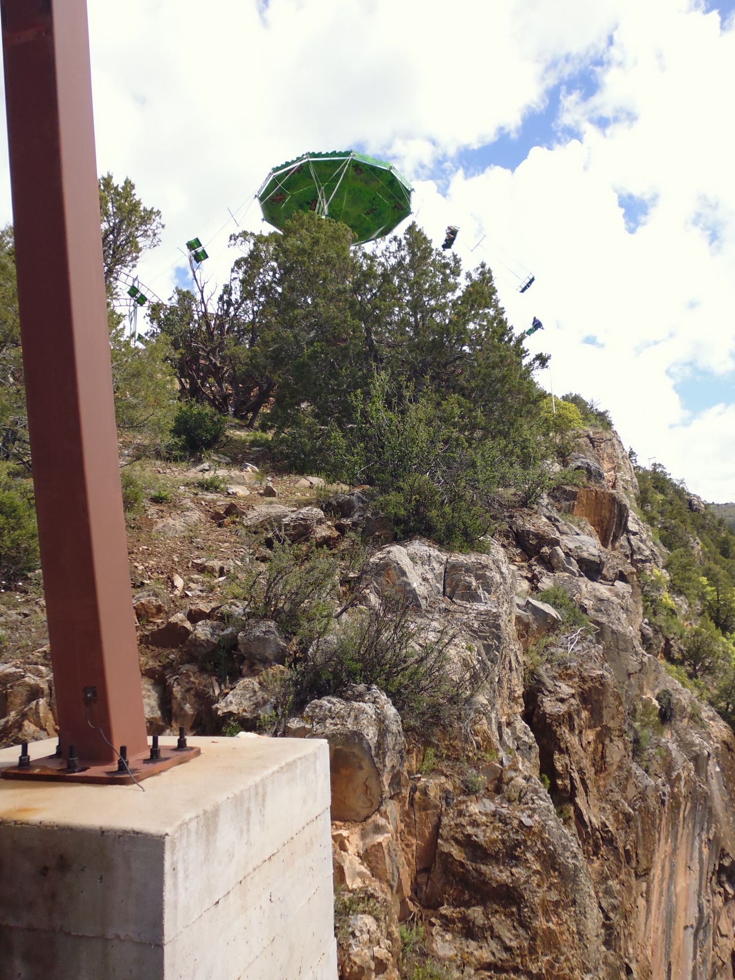 S&S Giant Swing ist ja schon in freizeitparkiger Normalo-Bodenlage ein richtiger Hammer. Aber die Aufwertung, die so ein Ding erhält, wenn es unmittelbar an einen 400 Meter tiefen Abgrund gebaut ist...!