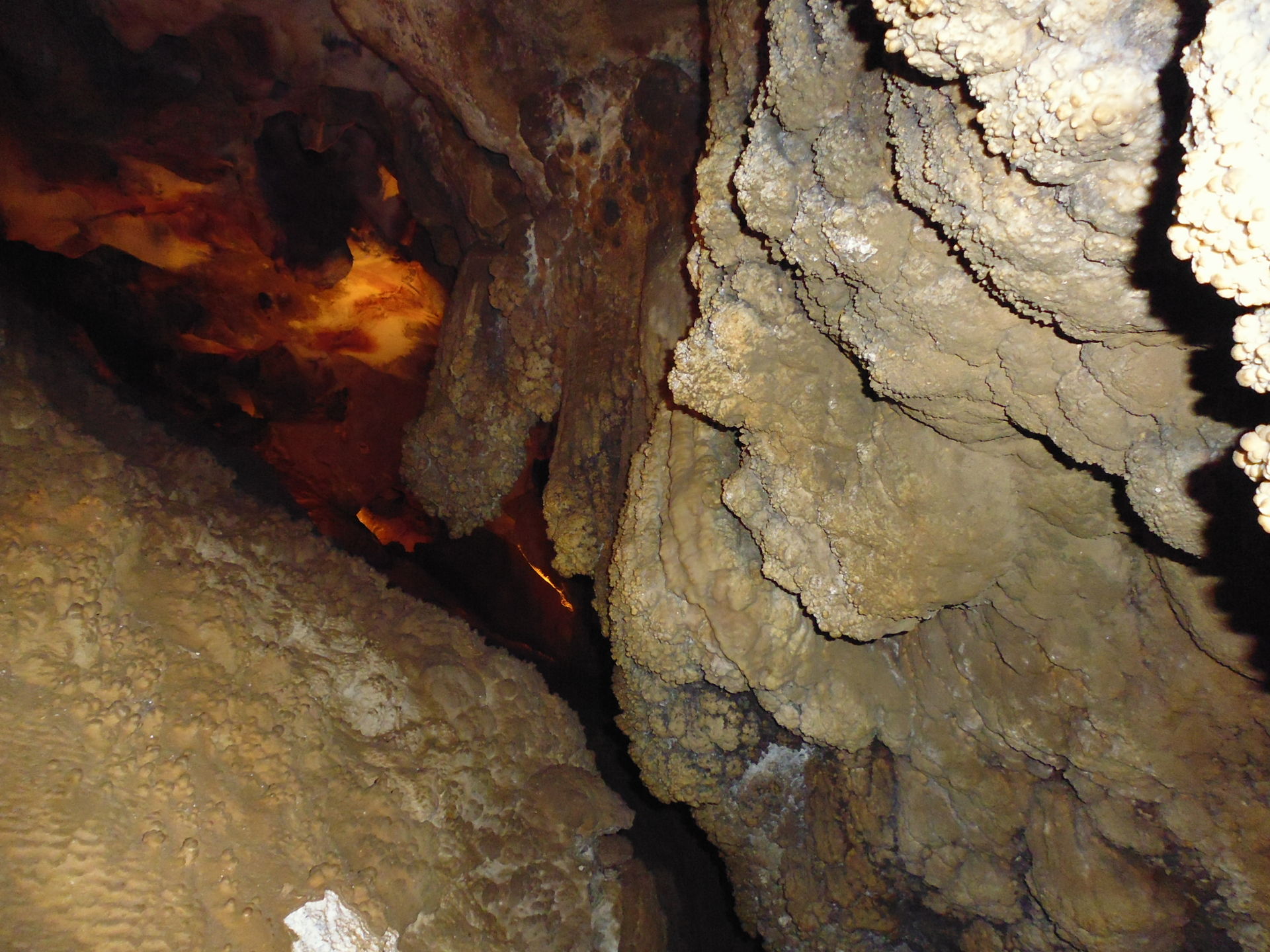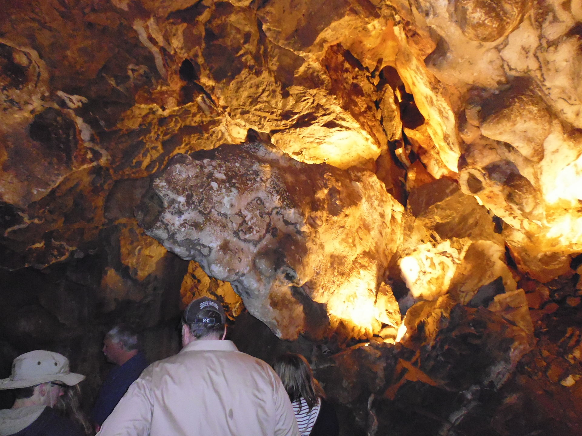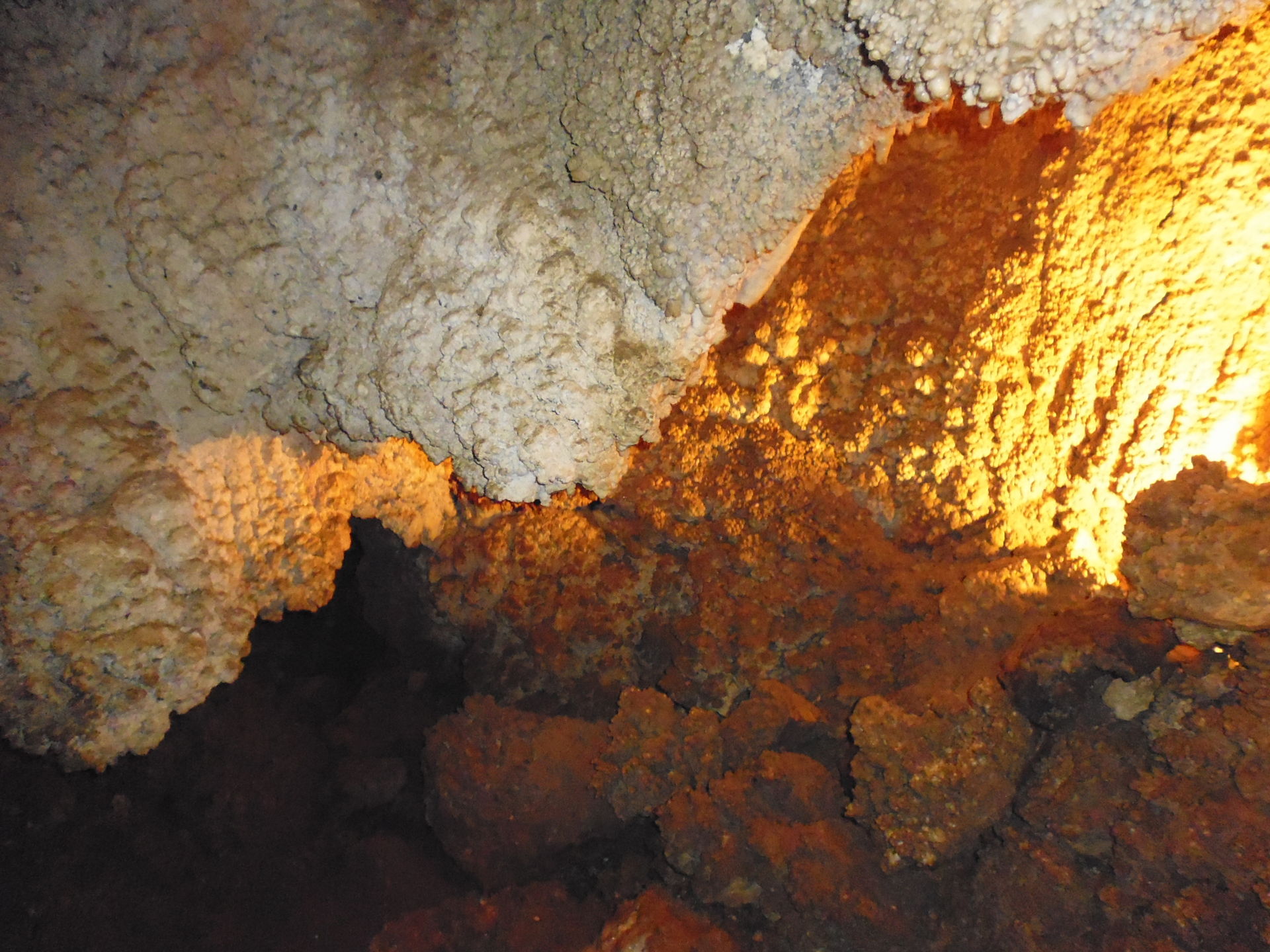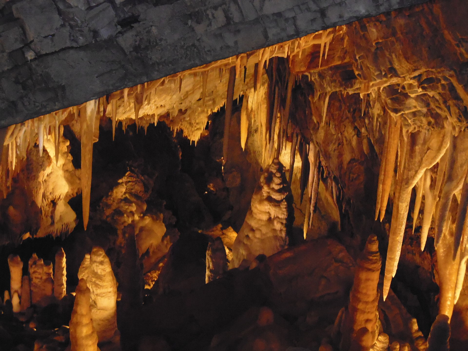 Nach kurzer Begrüssungsrunde und ebensolchem Marsch ins Erdinnere stand man dann auch schon im ersten grösseren Hohlraum, The Barn. Sofort umgibt einen dieser unnachahmlich erdige und felsige Steingeruch und auch die Temperatur bemerkt man: hier ist es das ganze Jahr über etwa 52°F, etwas mehr als 11°C kühl. Nun erzählte der junge Guide anschaulich und ausführlich etwas über die Entstehungs- und Entdeckungsgeschichte von diesem Tropfstein-Teil des noch weitaus komplexeren Höhlensystems. Für meinen Geschmack verwandte er dazu etwas viel Valleyspeak ("kinda like", "like totally" etc. - da hätte man ein gutes Trinkspiel draus machen können