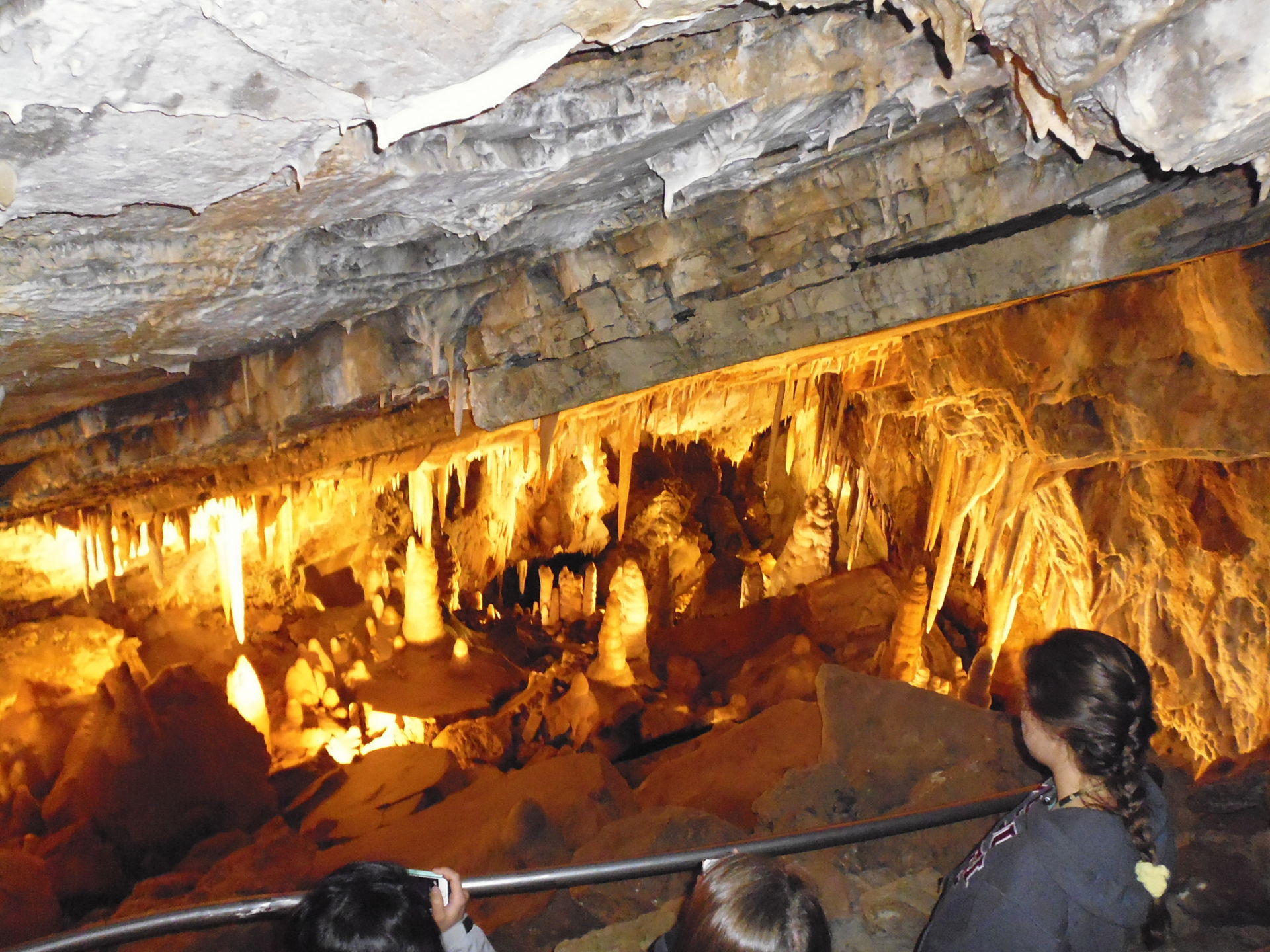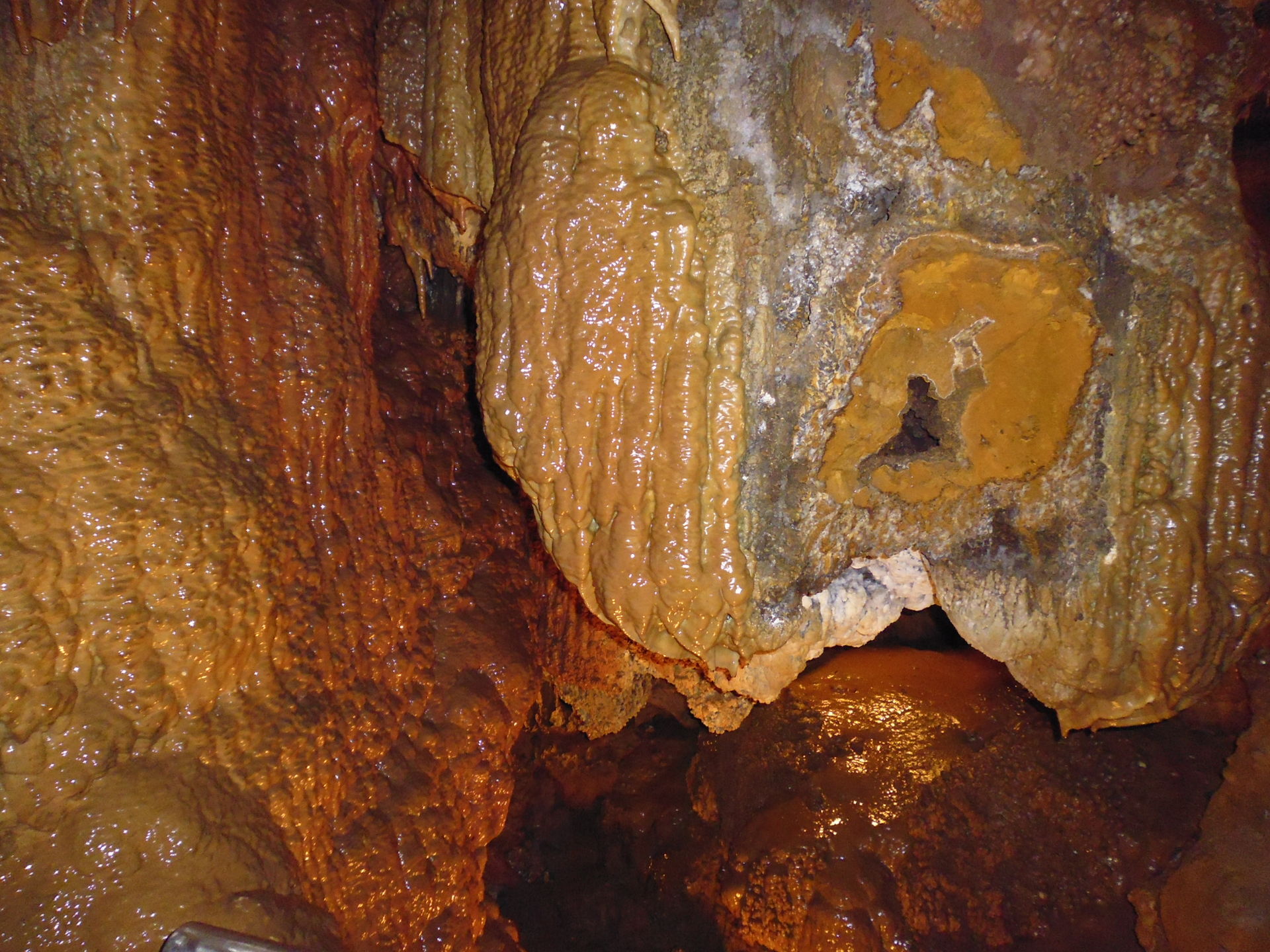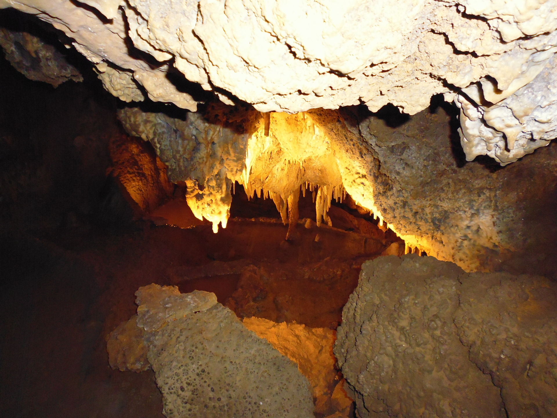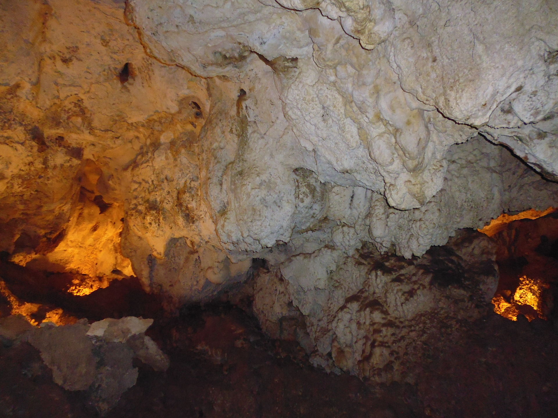 Nach kurzer Begrüssungsrunde und ebensolchem Marsch ins Erdinnere stand man dann auch schon im ersten grösseren Hohlraum, The Barn. Sofort umgibt einen dieser unnachahmlich erdige und felsige Steingeruch und auch die Temperatur bemerkt man: hier ist es das ganze Jahr über etwa 52°F, etwas mehr als 11°C kühl. Nun erzählte der junge Guide anschaulich und ausführlich etwas über die Entstehungs- und Entdeckungsgeschichte von diesem Tropfstein-Teil des noch weitaus komplexeren Höhlensystems. Für meinen Geschmack verwandte er dazu etwas viel Valleyspeak ("kinda like", "like totally" etc. - da hätte man ein gutes Trinkspiel draus machen können