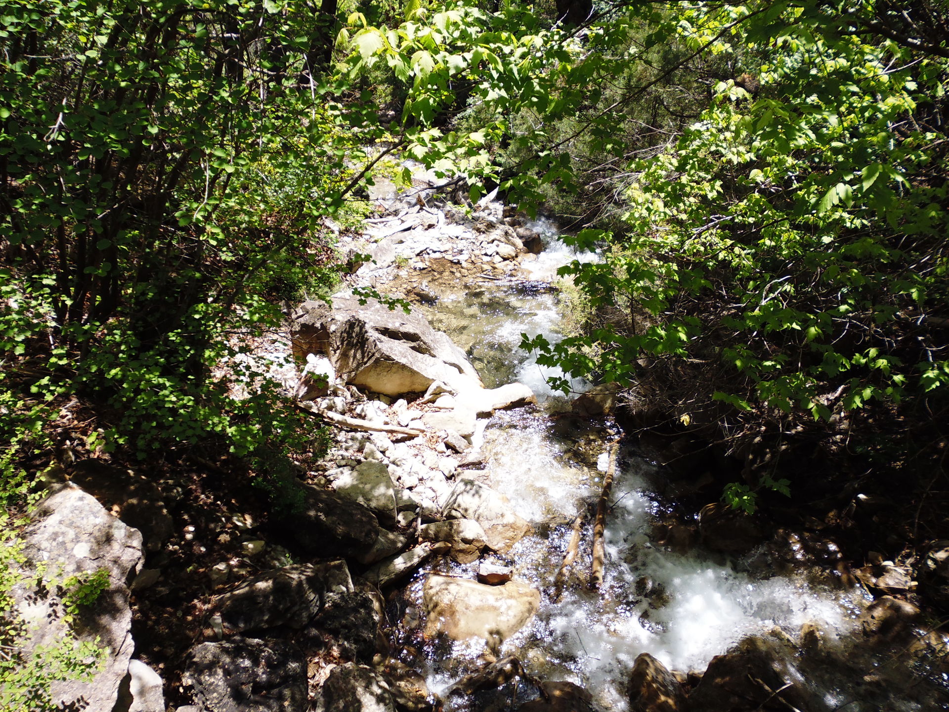 Die sich beim Aufstieg darbietende Szenerie ist einfach malerisch: der rauschende Bach, kleine Wasserfälle, dichter Laubwald, riesige Feldwände... Einfach schön! Zwar ist hie und da doch etwas Trittsicherheit auf dem oft nur aus einigen Felsbrocken bestehenden Pfad und auch gute Kondition gefragt - selbst bei angenehmen 20°C und Dauerschatten kommt man aufgrund der Feuchtigkeit und der Windstille ziemlich rasch ins Schwitzen, so kontinuierlich und steil steigt der Weg hier immer weiter an. Besonders im letzten Drittel wird es manchmal so steil, dass man sich an Ästen und Felsen festhalten muss - und durch ein paar glitschige, durch den Regen der Vornacht verursachte Matschstellen wird es auch nicht einfacher.
