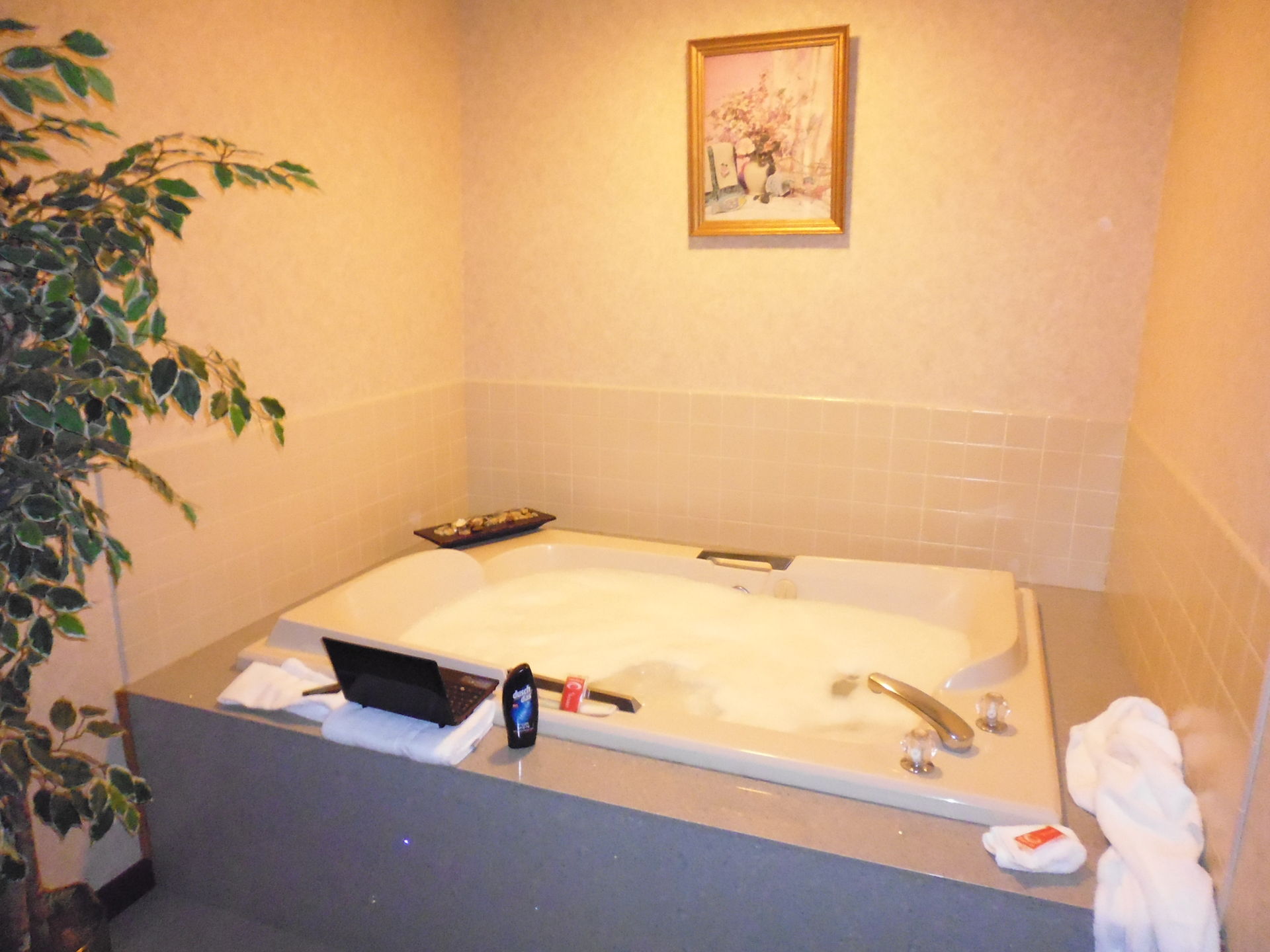 Vor Ort dann eine sehr freudige Überraschung: ich hatte ein Zimmer mit Mikrowelle und Kühlschrank gebucht, was aber leider nicht mehr verfügbar war. Und daher wurde ich gratis auf eine ausgesprochen grosszügige Jacuzzi-Suite geupgradet! Nach kurzer Essensbeschaffung bei Sonic Drive-in und Walmart im Ort liess ich es mir natürlich nicht nehmen, hier reinzusteigen und mir Beine und Rücken umsprudeln zu lassen - nach der Wanderung genau das Richtige!