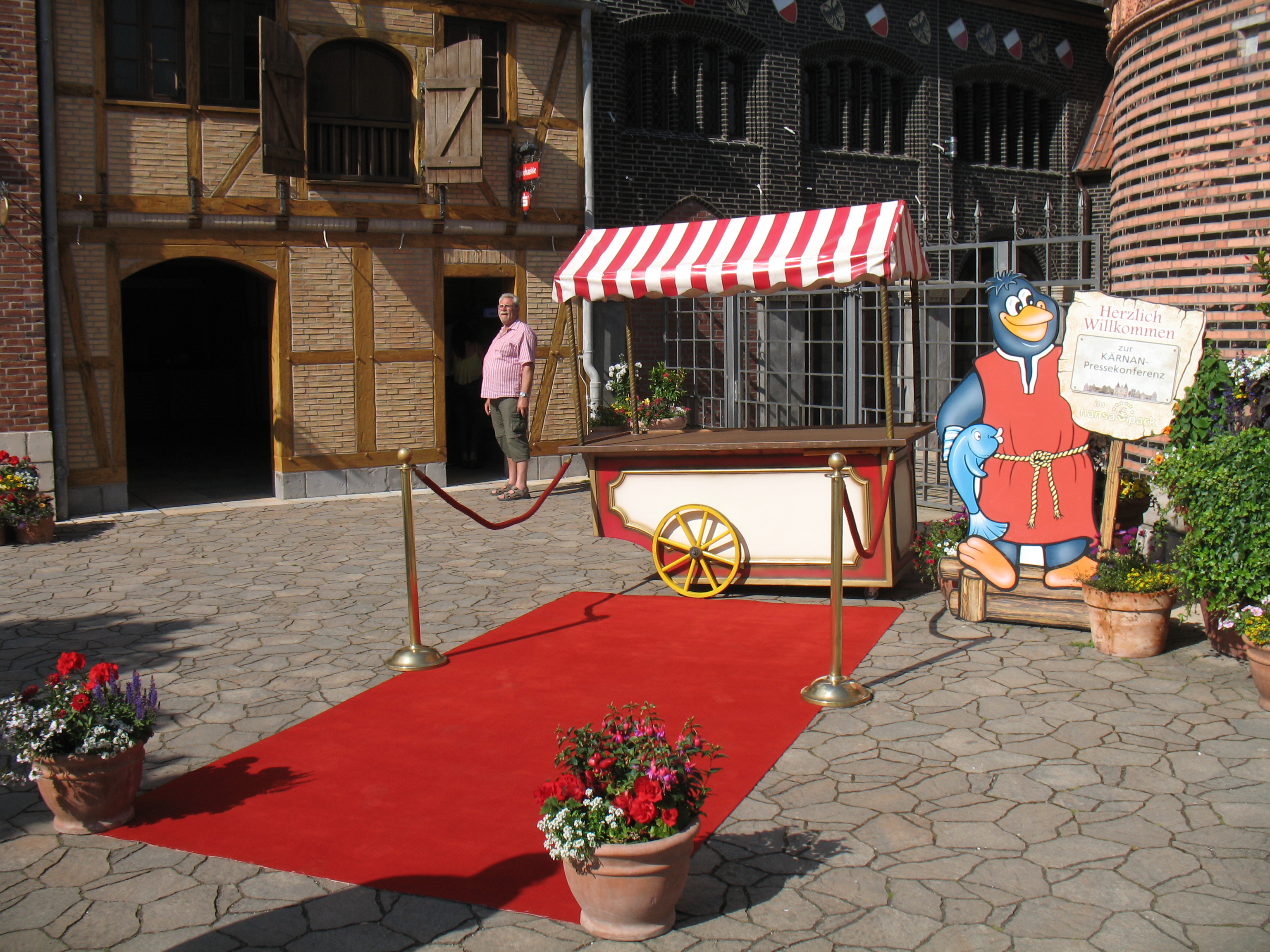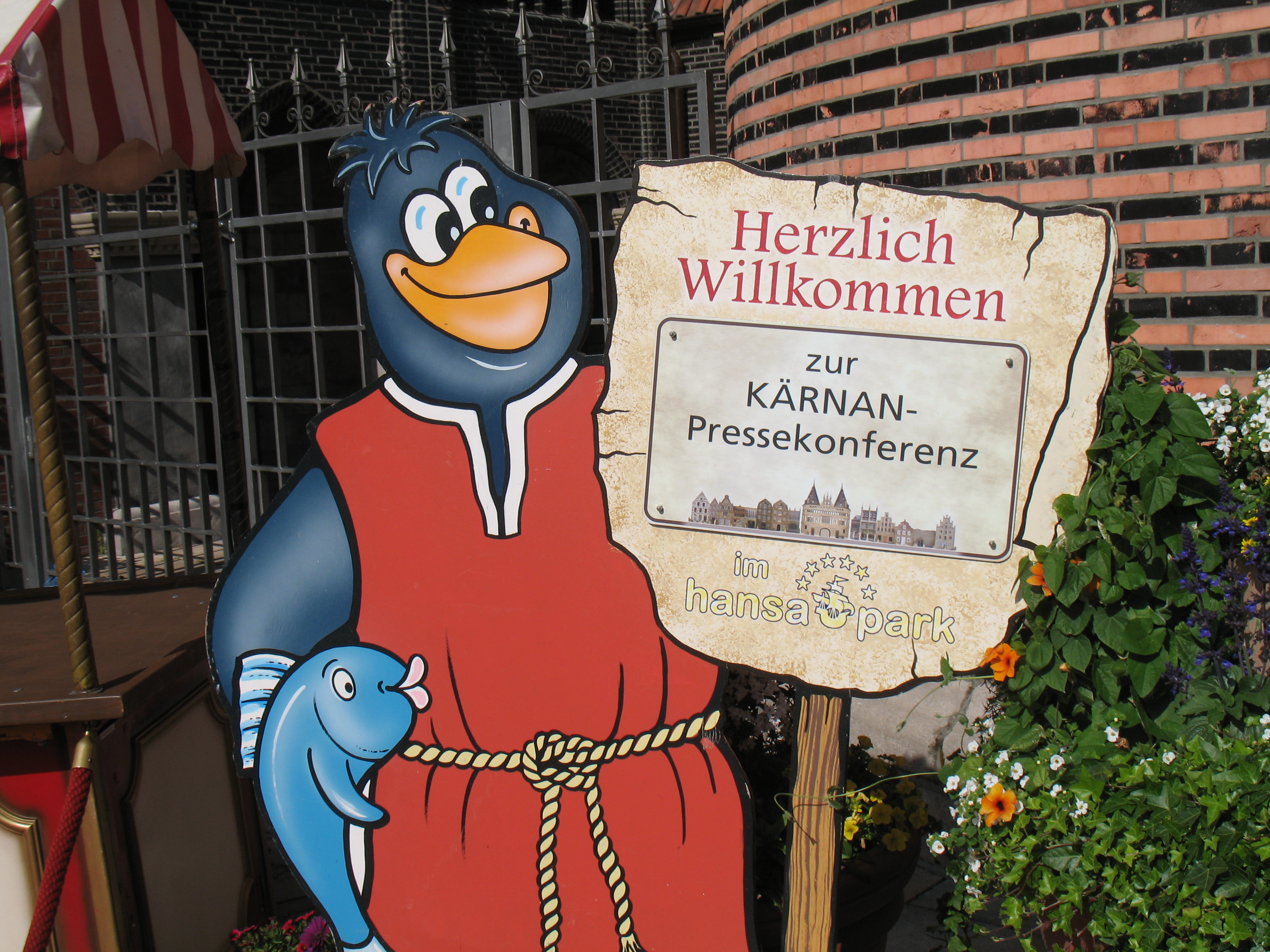 Um kurz vor 18:00 Uhr began der "Check In" vor dem Eingang des Hansa-Parks. Für alle geladenen Gäste war der "rote Teppich" ausgerollt vor dem Anmeldestand, an dem man sein Schlüsselband mit der Authorisierungs- und Erkennungsmarke bekam, auf dem der Name und Medientitel stand.