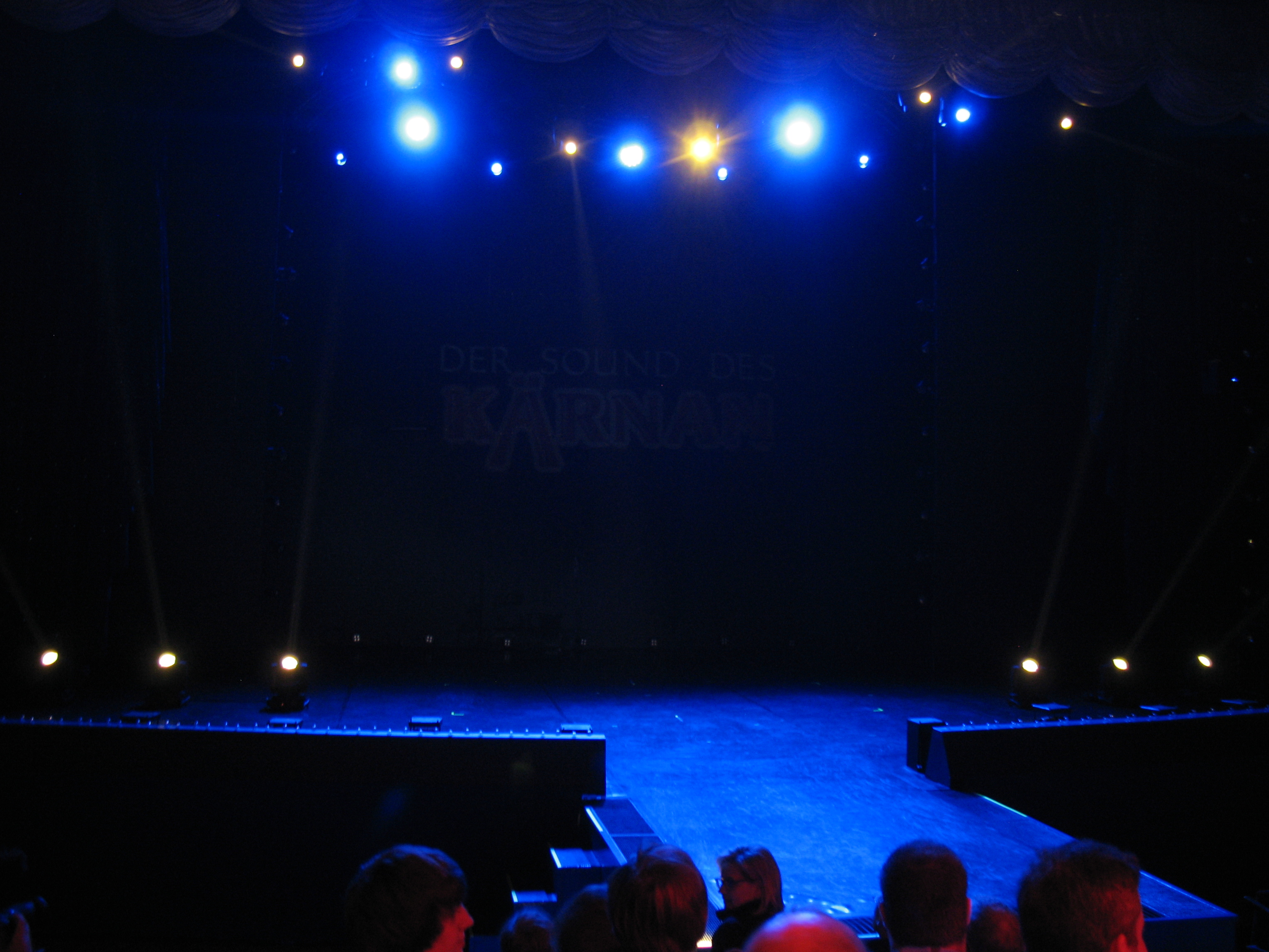 Dort erwartete uns eine in blau gehaltene Bühne und im Hintergrund das projezierte Kärnan-Logo.