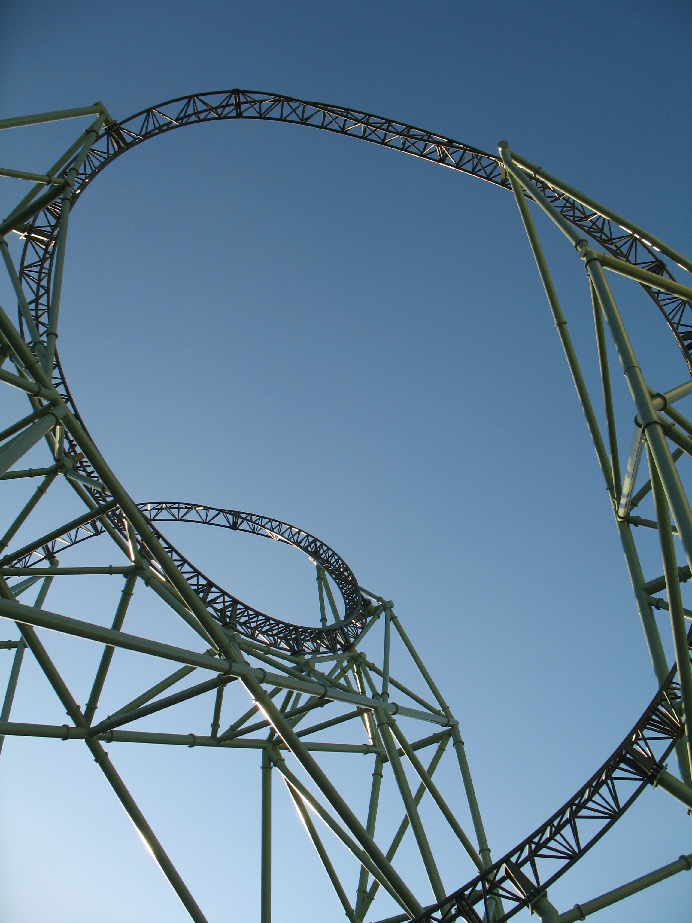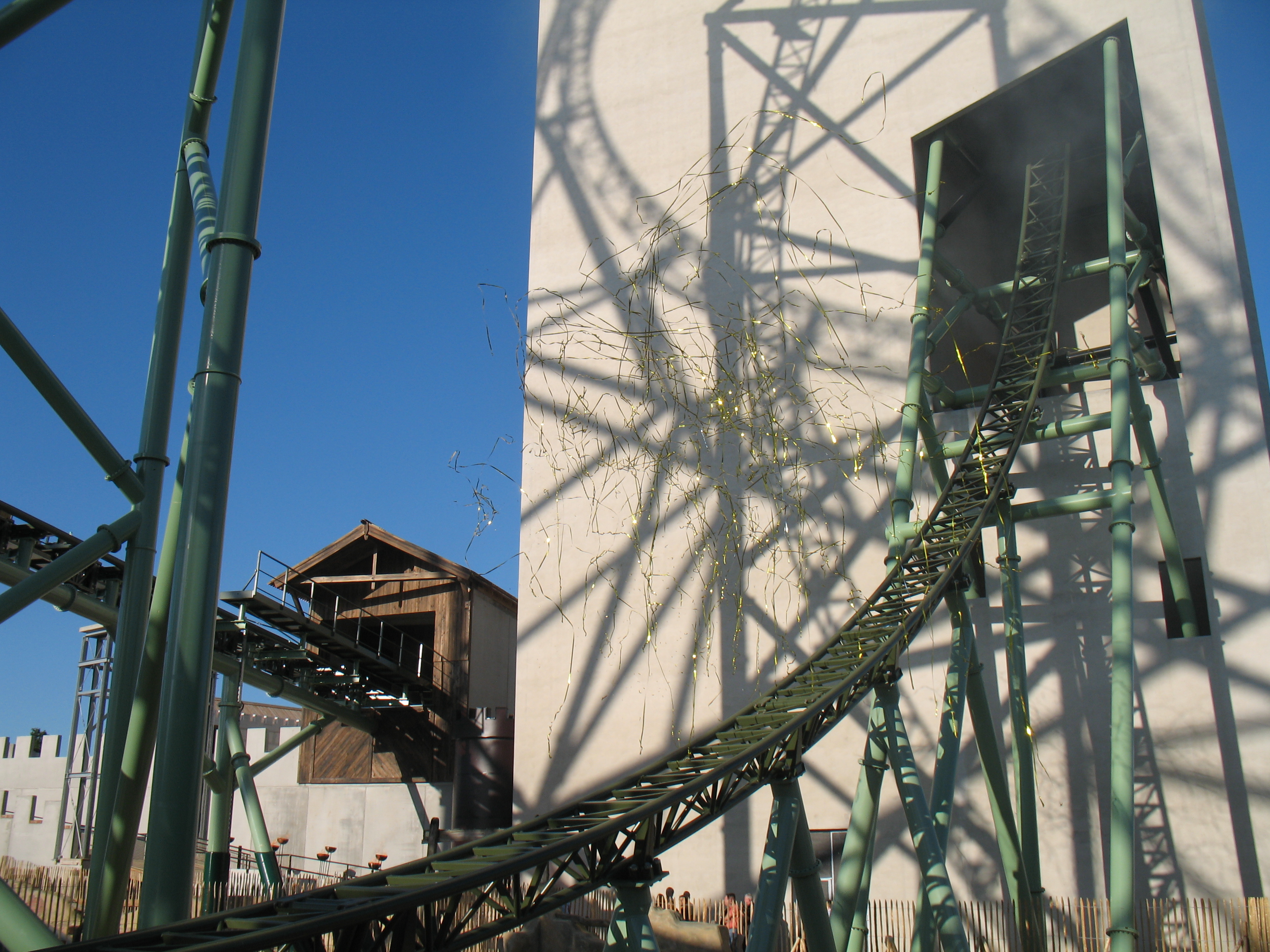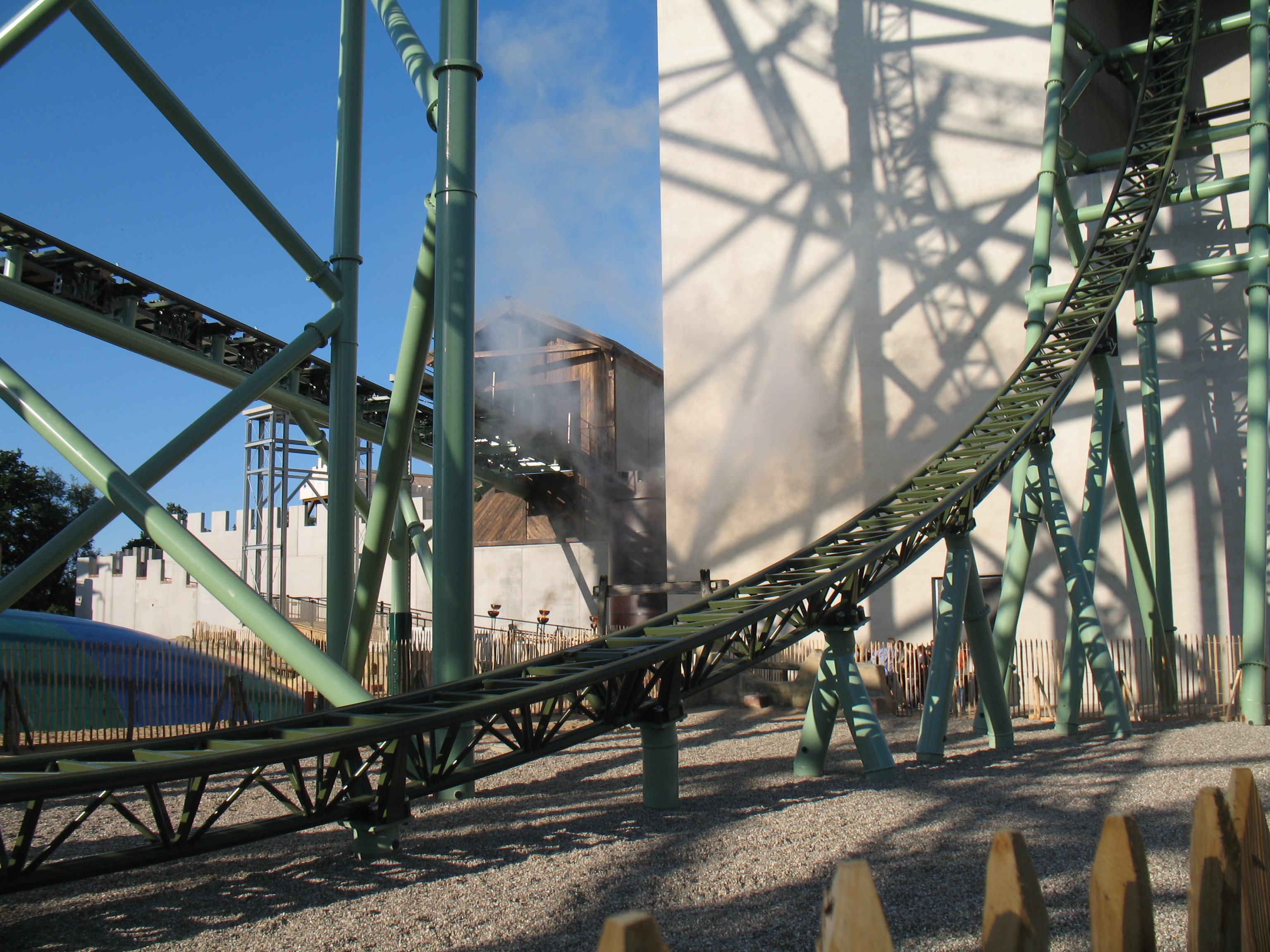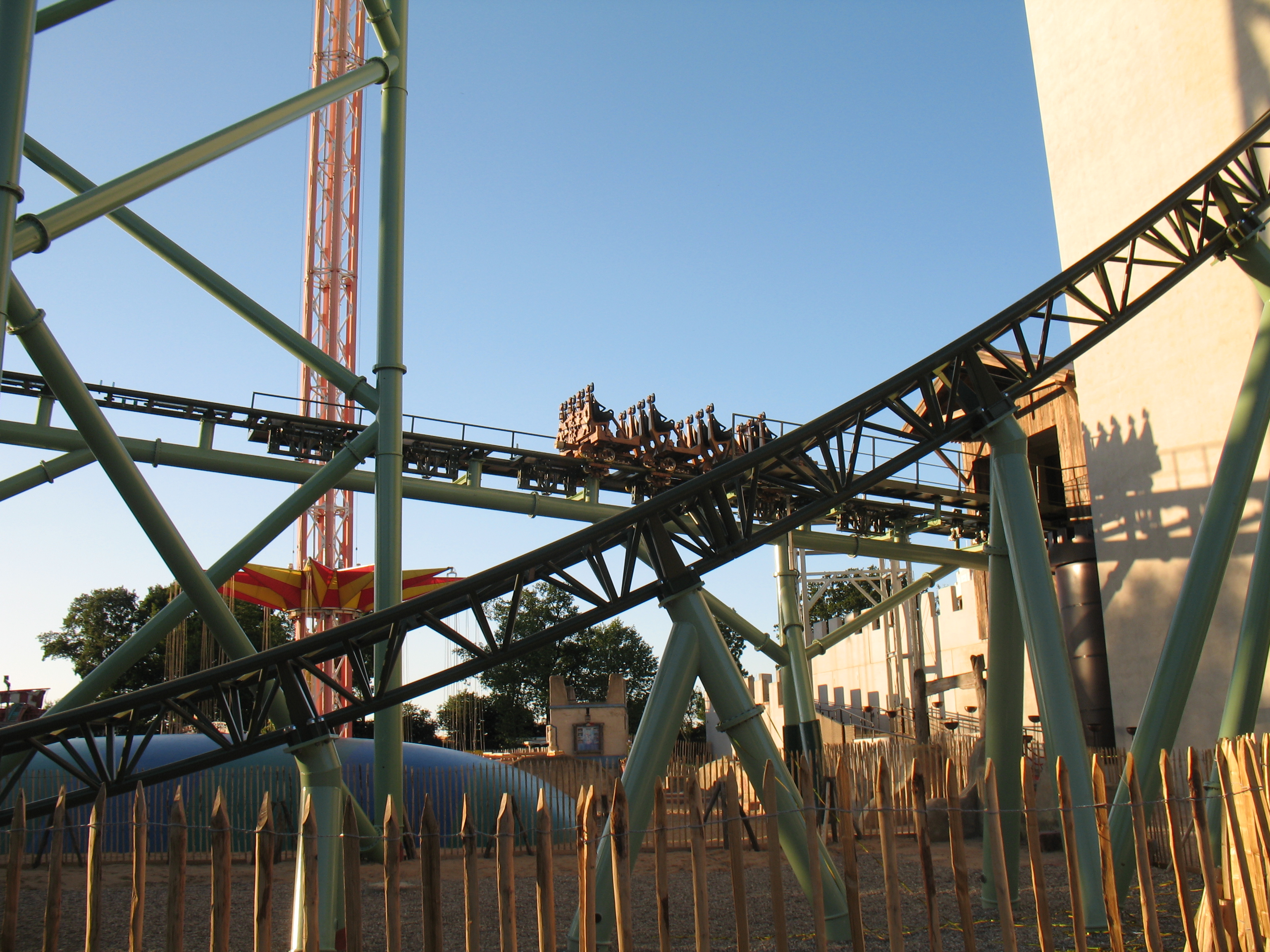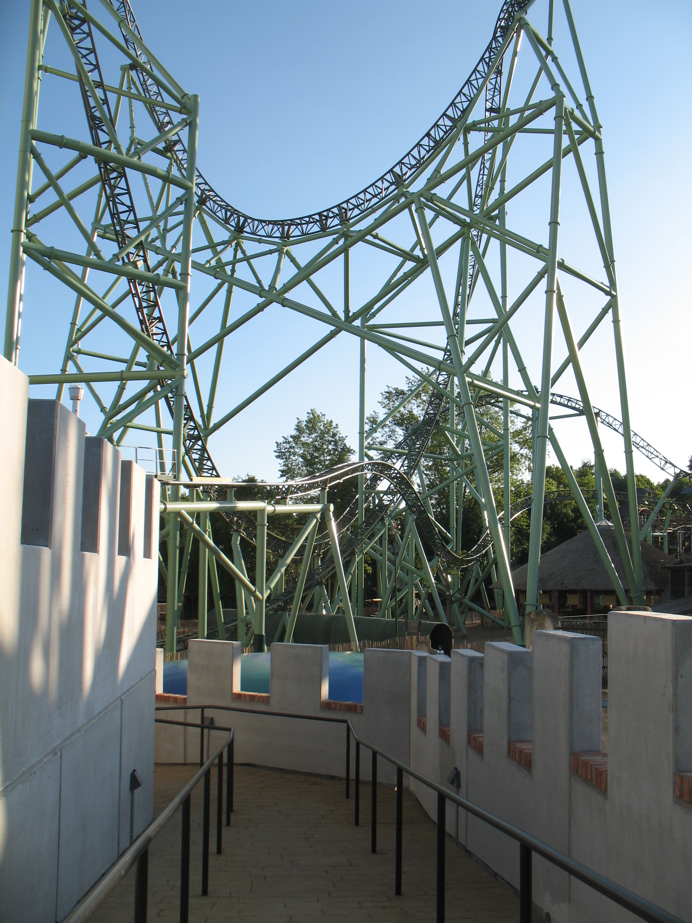 Heartline Roll, die ordentlich Hangtime bietet. Sicher nicht der Geschmack von jedem und nicht mit der Geschwindigkleit von Blue Fire zu vergleichen, aber trotzdem toll, da man das Gefühl hat bei ausgestreckten Armen den Fußboden berüghren zu können. Das Tor vor der