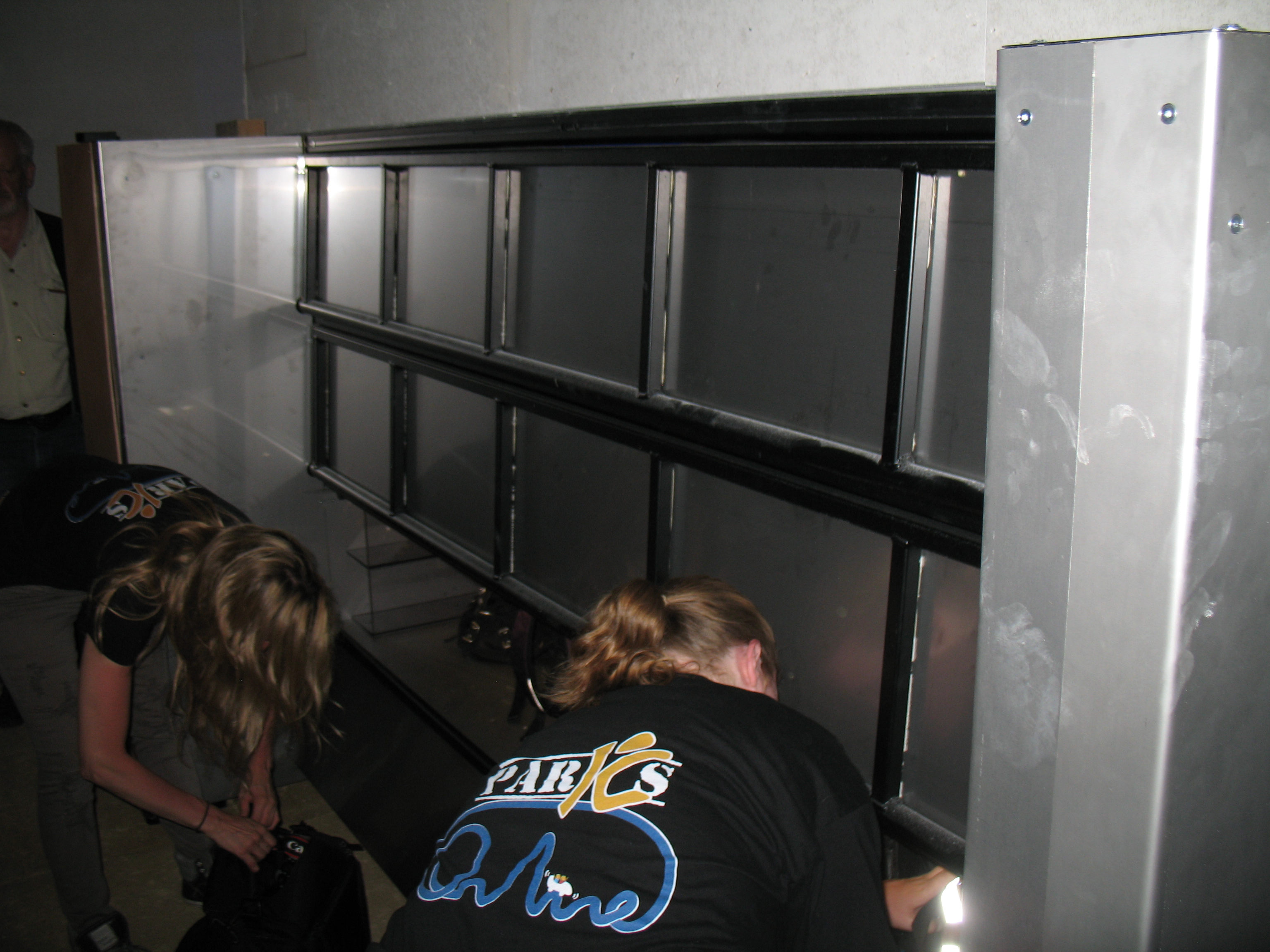 Hier befinden sich sechs Ablagereihen von denen bei uns immer eine geöffnet war. Ob es später zwei sein werden, was bei drei Zügen und sechs Reihen Sinn machen würde, muss man sehen. Der Mitarbeiter achtet penibel darauf, das alle losen Gegenstände, darunter auch Handys, Geldbörsen, Schlüssel und Brillen, abgelegt werden. Hier gab es noch kleine technische Probleme, da die Anlage immer den übernächsten Zug erkennen muss um das richtige Fach zu öffnen. Die programmierer arbneiten mit Hochdruck daran, wie an anderen Feinheiten auch, um es zum laufen zu bringen.