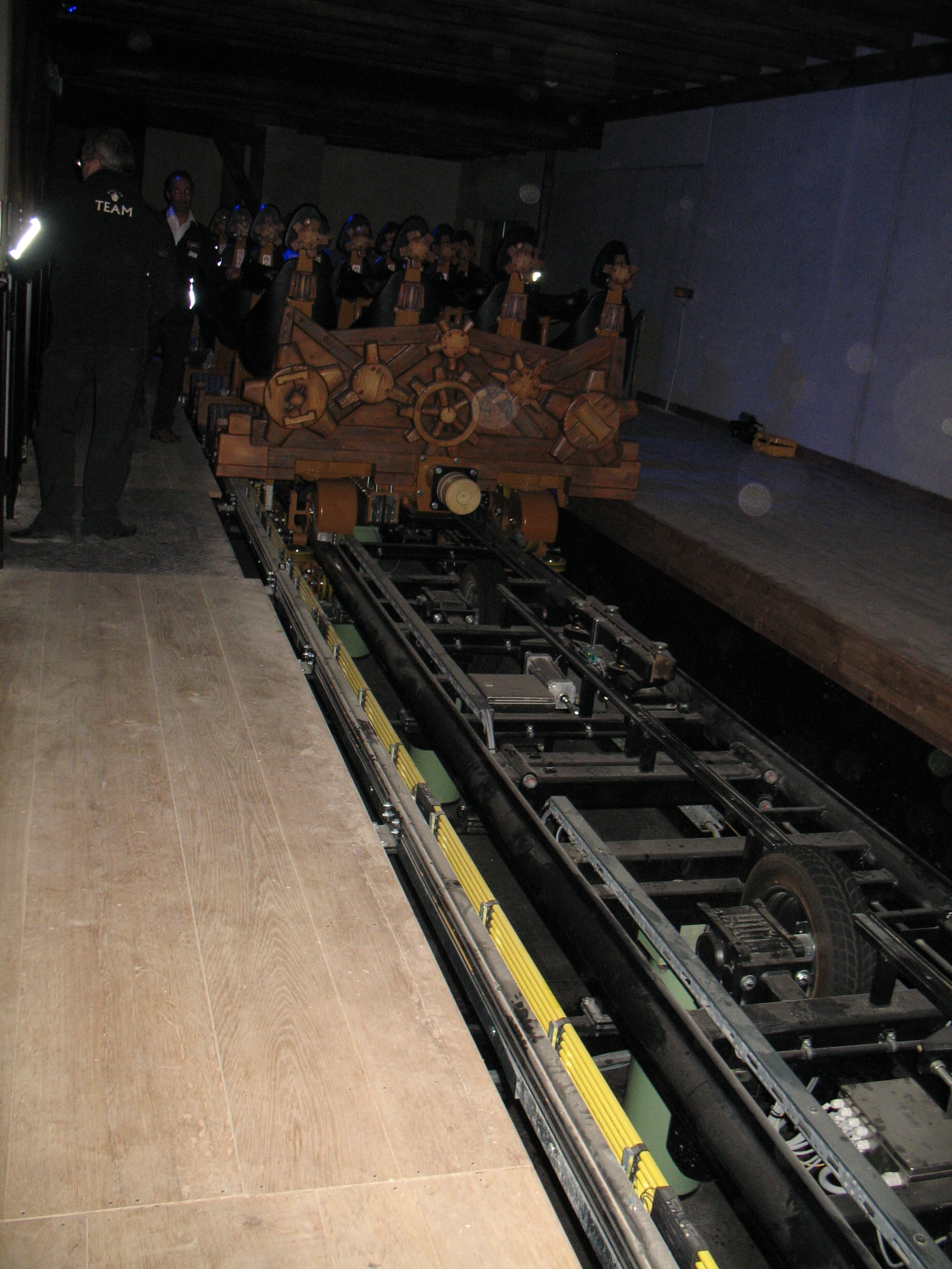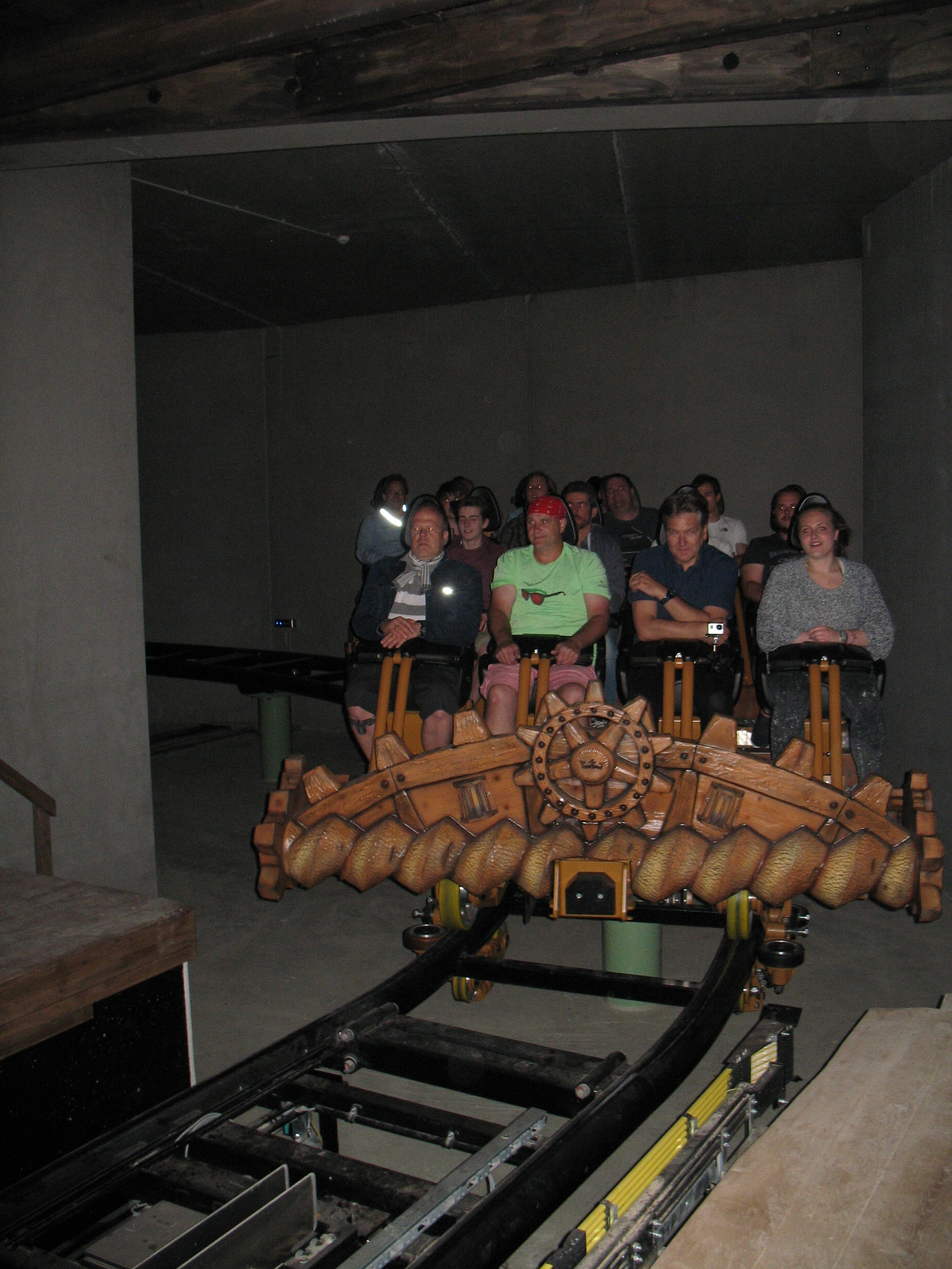 Im vierten Raum befindet sich am Ende von ein paar Stufen eine Tür. Wenn diese sich öffnet holt ein Mitrabeiter 16 Personen (oder weniger und füllt aus der Single Rider Schlange auf) in den Gepäckraum.