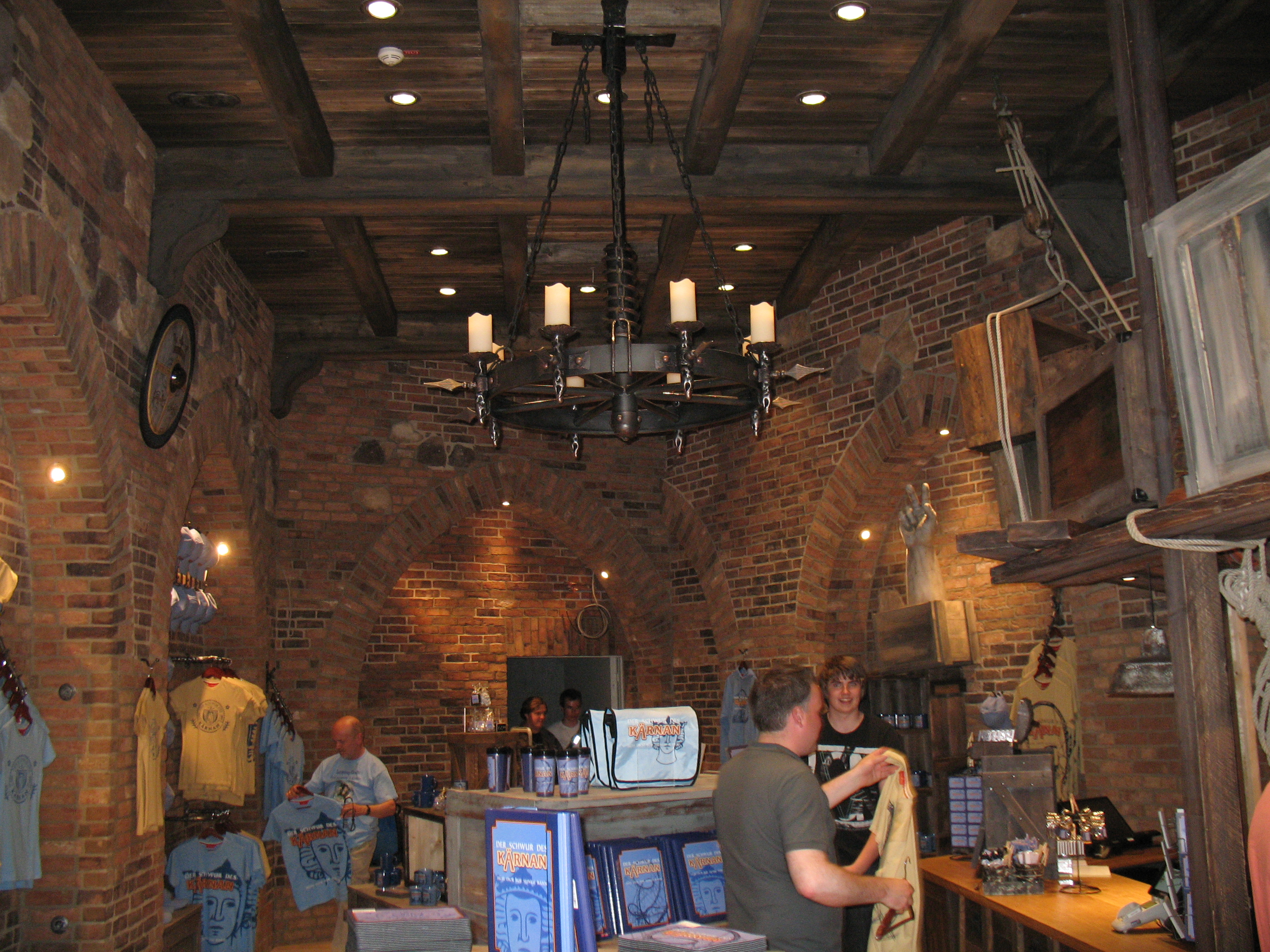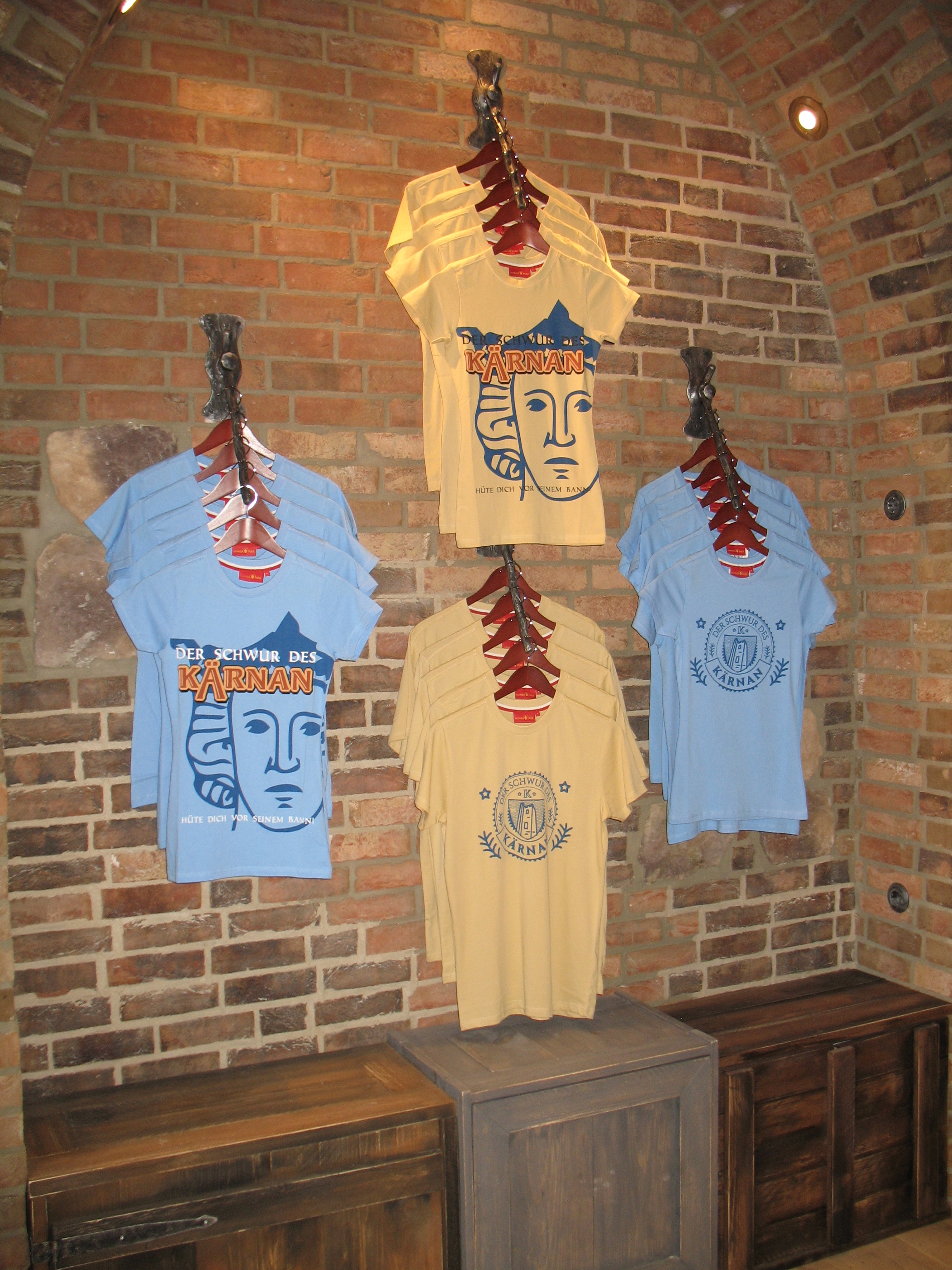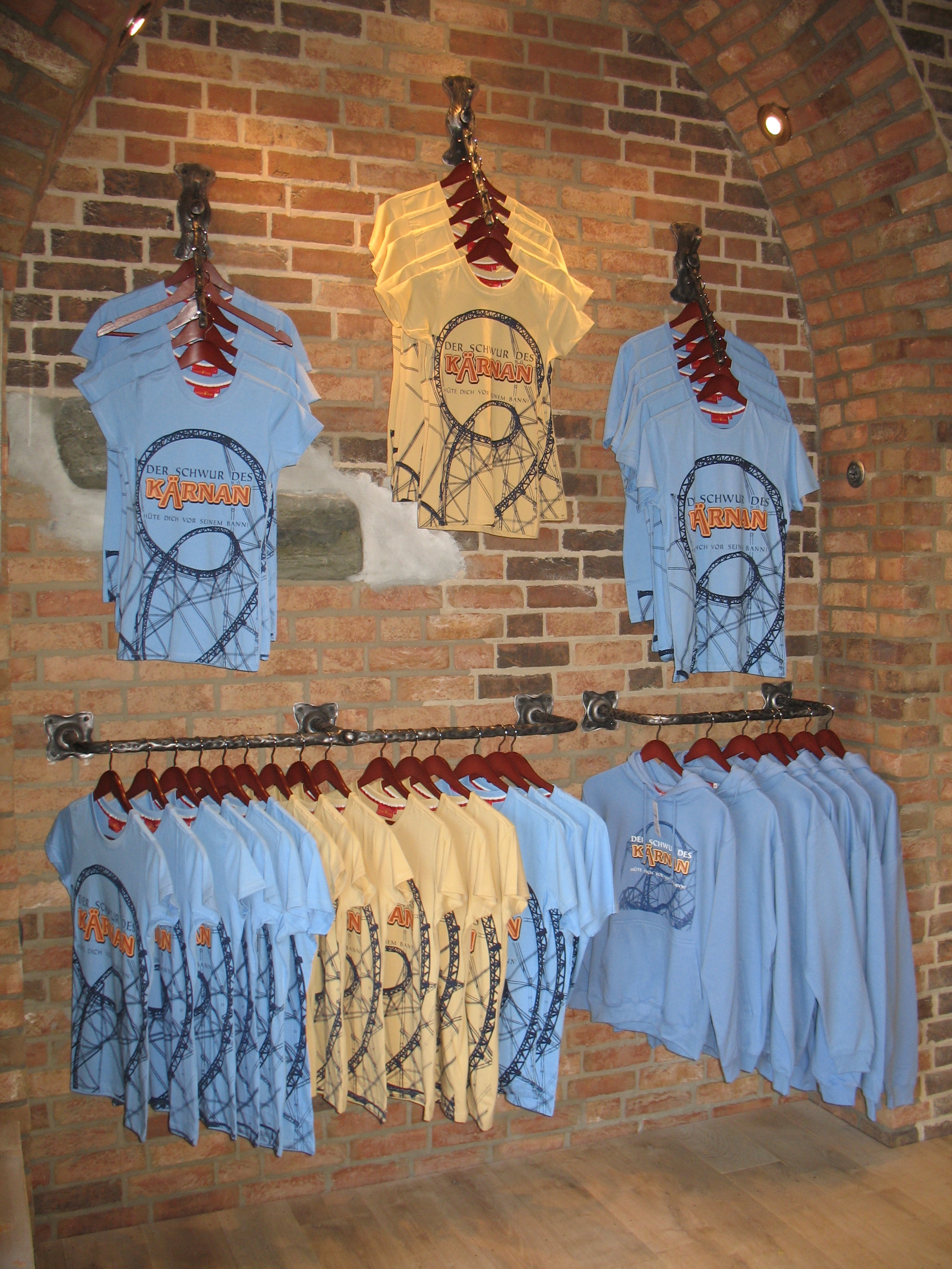 Nach dem Verlassen des Stationsbereich geht es einen Gang entlang in die Butik, in der es die Souvenirs von Kärnan (T-Shirts, Caps, Becher, Blöcke usw.) zu erwerben gibt. Dort werden auch Getränke und kleine Speisen, wie Eis und Popcorn angeboten. Später kann man hier auch die Fahrtfotos erwerben. Die Anlage ist momentan nich nicht einsatzbereit, da sie zu spät geliefert wurde. Als Aufstellort nannte Her Leicht eine Stelle, an der man wieder entspannt aussieht.