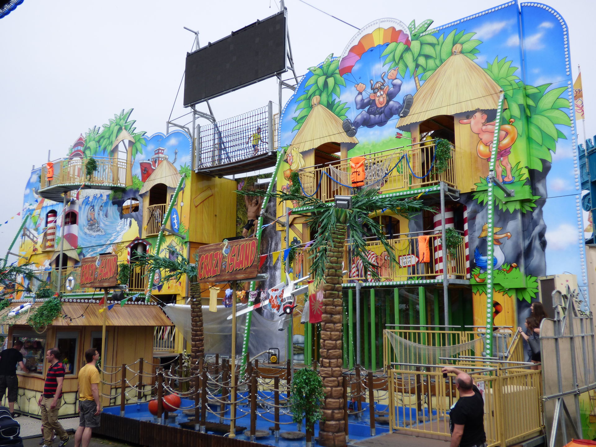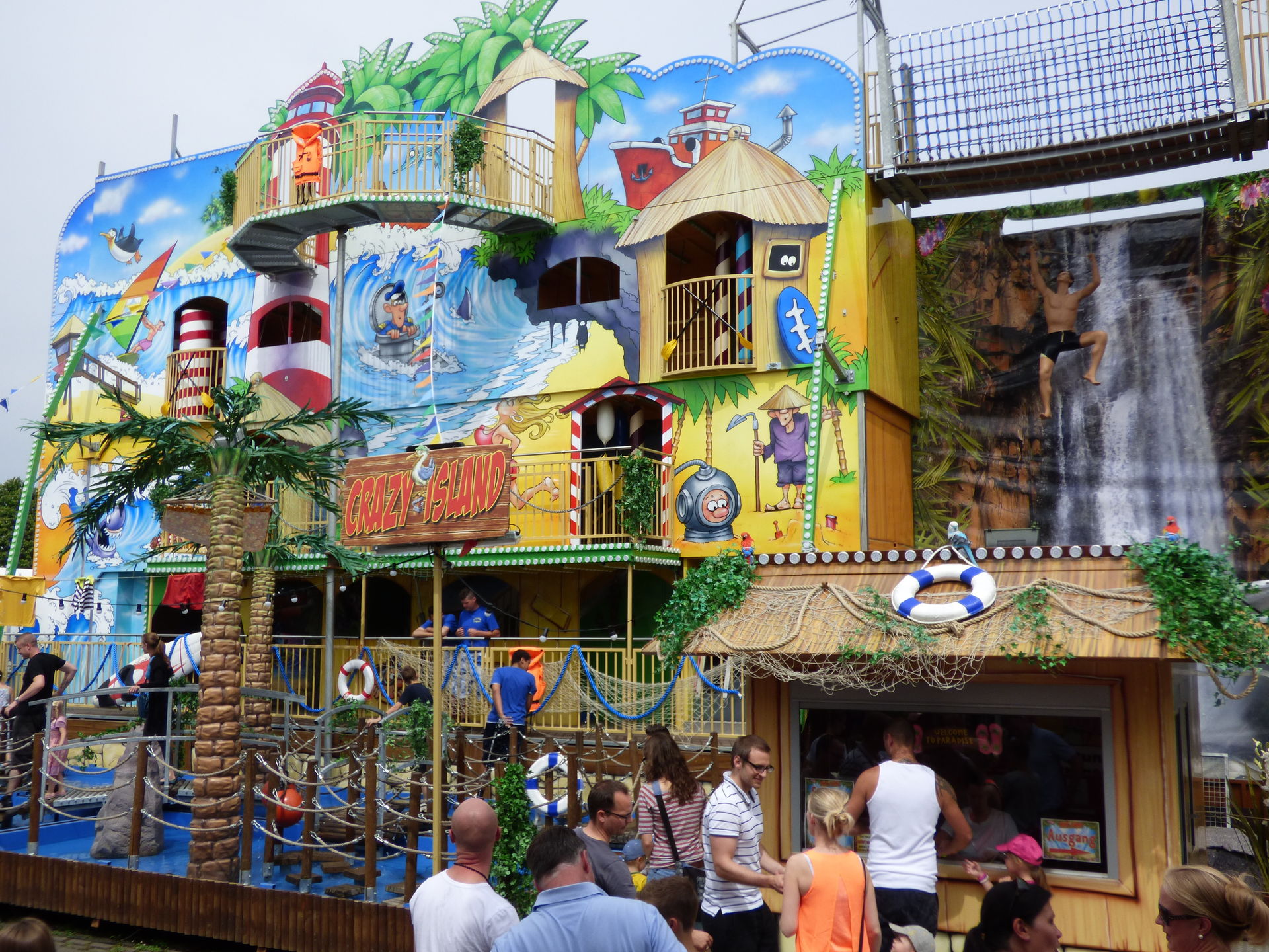 Als nächstes trafen wir auf das Laufgeschäft Crazy Island. Wer meinen Bericht zur Kirmes in Geldern vor ein paar Wochen gelesen hat, der kennt meine Meinung zu diesem Geschäft und das der Inhalt noch nicht das Ende der Fahnenstange sein kann. Außen hui, innen naja könnte man es grob zusammen fassen. Da ist noch viel Luft nach oben bei einem stolzen Eintrittspreis von 4 Euro.