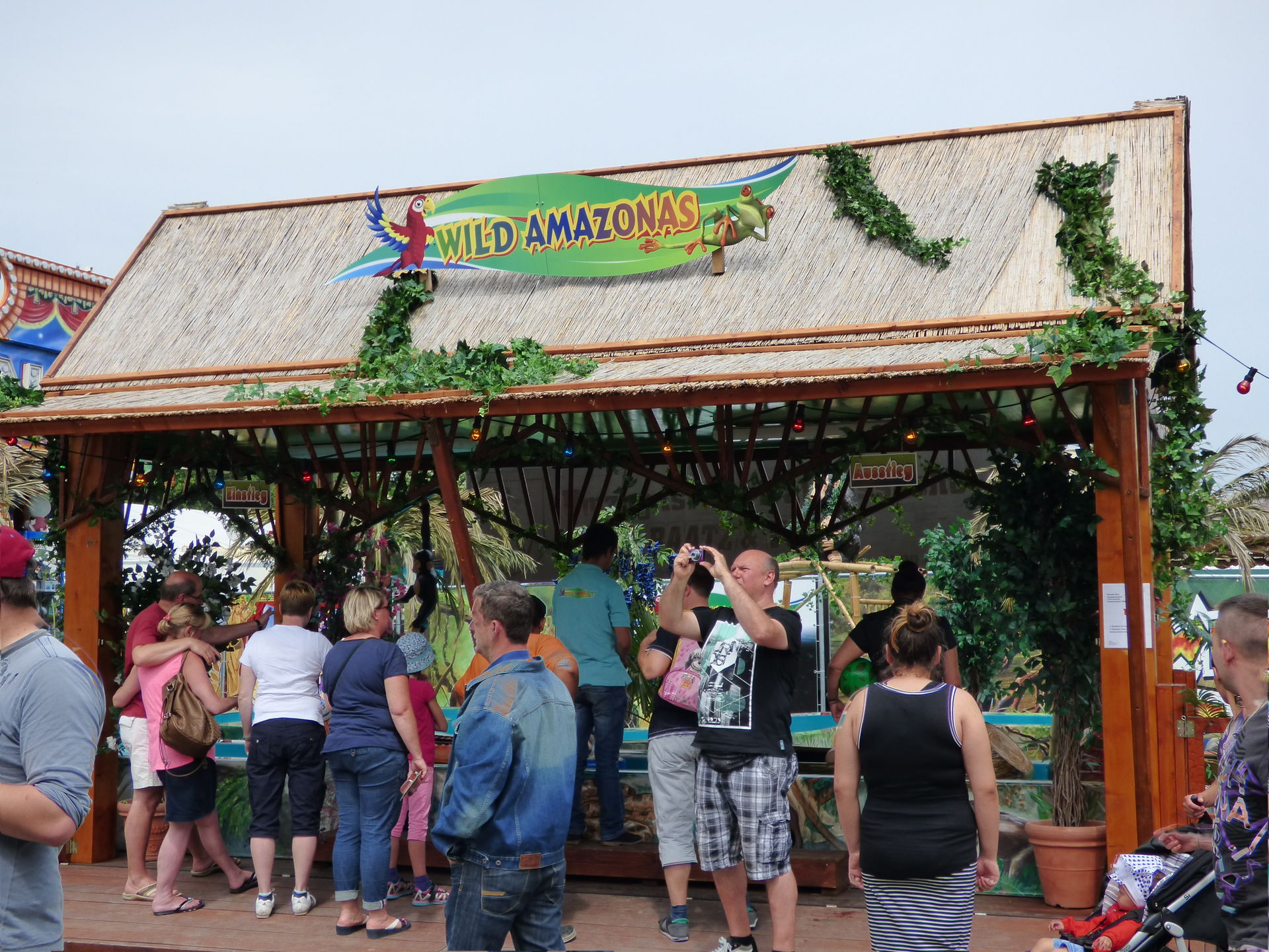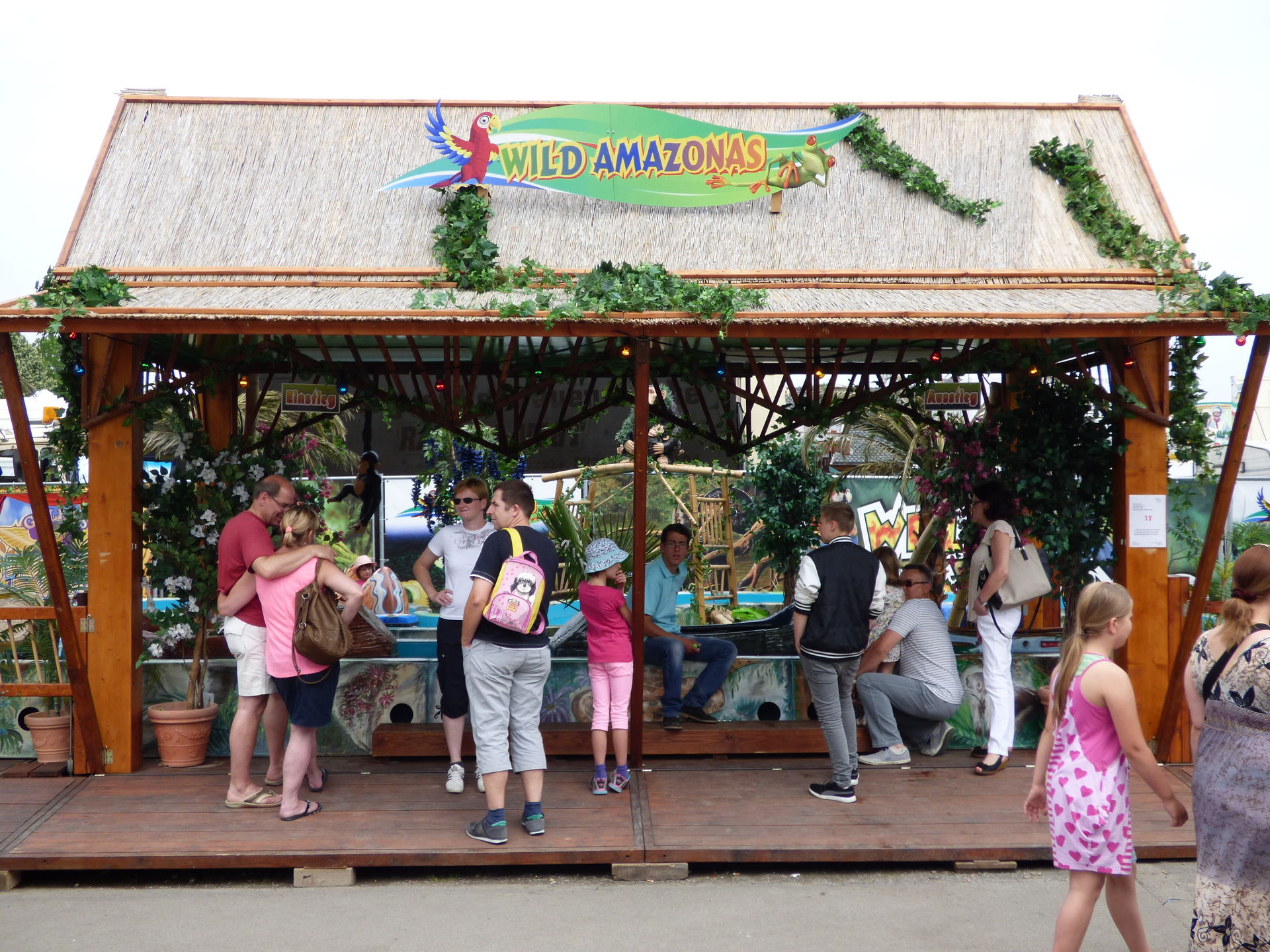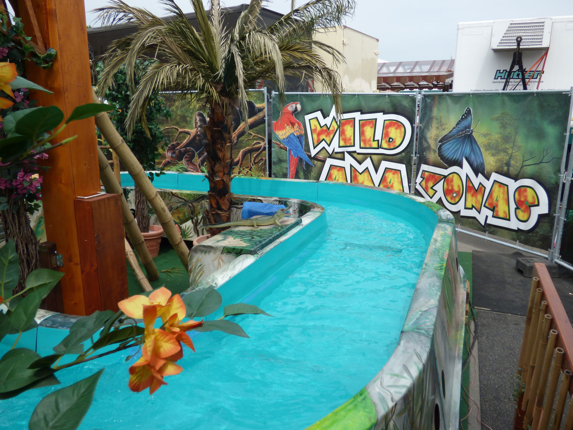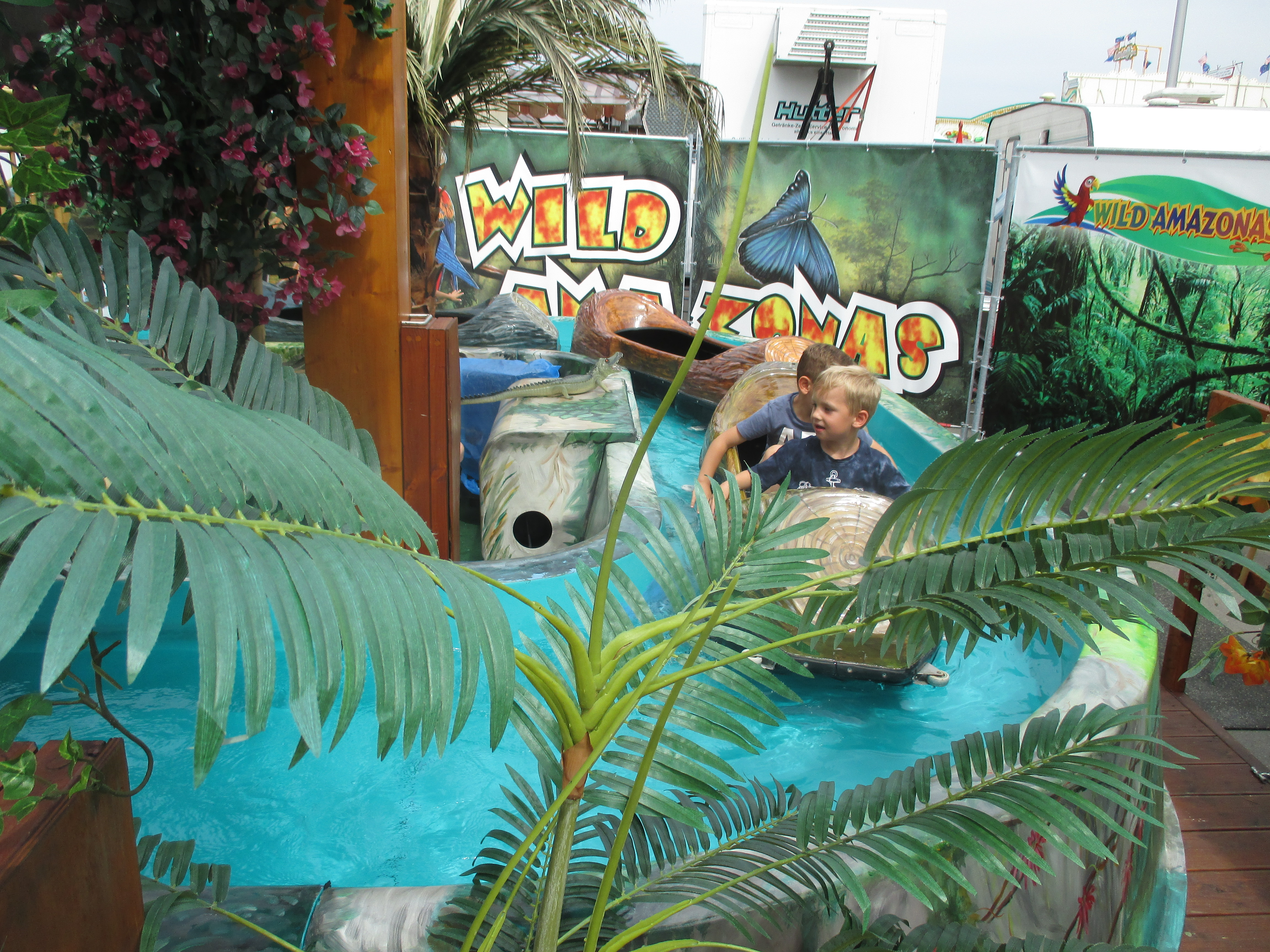Direkt neben dem Crazy Island stand, thematisch perfekt passend, die Kinderattraktion Wild Amazonas. Die kannte ich bislang noch gar nicht. Dabei handelt es sich um eine schlichte, kleine Wasserfahrt in kleinen Kajaks. Nichts besonderes aber den Kindern hat es gefallen. Wie oft man die kleine Runde mit dem Boot drehen konnte kann ich leider nicht sagen.