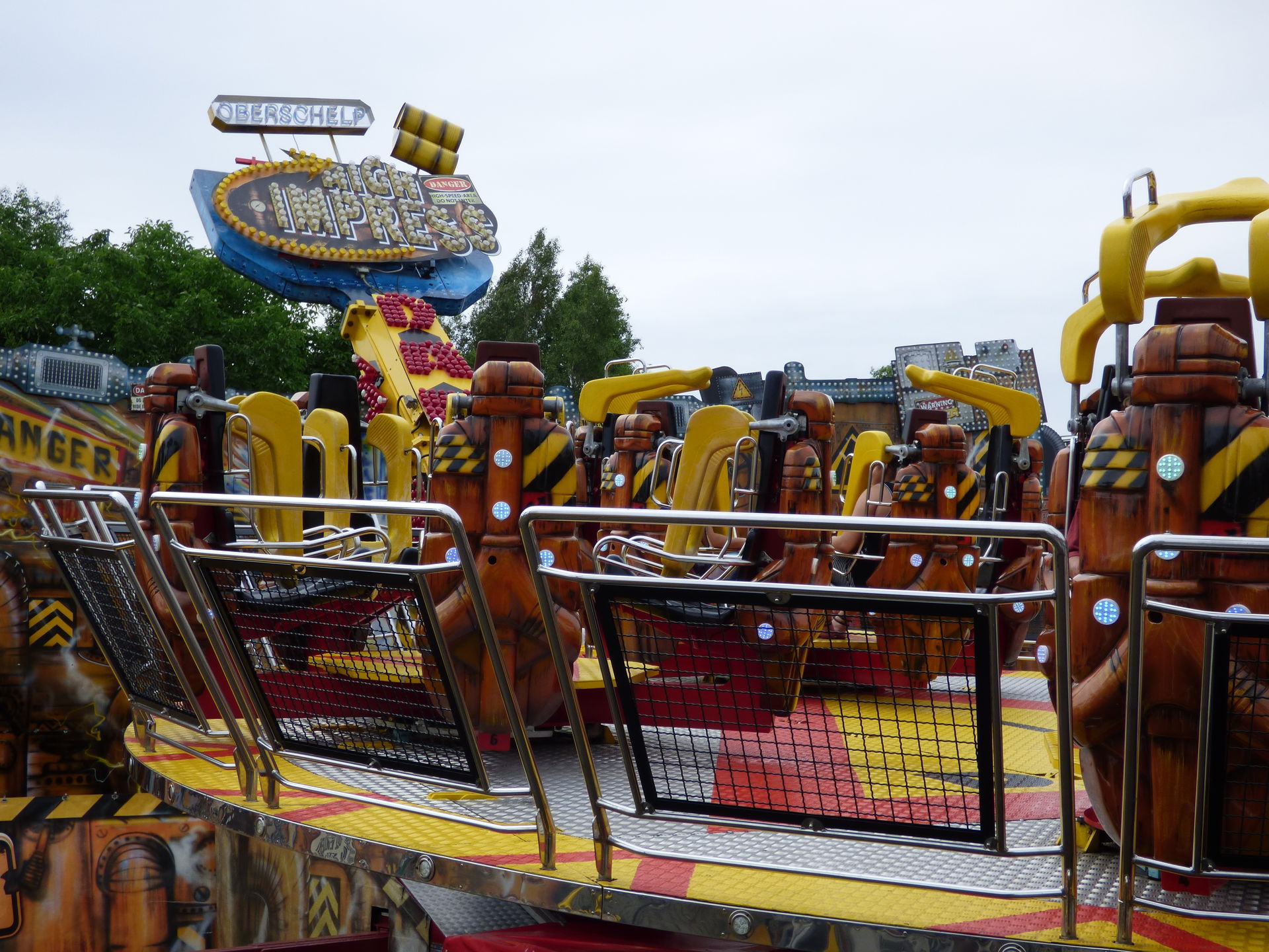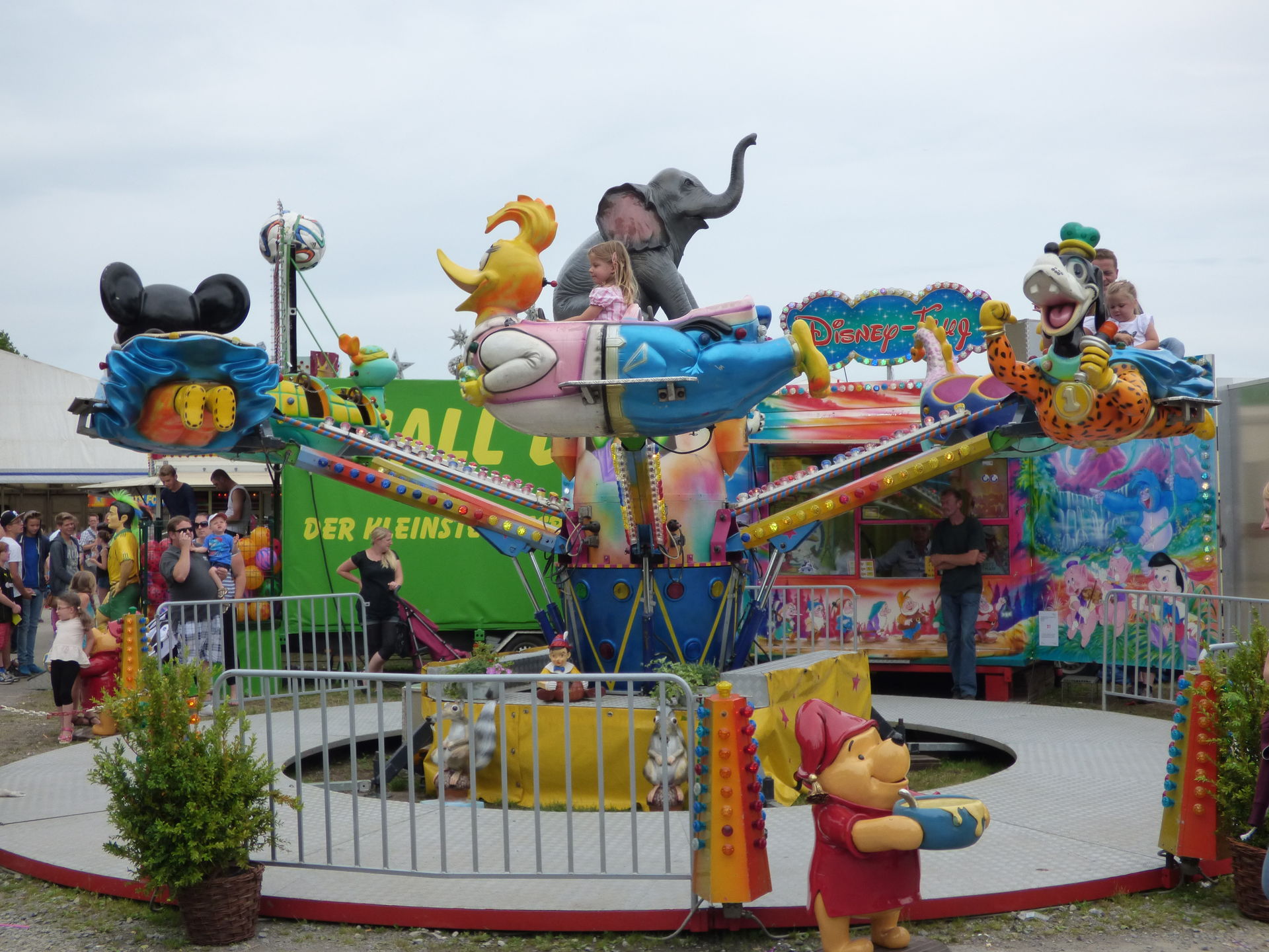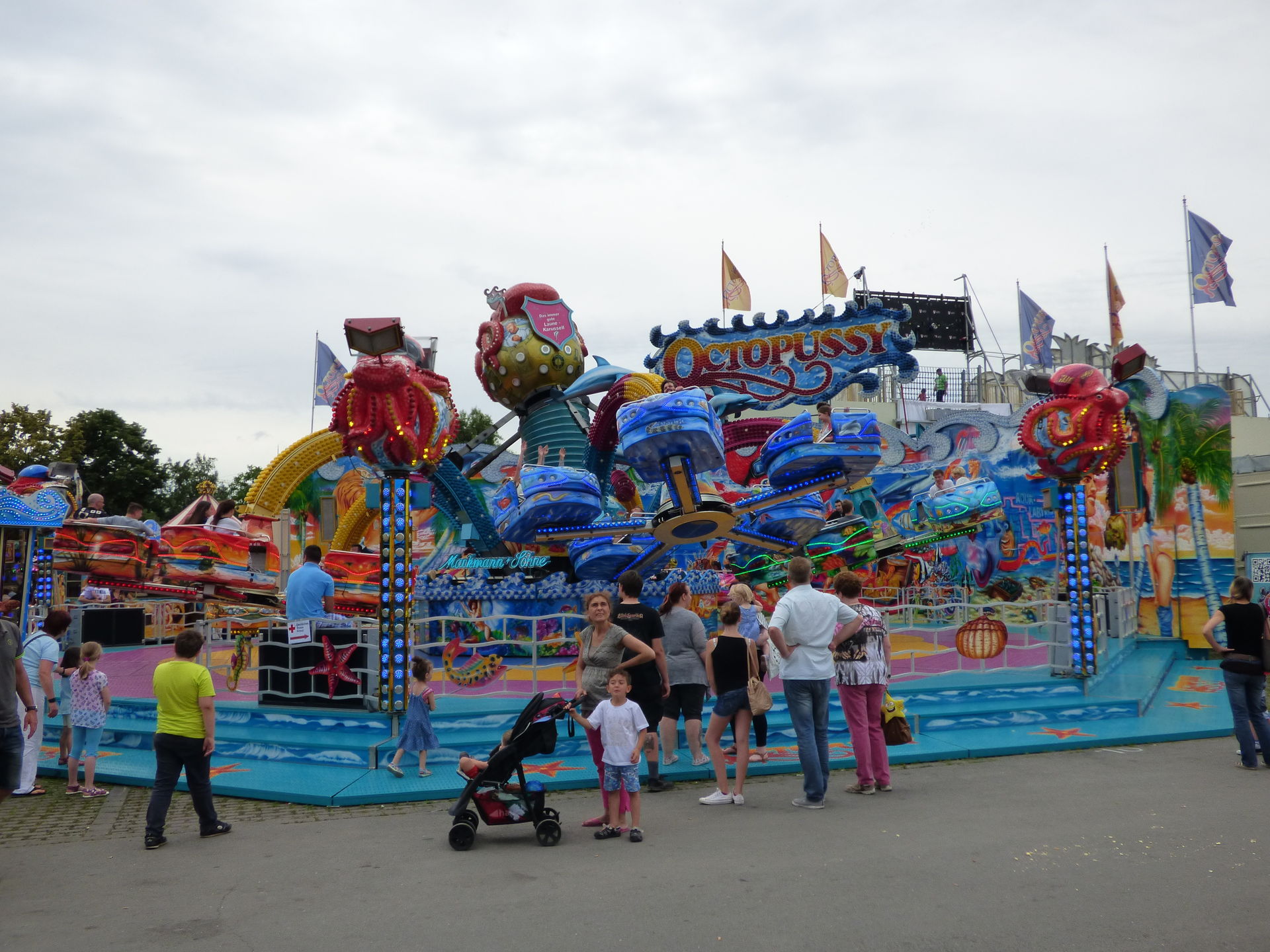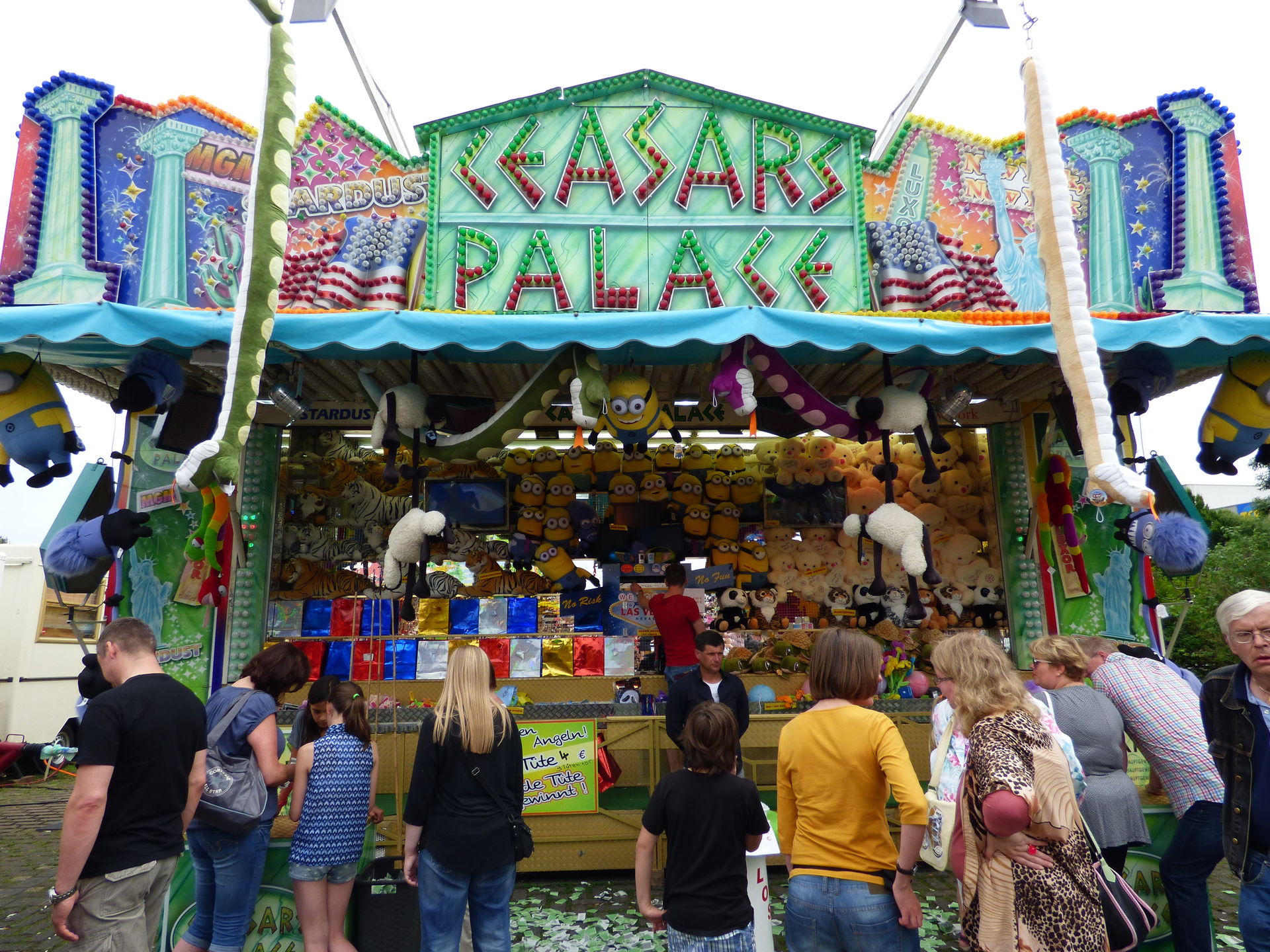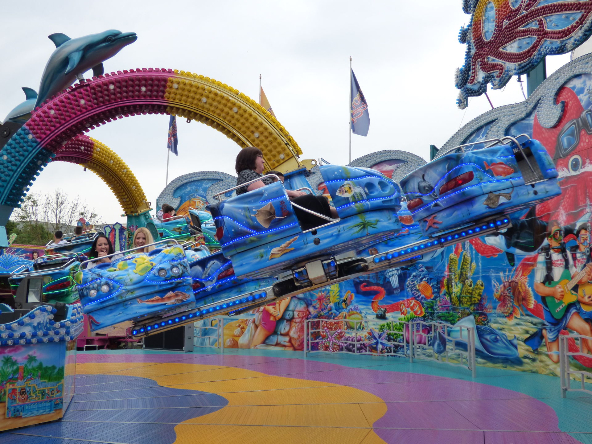 Der erste Eindruck im Vorbeifahren während der Parkplatzsuche war vielversprechend. Es waren Achterbahnschienen, Laufgeschäfte und wirbelnde Hochfahrgeschäfte zu erkennen. Scheint also ein recht gut bestückter Platz zu sein. Schnell den Wagen geparkt und dann konnte der erste Bummel über den Rummel an diesem Sonntag beginnen.