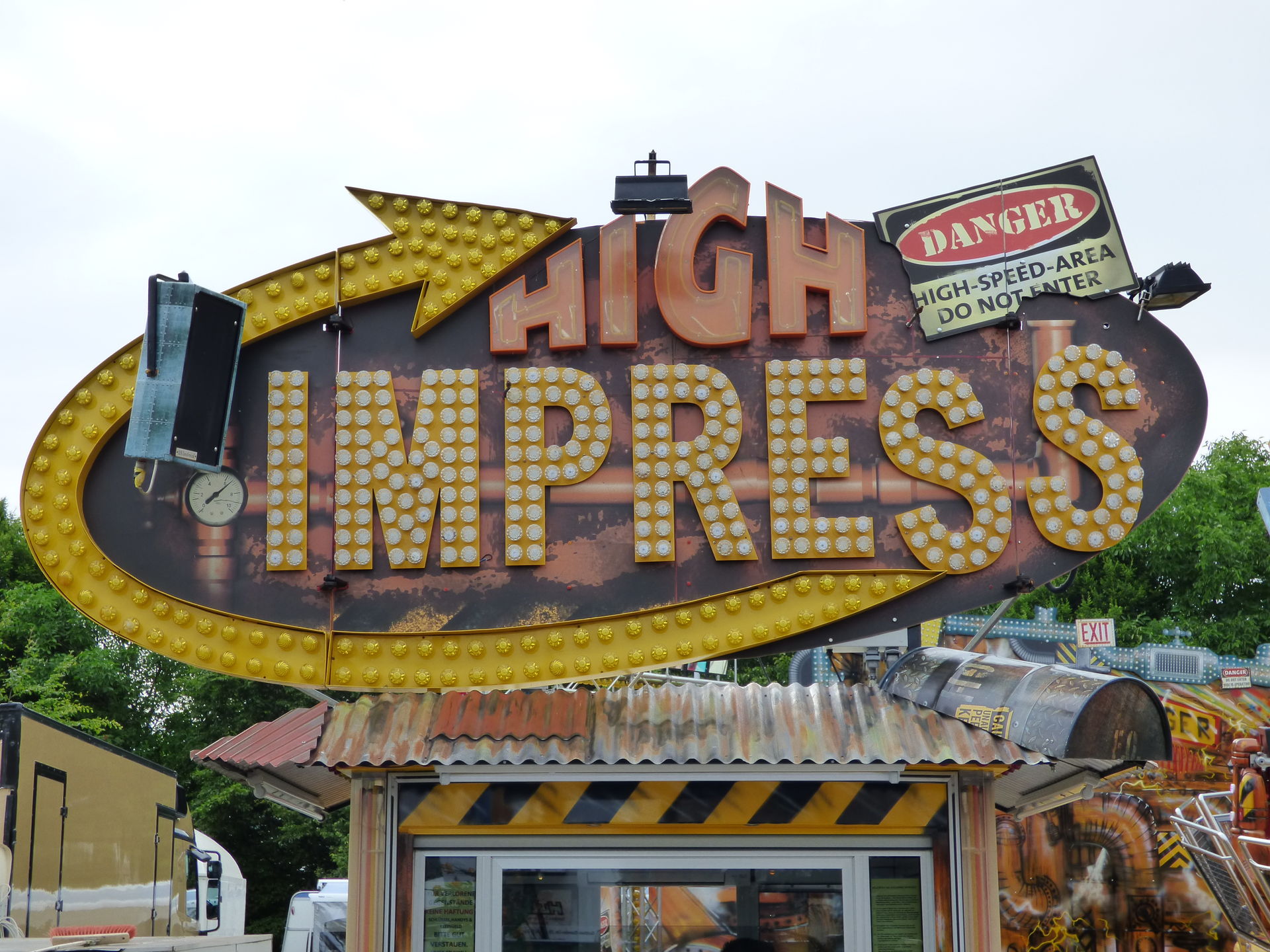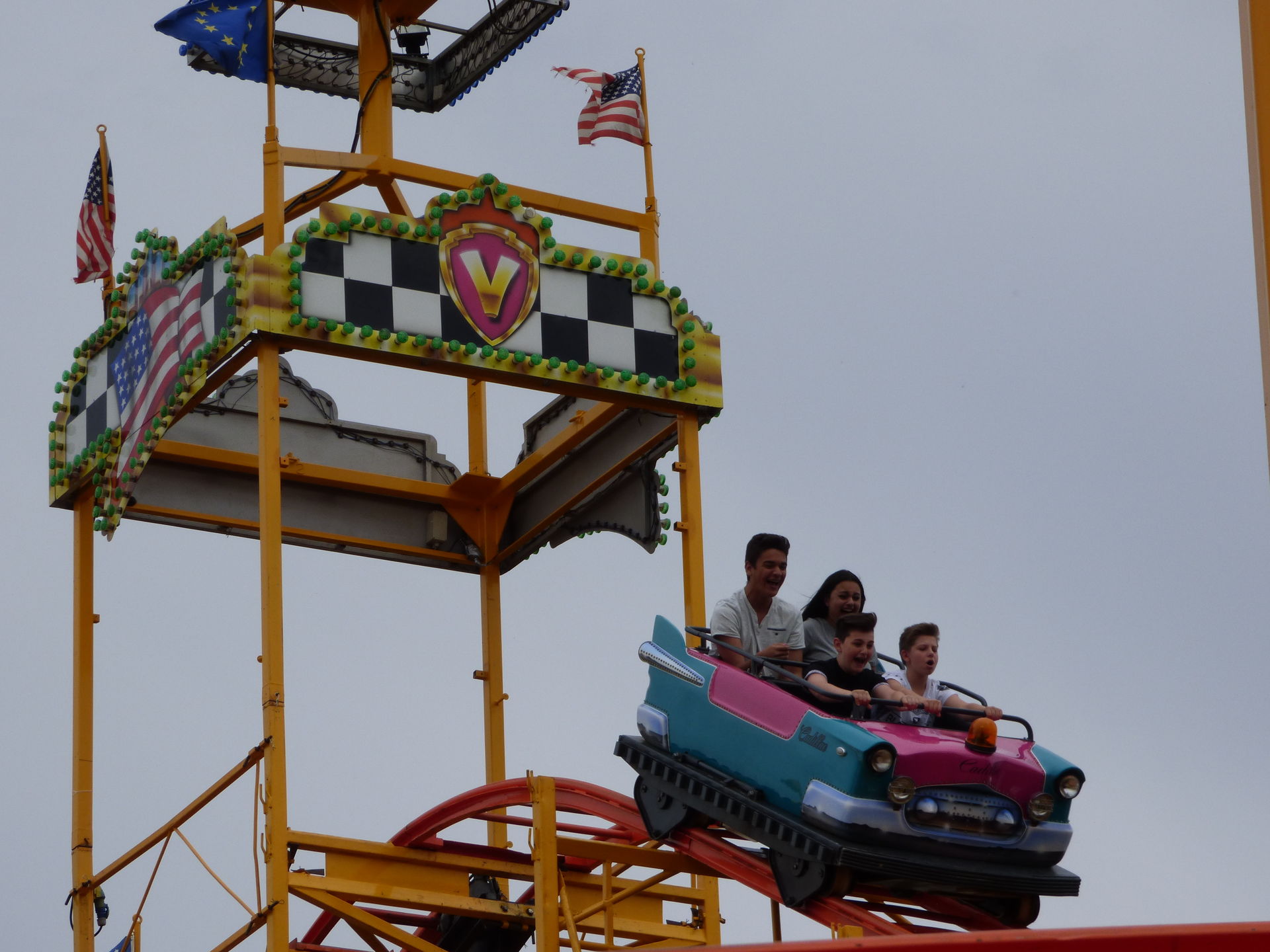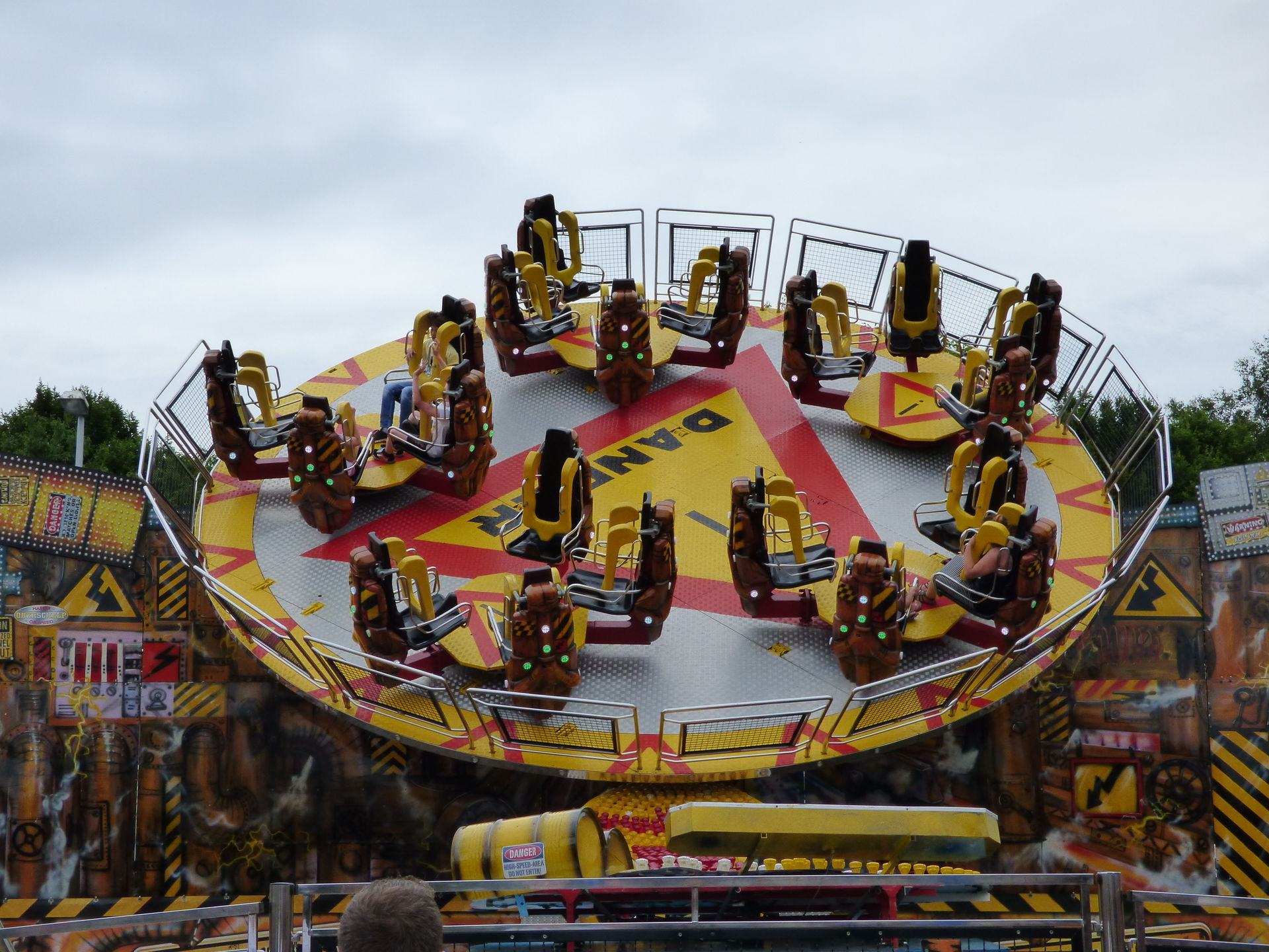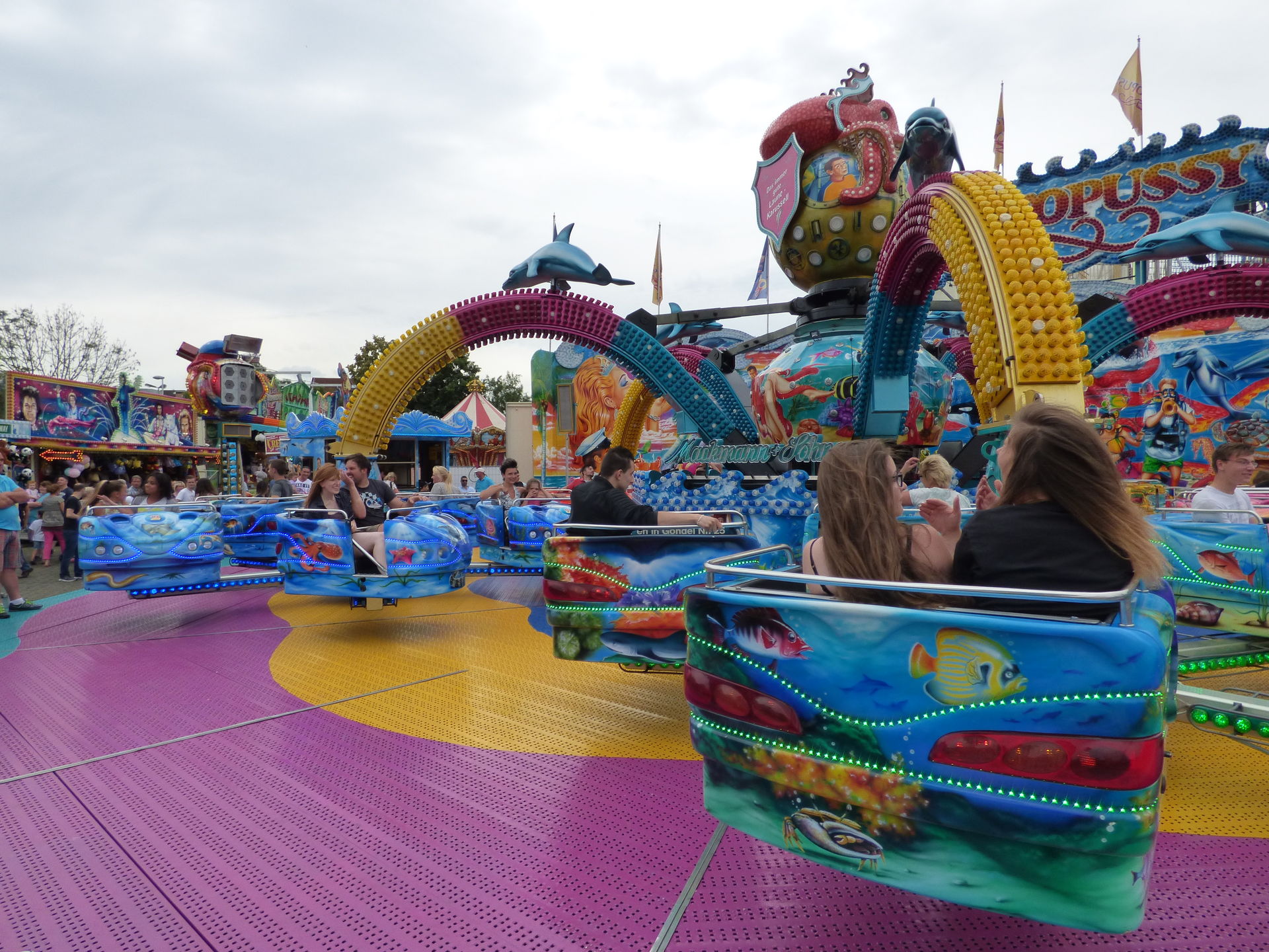 Der erste Eindruck im Vorbeifahren während der Parkplatzsuche war vielversprechend. Es waren Achterbahnschienen, Laufgeschäfte und wirbelnde Hochfahrgeschäfte zu erkennen. Scheint also ein recht gut bestückter Platz zu sein. Schnell den Wagen geparkt und dann konnte der erste Bummel über den Rummel an diesem Sonntag beginnen.